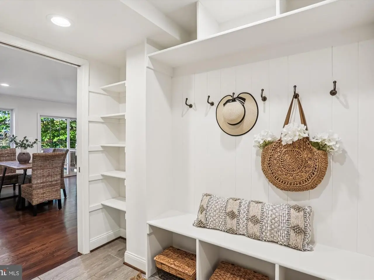 OPEN SUNDAY 1-3pm. Tucked along a picturesque, tree-lined street in one of Chevy Chase's most desirable and walkable neighborhoods, this charming Colonial perfectly blends timeless character with modern comfort. Thoughtfully renovated and expanded in 2019, the home offers five bedrooms and four full baths, including a main-level bedroom suite and a beautifully landscaped, fully fenced rear yard. A welcoming foyer and living room set the tone with abundant natural light from three walls of windows and a classic wood-burning fireplace. The heart of the home is the chef's kitchen, showcasing quartz countertops, custom cabinetry, and premium appliances-KitchenAid French-door refrigerator, gas range with griddle, Bosch Emerald Pro dishwasher, and Azure wine fridge. A large island with ample seating, connects seamlessly to the family room addition which has a custom built-in banquette, while sliding doors open to a deck ideal for outdoor dining and relaxation. Entry from the attached one-car garage leads to a mudroom with cubbies, providing everyday convenience and organization. Privately tucked away, the main-level bedroom suite with beautifully renovated bath is perfect for guests, an office, or multigenerational living. Upstairs, the generously sized primary suite offers a spa-inspired bath, walk-in closet with custom shelving, and views of the backyard. Three additional bedrooms include one with an en-suite bath and two sharing a hall bath. The lower level features a cozy recreation room with fireplace and built-ins, laundry, and generous storage space. Outdoor upgrades include a deck (2019), brick patio and front steps by Capitol Hardscapes (2020), and a new garage door (2024). Moments from Chevy Chase Lake, the Purple Line, Rock Creek Park, and the North Chevy Chase Swim Club, this exceptional home delivers modern updates, classic design, and a beloved neighborhood setting.