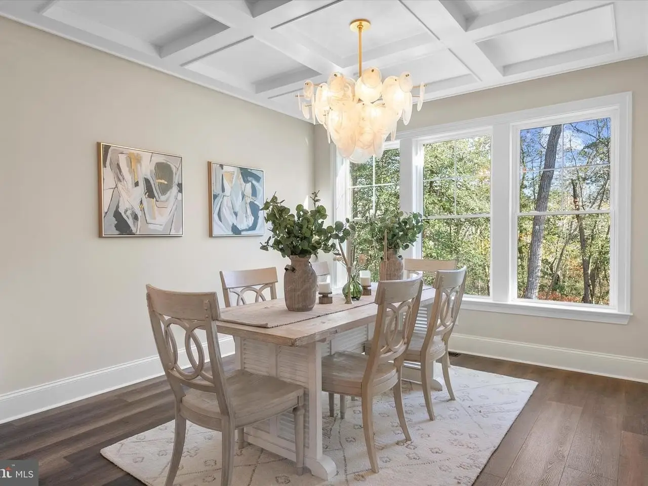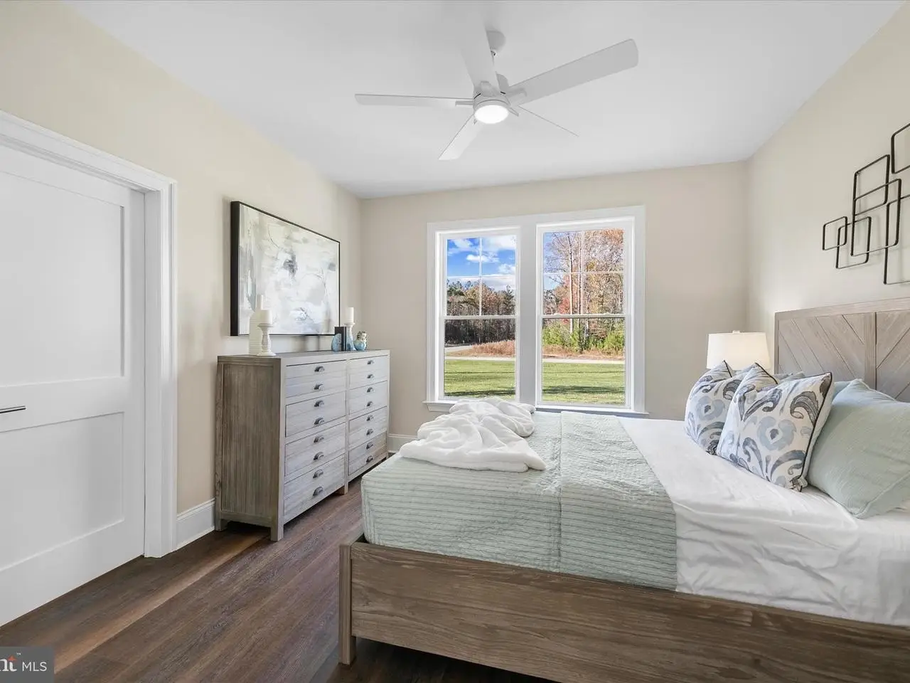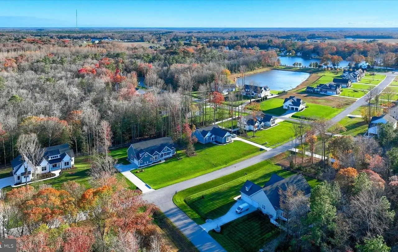 Introducing 24102 Ingram Drive, an architectural masterpiece crafted by Garrison Homes. This distinguished Georgetown model sits on a .82-acre homesite, privately backed by mature trees and designed to impress from every angle. The exterior blends modern and coastal elements with multiple roof peaks, a mix of horizontal, vertical, and shake siding accented by stone, and striking metal roof details. A sweeping walkway leads to the covered front porch, anchored by stately columns and double entry doors framed with sidelights, setting an inviting tone for what awaits inside. Step through the doors into a beautiful two-story great room featuring a sleek linear gas fireplace wrapped in stone, accented by a crisp white accent wall that carries to the ceiling. A dramatic wall of glass doors opens to the screened porch and composite rear deck, perfectly framing the wooded backdrop and flooding the interior with natural light. The open floor plan transitions effortlessly into a designer kitchen that is both functional and beautiful. A quartz island, illuminated by elegant pendant lighting, offers comfortable seating for casual meals and gatherings. The space is equipped with a full suite of stainless-steel appliances, including a five-burner gas range with a striking range hood, complemented by 42-inch soft-close cabinetry, detailed trim, and a stylish tile backsplash. Luxury vinyl plank flooring extends throughout the main level, unifying each space with a warm, contemporary aesthetic. The adjacent dining area, highlighted by coffered ceilings and a statement chandelier, provides the perfect atmosphere for entertaining. Just off the kitchen, a deep walk-in pantry offers ample storage, while a laundry room with cabinetry and a sink adds everyday convenience. A nearby mudroom with hooks creates an ideal drop zone for coats, bags, and shoes. The primary suite is a showpiece of craftsmanship and serenity, highlighted by a cathedral ceiling with white shiplap ceiling, dual walk-in closets, and a spa-like bath showcasing two vanities, a freestanding soaking tub beneath a chandelier, and a walk-in subway-tiled shower with dual showerheads and niches. Three additional bedrooms, each with walk-in closets and ceiling fans, provide comfortable accommodations on the main level. The side-entry two-car garage includes a separate exit door and a storage closet for convenience. Outside, the property is enhanced by professional landscaping with an irrigation system to keep it lush and green. The lower level offers endless potential with a full footprint of the home, walk-out access through glass sliding doors to a patio, and rough-in plumbing ready for customization. A third upper-level space with its own rough-in and two rooms adds flexibility for a future home office, gym, or guest retreat. Outside, the Ingrams Point community offers enchanting nature trails weaving through woodlands and along serene streams, as well as parks and open spaces, providing limitless opportunities for outdoor recreation. Indulge in nearby dining, shopping, and entertainment, while relishing the convenience of Delaware beaches and coastal amenities just a short drive away. Do not miss this rare opportunity to immerse yourself in the pinnacle of luxury living in the breathtaking Garrison Homes Georgetown model at Ingrams Point. Schedule your exclusive private tour today and embark on a journey of unparalleled refinement and sophistication.