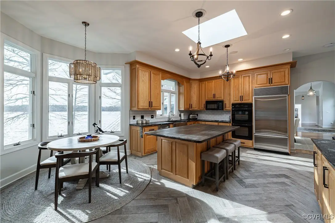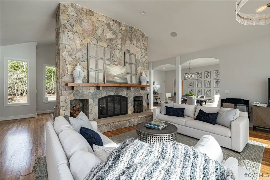 ""This home offers breathtaking river views 10K Grady Lift, 2 Jet Ski Lifts, 4 Floating Platforms and 440 ft of bulkhead Round out the Waterside. Wide River Views. It features updated lighting and chandeliers, modern tile, Lutron light switches, Kef speakers, 3M tinted windows and doors, leathered granite countertops in the kitchen, a Jenn-Air stove, just to name a few. The house features two primary suites - one upstairs and one poolside. The primary on the main floor boasts two renovated """"his and hers"""" bathrooms and walk in closets. An office off the primary suite, with a private exterior deck entrance, could easily be transformed into a third primary suite. The home also includes 2 bedrooms, with Jack & Jill suites on the first floor that offer a fireplace and deck access. The living and dining rooms are enhanced by cathedral ceilings, a stone chimney, and a fireplace. The open floor plan provides incredible views! The pool level offers direct access to the second primary suite and multiple storage areas. The property also includes a two-car attached garage and a two-car detached garage. Internet access is available, and there's a shared pond with a fountain, ideal for fishing. A boat parking pad completes the package. This home is located in the perfect spot on the river, providing a fantastic setting for summer fun! PROFESSIONAL PICS ON WEDNESDAY""