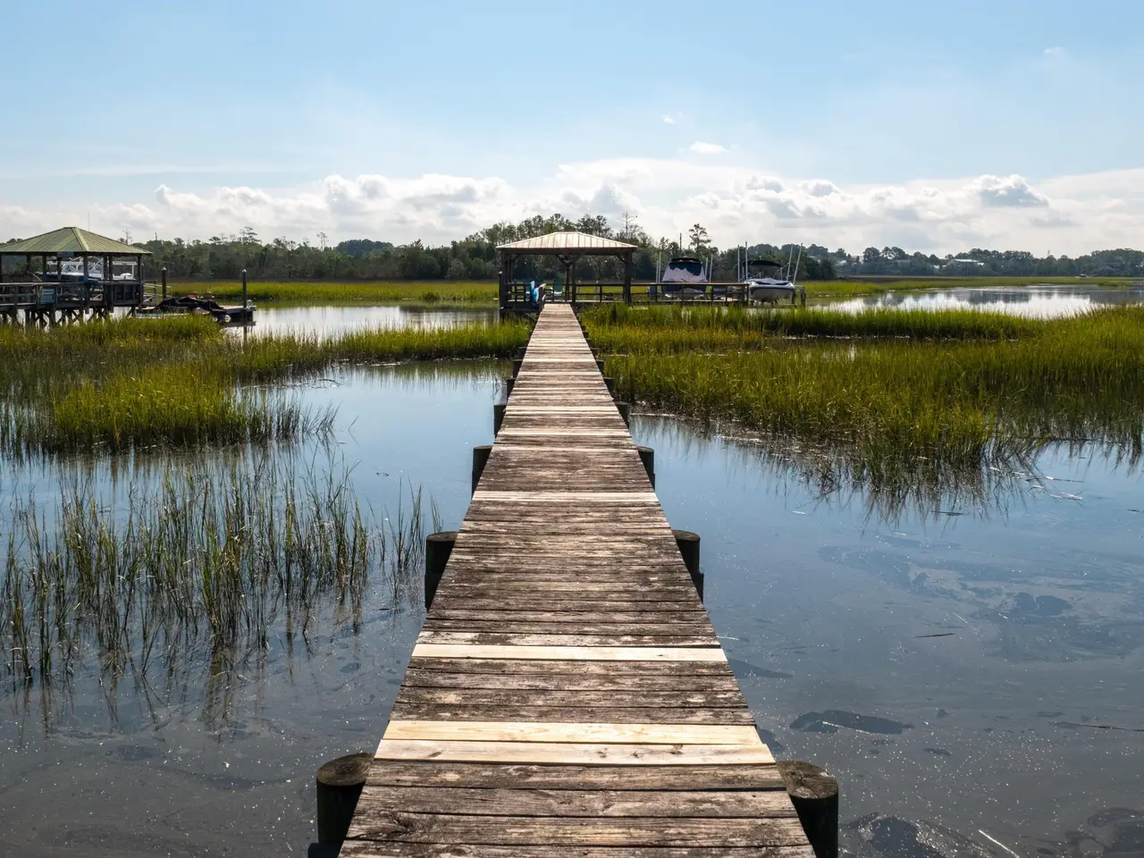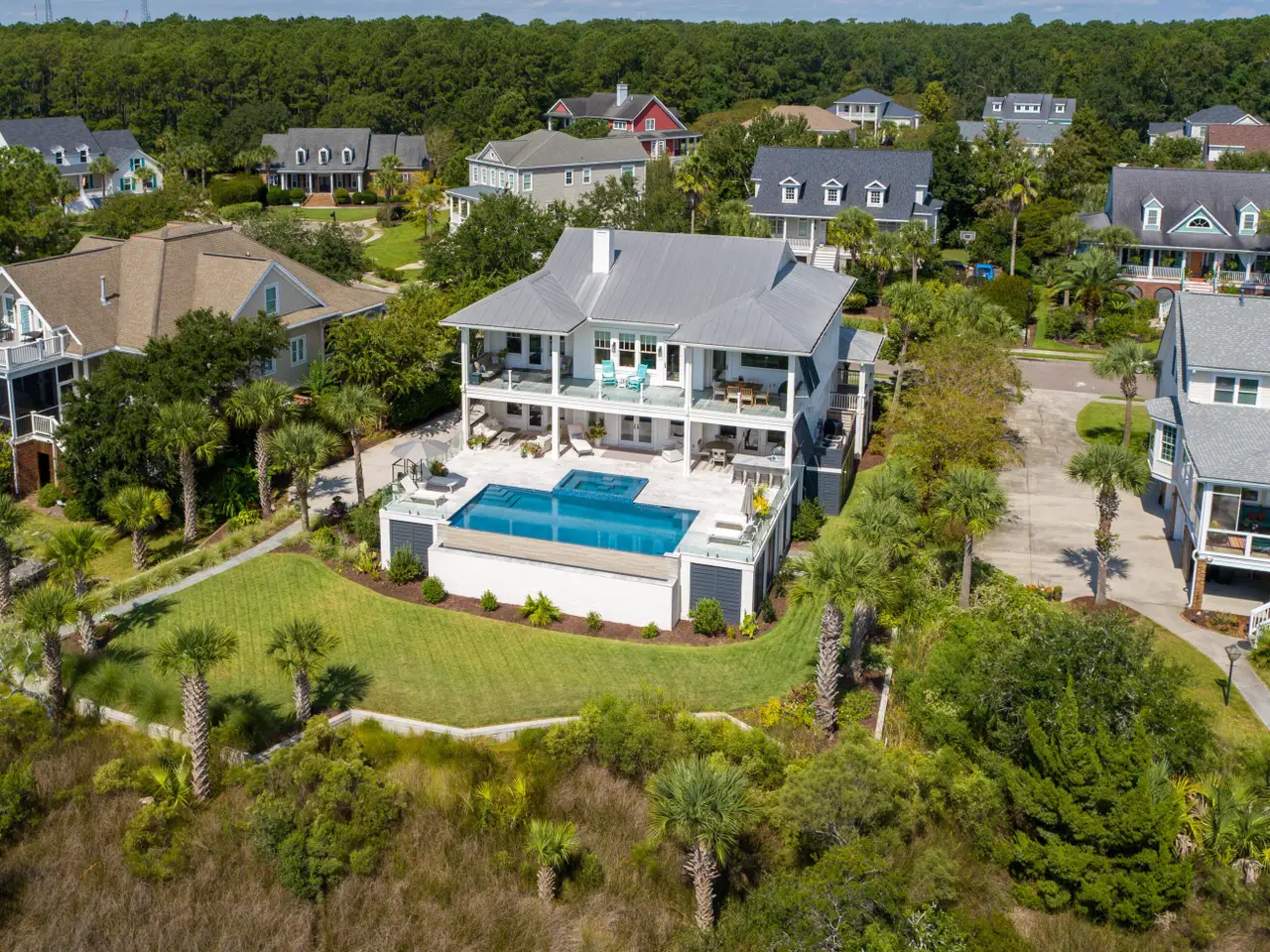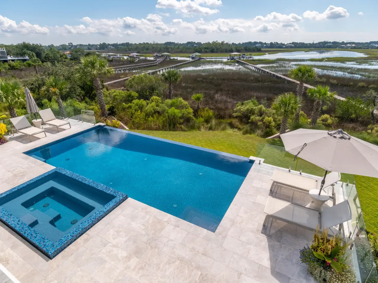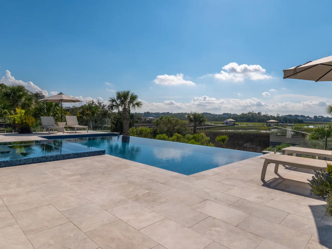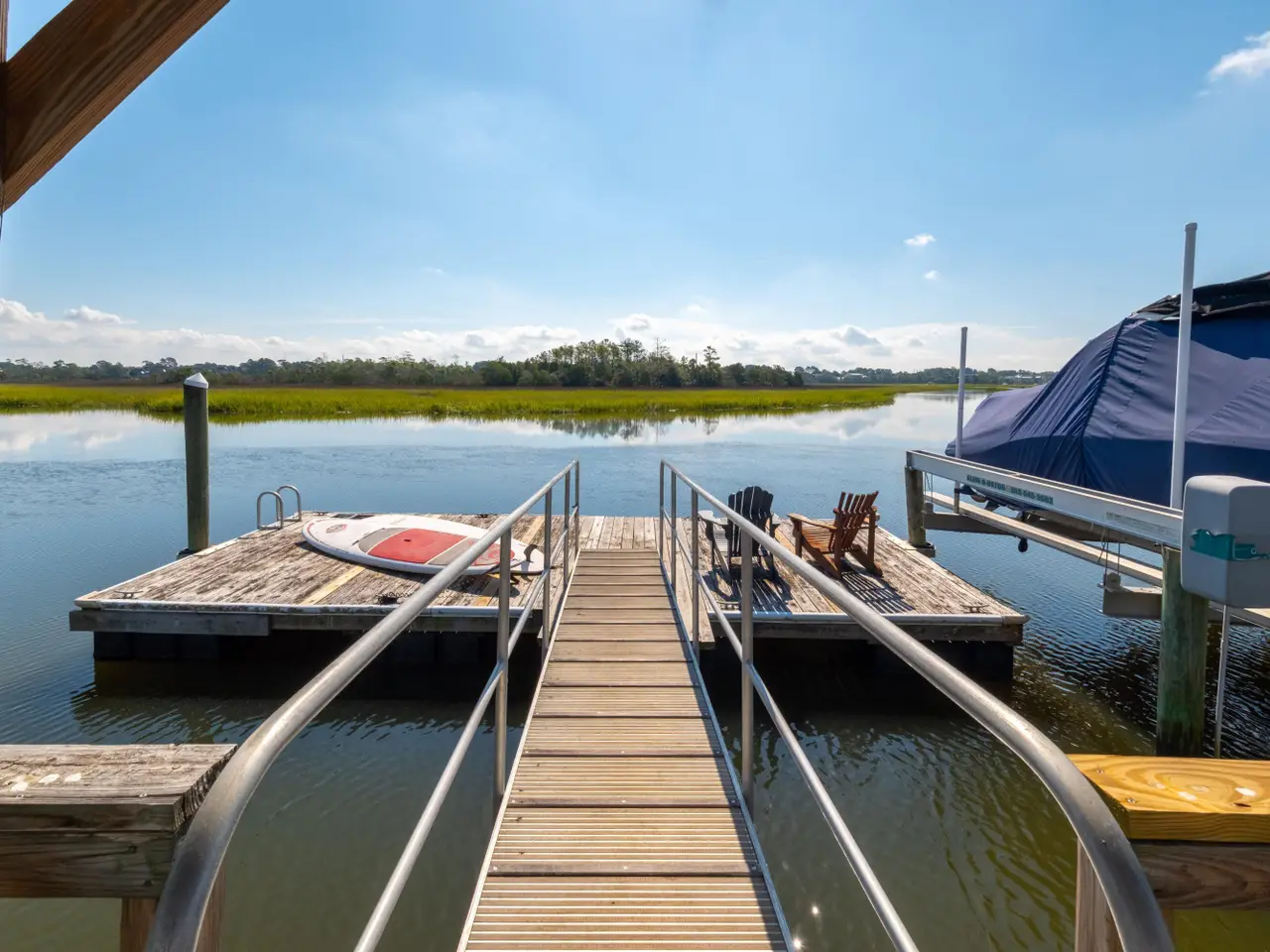 Stunning Home overlooking expansive views of Nowell Creek with Deep water Dock and Lift. Enjoy breathtaking deep-water views from this beautifully renovated elevated home, complete with a dock shared with only 1 neighbor. Enjoy your private 10,000 lb boat lift.The fully remodeled kitchen includes high-end appliance package including a dual-fuel Wolf range, Sub-Zero refrigerator, and Cove dishwasher. The perfectly positioned white marble island is perfect for entertaining guests.Dual Primary Bedrooms with bathrooms have been tastefully updated with modern finishes.The interior showcases gorgeous Australian cypress hardwood floors and ceramic tile throughout, adding warmth and character to every room. For added convenience there is an elevator from the garage to the second floor. This 4-bedroom, 4 full bath, 2 half bath home features spacious en suite bedrooms, an open layout, and luxury finishes throughout. Outdoor living is unmatched with a full wrap around front porch and expansive double back porches overlooking panoramic views of the water. Enjoy days or evenings floating in your own beautiful clear water infinity-edge pool with a gas-heated hot tub. Entertaining is a breeze in this home. Freshly landscaped with lush greenery and colorful flowers accented with a newly installed driveway and walkway enhances the already perfect curb appeal on this home. The 3-car garage includes a finished office or flex space, perfect for remote work or hobbies. Elevated construction provides peace of mind, and nearly every window offers scenic marsh or water views. Enjoy peaceful nature filled views from your window as you wake up in your natural sun lit primary bedroom. Walk out to your balcony to enjoy your first cup of coffee taking in the natural beauty that surrounds you as you begin your peaceful day. Please be sure to confirm any information deemed important in the decision making process.