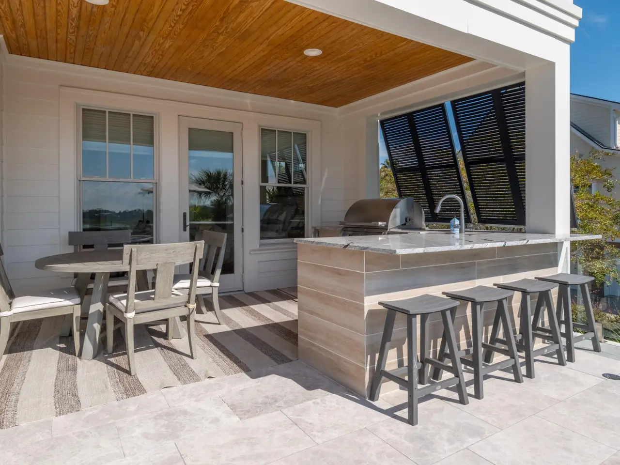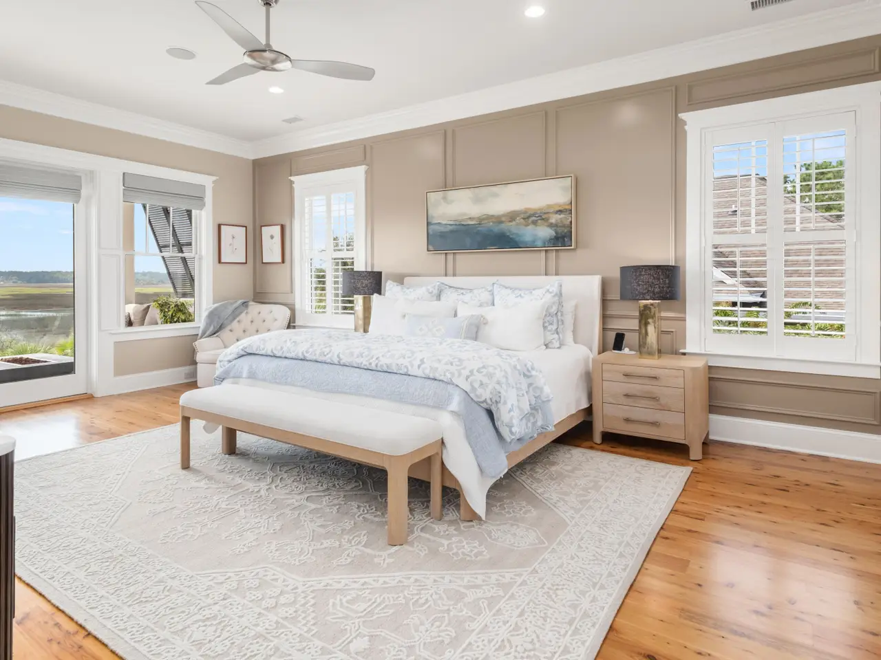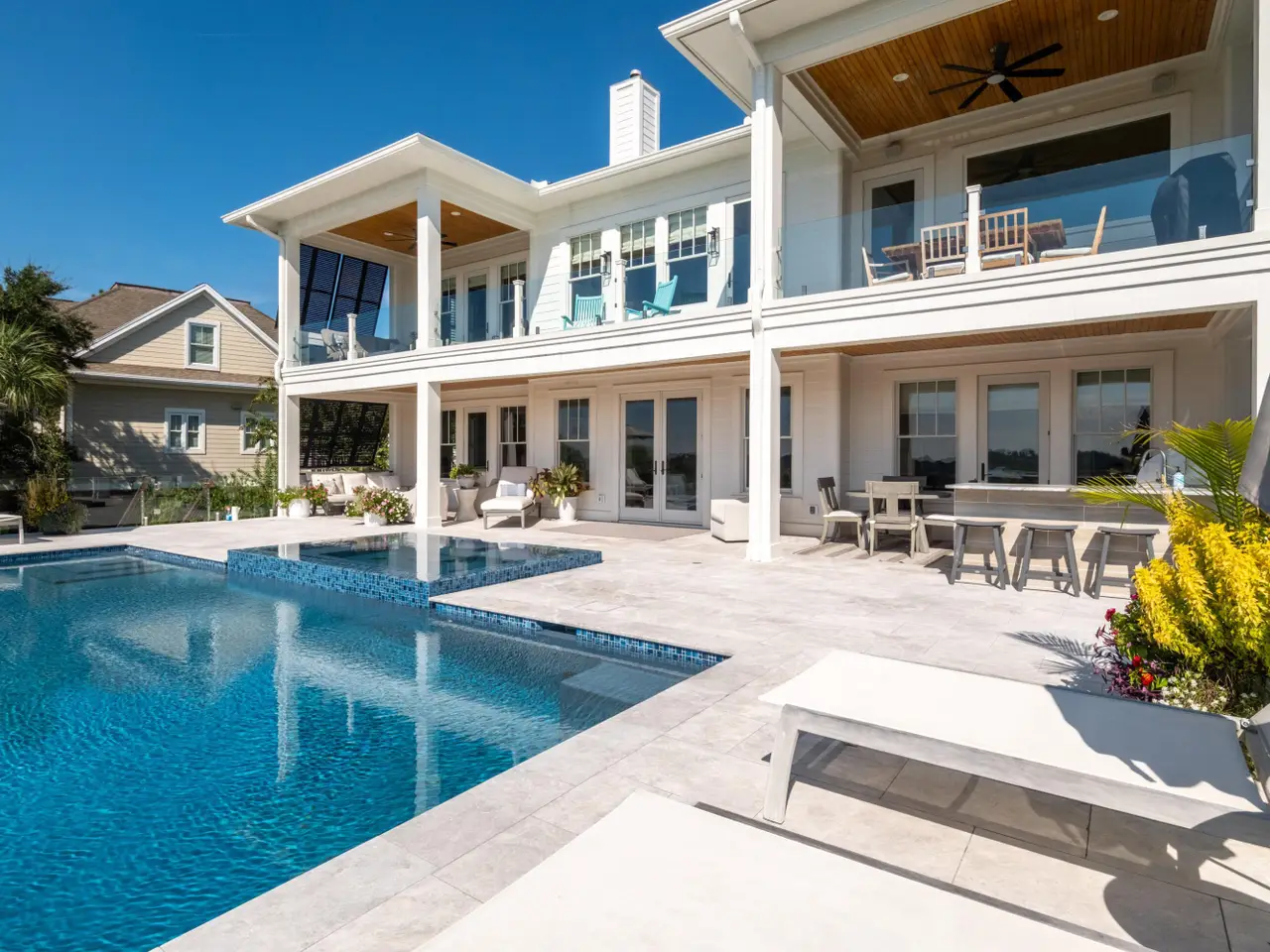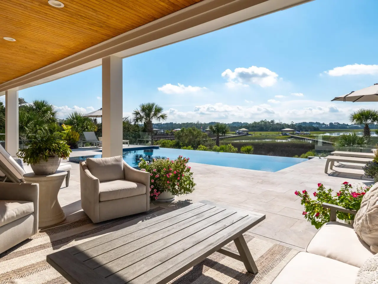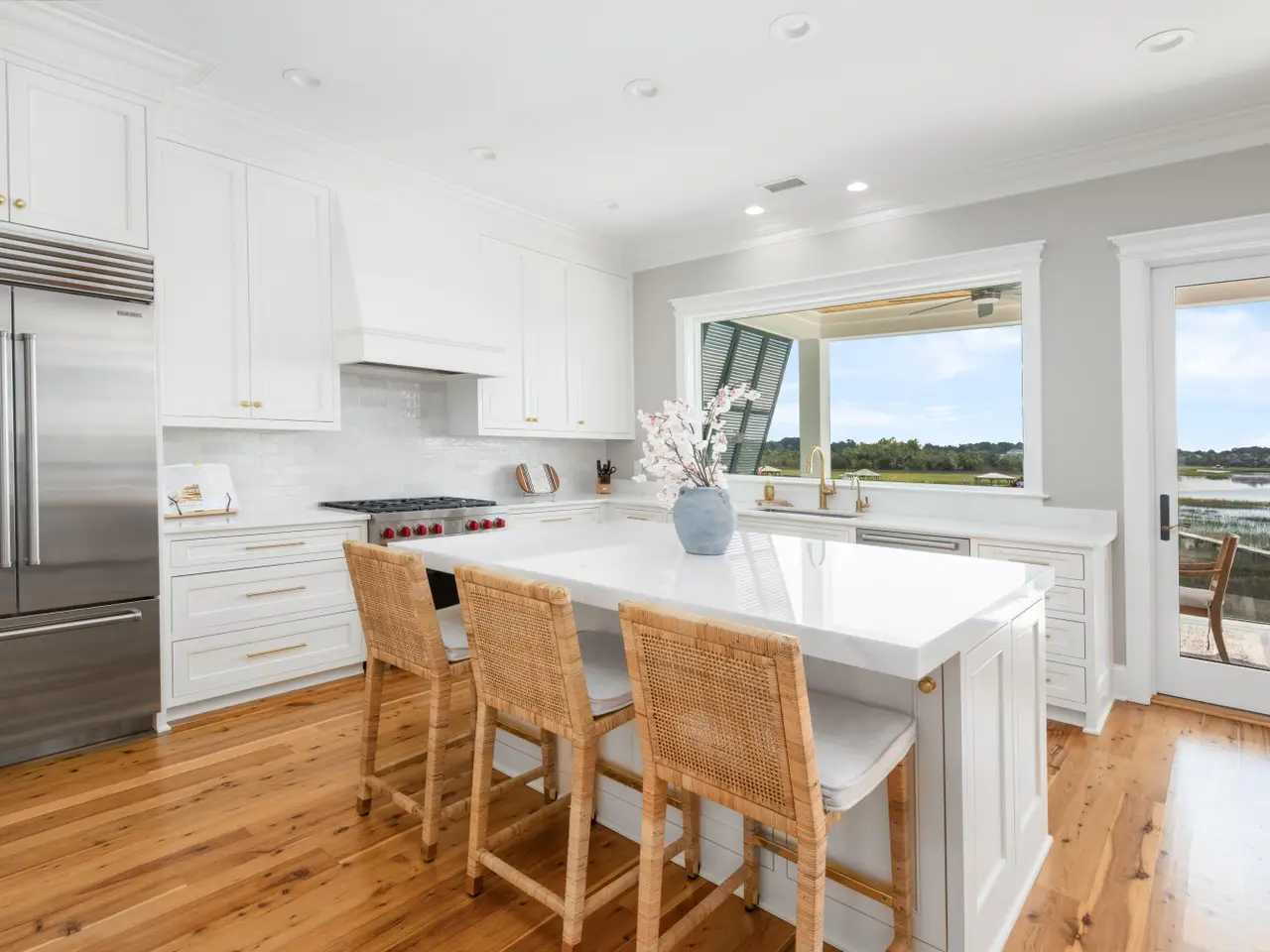 Stunning Home overlooking expansive views of Nowell Creek with Deep water Dock and Lift. Enjoy breathtaking deep-water views from this beautifully renovated elevated home, complete with a dock shared with only 1 neighbor. Enjoy your private 10,000 lb boat lift.The fully remodeled kitchen includes high-end appliance package including a dual-fuel Wolf range, Sub-Zero refrigerator, and Cove dishwasher. The perfectly positioned white marble island is perfect for entertaining guests.Dual Primary Bedrooms with bathrooms have been tastefully updated with modern finishes.The interior showcases gorgeous Australian cypress hardwood floors and ceramic tile throughout, adding warmth and character to every room. For added convenience there is an elevator from the garage to the second floor. This 4-bedroom, 4 full bath, 2 half bath home features spacious en suite bedrooms, an open layout, and luxury finishes throughout. Outdoor living is unmatched with a full wrap around front porch and expansive double back porches overlooking panoramic views of the water. Enjoy days or evenings floating in your own beautiful clear water infinity-edge pool with a gas-heated hot tub. Entertaining is a breeze in this home. Freshly landscaped with lush greenery and colorful flowers accented with a newly installed driveway and walkway enhances the already perfect curb appeal on this home. The 3-car garage includes a finished office or flex space, perfect for remote work or hobbies. Elevated construction provides peace of mind, and nearly every window offers scenic marsh or water views. Enjoy peaceful nature filled views from your window as you wake up in your natural sun lit primary bedroom. Walk out to your balcony to enjoy your first cup of coffee taking in the natural beauty that surrounds you as you begin your peaceful day. Please be sure to confirm any information deemed important in the decision making process.