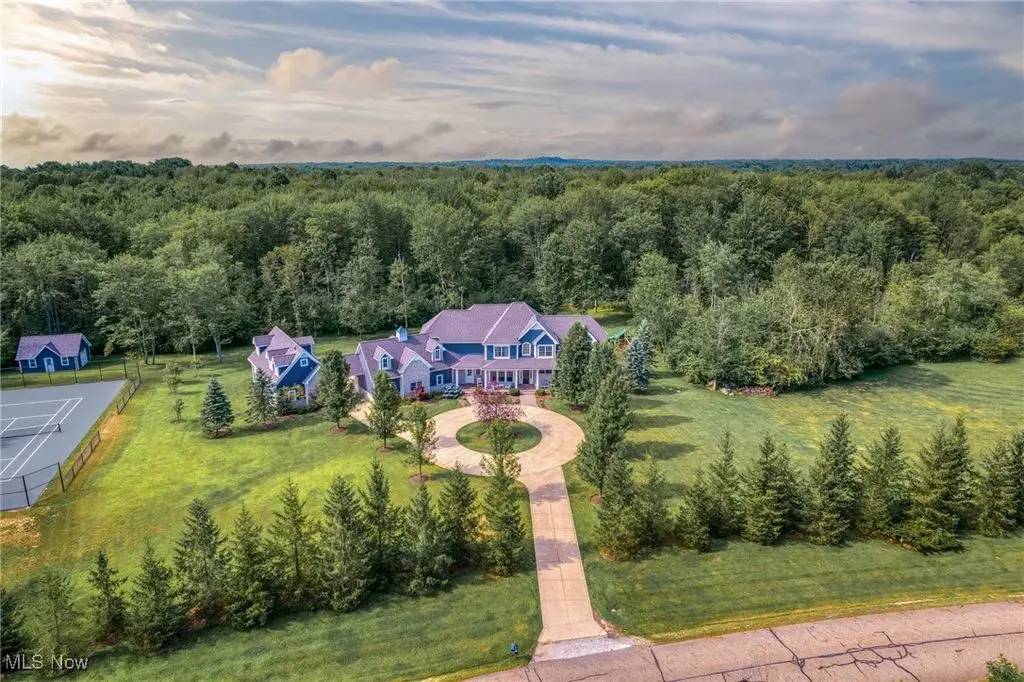 Welcome to this exceptional 5-acre estate offering over 8400 square feet of refined living space across 3 levels, plus a separate 894 sq.ft, 2-story guest apartment above a detached 3 car garage. Built in 2006 with extensive custom upgrades, this property combines timeless elegance with modern luxury in a serene and private setting. A circular drive leads to a covered porte cochere and rear entry garages. Inside, a dramatic 2 story stone and wood foyer opens to gracious entertaining spaces. The main level features a spacious great room with a fireplace, a formal library with glass French doors, built-in cabinetry, and fireplace, and a gourmet kitchen with stainless steel deluxe appliances with a cozy gathering area with its own fireplace - all overlooking a stone patio and expansive backyard. The lower level, accessible by 2 staircases is an entertainer's dream! It includes a state-of-the-art home theater with acoustic walls and theater-style seating, a temperature-controlled wine cellar, a large game room, with built-in bar, a dedicated exercise room with adjacent full bath. Upstairs, the oversized primary suite offers a fireplace, a custom walk-in closet, and a luxurious bath. 3 additional bedrooms, 2 full baths and a spacious bonus room (or 5th bedroom with another full bath complete the upper level. A short walk from the main house brings you to the detached 3 car garage with 1 bedroom guest apartment above - ideal for family, guests or private studio / workspace. Just beyond a a private tennis court newly completed in Summer of 2024. This property is a rare blend of elegance, comfort, and lifestyle amenities, offering a truly exceptional place to call home.