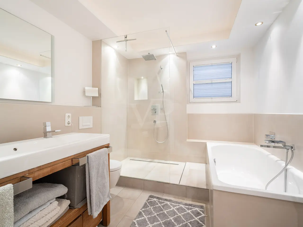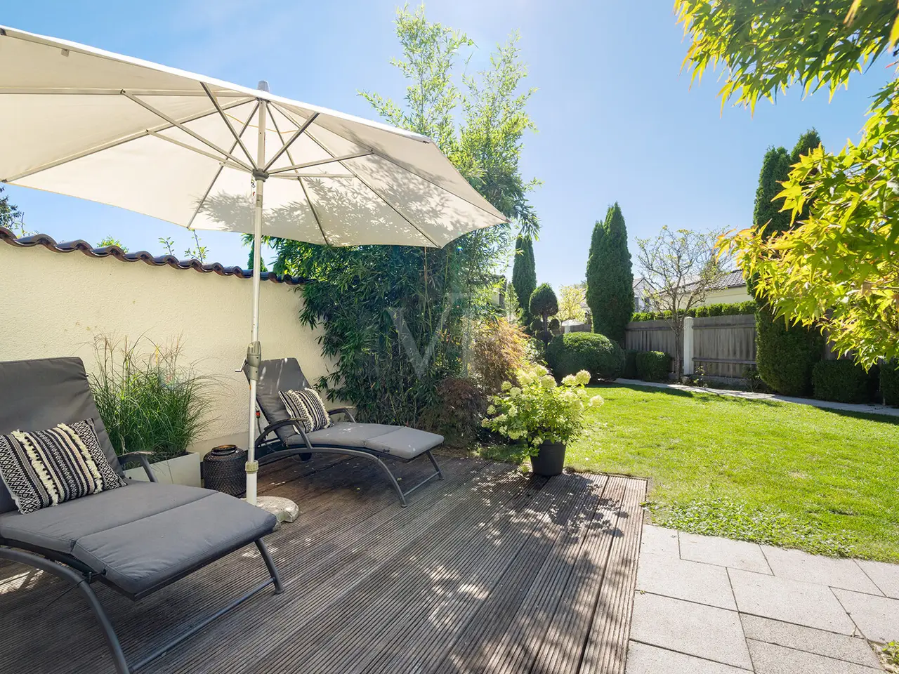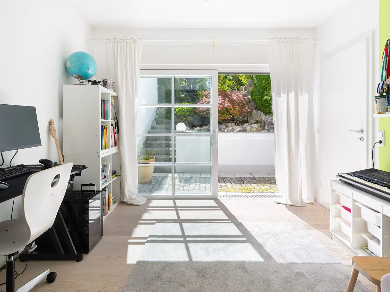 Welcome to your new home! A very well-maintained detached house built in 2002 that combines modern living in a quiet location with high-quality furnishings. The living space of approx. 257 m² is distributed over a well thought-out room concept that allows for many living ideas and offers a high level of comfort. The house is situated on a plot of approx. 628 m² and impresses with maximum privacy. Thanks to the secluded garden area and the well-tended south-facing garden, you can relax here without disturbance and enjoy absolute seclusion. The detached house, completed in 2002, impresses with its high-quality fittings and is in a very well-kept condition. As soon as you enter, the spacious hallway conveys an inviting feeling of living. The first floor is characterized by the spacious living/dining area, which receives plenty of natural light thanks to large windows and is equipped with a fireplace. The fireplace creates a cozy atmosphere in the colder months of the year. There is direct access to the spacious south-facing terrace with awning, which is ideal for socializing outdoors. The stylish, newly designed kitchen is equipped with high-quality BORA built-in appliances and meets the highest standards of functionality. The open-plan design makes this area a meeting place for family and guests. An additional room is currently used as an office and is seamlessly connected to the kitchen and living/dining area. From here you have access to the covered outdoor area on the north side. A guest WC and two checkrooms are also available on the first floor. The upper floor currently has a bedroom, a spacious bathroom with bathtub and shower, a bright and friendly living/dining area and an open kitchen. A use with two or three bedrooms and/or one or two bathrooms is also conceivable and possible - so there are a variety of possible uses. The artium in the basement also provides additional, fully usable living space. Two bedrooms with floor-to-ceiling windows as well as a bathroom and guest WC are available here. There is also an individually usable hobby room. You will also find plenty of storage space and the heating and laundry cellar. The successful room layout offers every generation enough space to retreat and develop. Further features include modern central heating, an alarm system and a spacious double garage. The well-tended south-facing garden was laid out according to Feng Shui and creates a natural living atmosphere with mature trees and plenty of space. The use of the two terraces also opens up numerous possibilities, for example for barbecues or quiet hours in the countryside. The quiet location makes this house a retreat from everyday life, without having to forego good connections to infrastructure and local amenities. The neighborhood is characterized by detached houses in a mature environment. Here you benefit from a familiar, friendly atmosphere. This detached house not only impresses with its size and location, but also with its high-quality and well thought-out fittings. See for yourself and arrange a viewing appointment to get to know your future home in person. This offer provides numerous prospects for couples, families and all those who value a well-kept environment with a wide range of possible uses.
