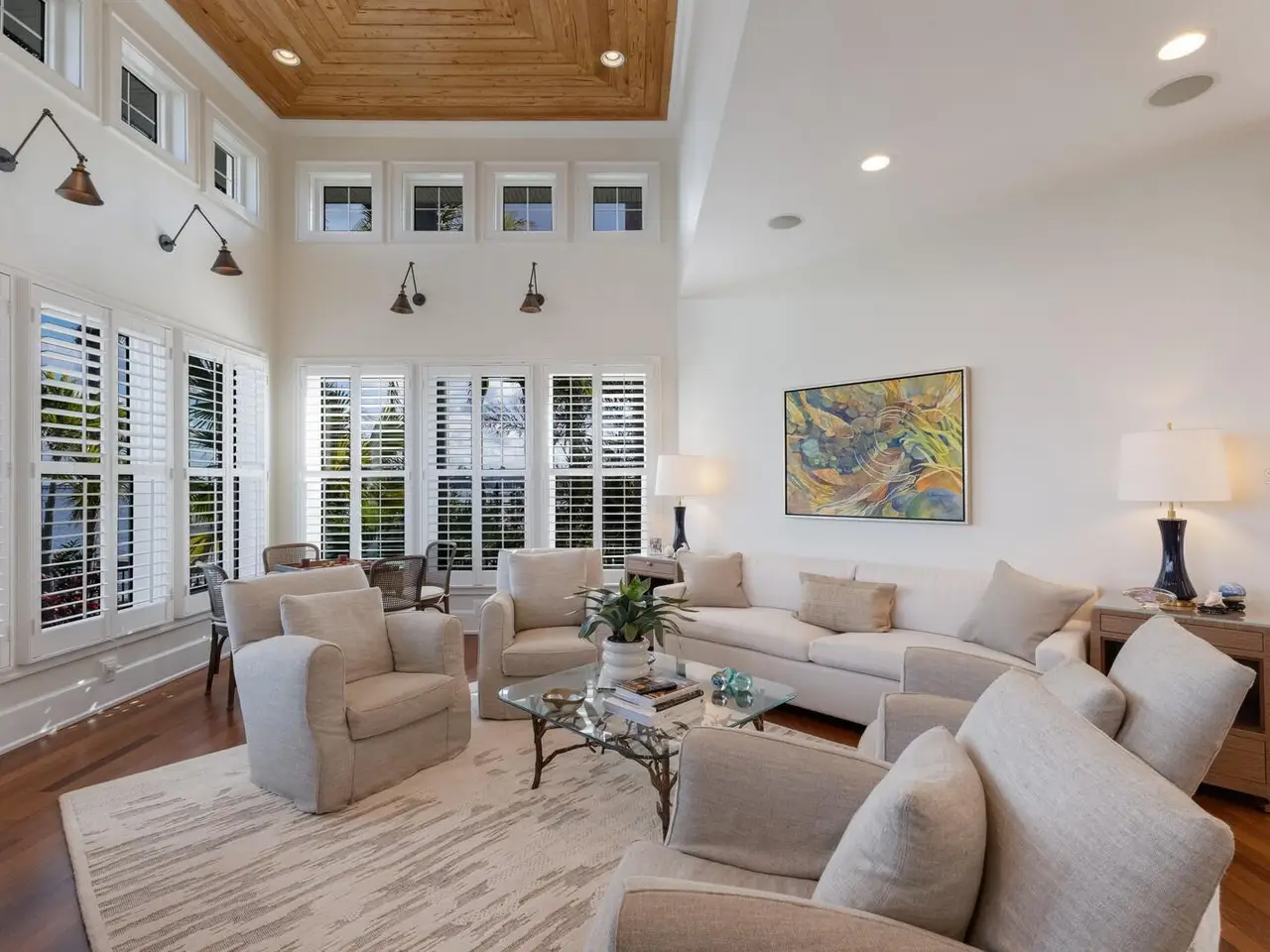 This exquisite four bedroom, 4-1/2-bath custom-built residence, designed by Mark Sultana, offers an unmatched combination of luxury and comfort. Situated along the Manatee River, this property once served as the original landing for the Fogartyville/Palmetto Ferry and provides breathtaking water views from nearly every window. The grand entrance features a stunning custom circular staircase that sets the tone for the entire home, showcasing impeccable craftsmanship and attention to detail. The expansive living areas are highlighted by a full-height travertine fireplace, creating a striking focal point and an inviting atmosphere. Throughout the home, pecky cypress ceilings add unique character and warmth, while Brazilian cherry hardwood floors provide timeless elegance. Custom lighting enhances the elegant ambiance, further elevating the home's refined interior. The thoughtfully designed layout boasts spacious bedrooms, luxurious bathrooms, and high-end finishes, ensuring both beauty and functionality in every corner. The spacious primary suite is a serene retreat with French doors leading to a private balcony with stunning river views, an oversized walk-in closet with custom built-ins to maximize storage and organization and a luxurious ensuite bathroom clad in polished travertine tiles and thoughtful high-end finishes. Guests will enjoy their own private space in the garage apartment complete with a fully appointed kitchenette, bathroom and of course, a beautiful view! All windows and doors were replaced in 2023 with PGT hurricane-impact rated panels, ensuring protection during stormy weather without sacrificing style or natural light. The property also boasts two convenient laundry rooms and solar panels for enhanced energy efficiency while lowering monthly utility bills. Best of all, the home was untouched by the recent storms that passed through the area. Outside, mature landscaping surrounds the property, providing privacy and tranquility. A circular driveway welcomes guests and the front and rear porches are adorned with the timeless charm of Chicago bricks – all adding to the home's stately presence. Whether enjoying the serene river views (you have direct access to the Gulf with no bridges) or entertaining in style, this stunning residence is a true sanctuary for those seeking an extraordinary lifestyle. Enjoy a day at the world-renowned, sugar-sand beaches of Anna Maria Island and all the local island amenities, or take in the many restaurants, shops, museums and culture of nearby Downtown Bradenton - if that isn't enough Sarasota and Tampa/St Pete are a quick trip away!
