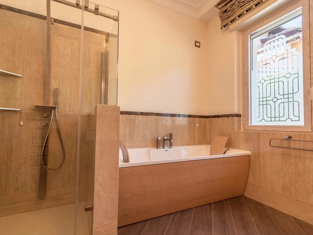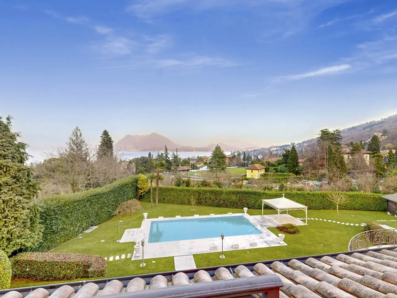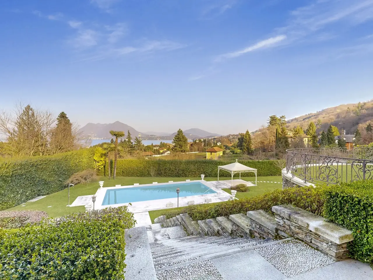 In a dominant and private position, just minutes from the center of Stresa, stands this exclusive luxury lake-view villa, surrounded by greenery and overlooking one of the most spectacular views of Lake Maggiore. A unique property of value, ideal for those seeking an elegant and modern residence in Piedmont, perfectly integrated into the landscape. Built on a 3,460-square-meter plot, this exclusive property in Stresa is the result of the design of a leading Italian engineer and the construction by a major local company. The result is a beautifully designed villa that blends classic architecture and state-of-the-art living technologies, designed to ensure maximum comfort. The villa is spread over a total area of about 500 square meters distributed on three levels, with bright rooms and luxury finishes: parquet floors, marble tiling, large panoramic windows framing the breathtaking view of Lake Maggiore and the town of Stresa. The main floor welcomes with a dramatic entrance with two large columns leading to the large living room, overlooking a covered terrace, perfect for lake view breakfasts or sunset dinners. The kitchen, modern and functional, is separate and connects with the living area. Completing the floor are two double bedrooms with walk-in closets and en suite bathrooms, a fitness area with a terrace-easily convertible into a third bedroom-and a service bathroom. On the upper floor is the master suite, an exclusive sleeping area consisting of a master bedroom with private terrace, large walk-in closet, designer bathroom and a private study, ideal for working from home in luxury and absolute privacy. The basement floor houses an independent apartment for service personnel. It includes a living area with kitchen and dining room, master bedroom with private bathroom and a separate terrace. Also present are a wine cellar and a technical room with boiler. The well-kept garden, planted with fine essences, houses a heated swimming pool with solarium, a wooden gazebo, outdoor shower and a relaxation area from which to enjoy the panoramic view of Lake Maggiore. The property also includes a wooden tool shed and a separate garage with two covered parking spaces. From a technological point of view, the villa is equipped with the most modern facilities: underfloor heating, controlled mechanical ventilation system, centralized air conditioning, solar panels, electric shutters and awnings, and state-of-the-art alarm system. This luxury villa for sale in Stresa is the perfect solution for those looking for a prestigious property on Lake Maggiore, ideal as a first home or summer residence. An authentic charming retreat where you can live immersed in nature, without sacrificing style, innovation and tranquility.