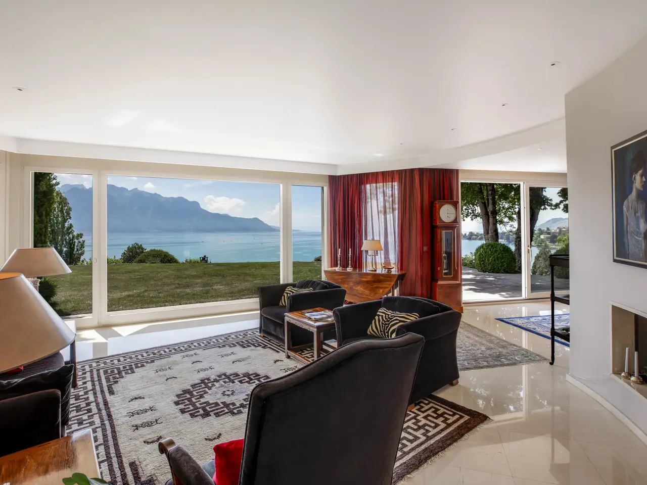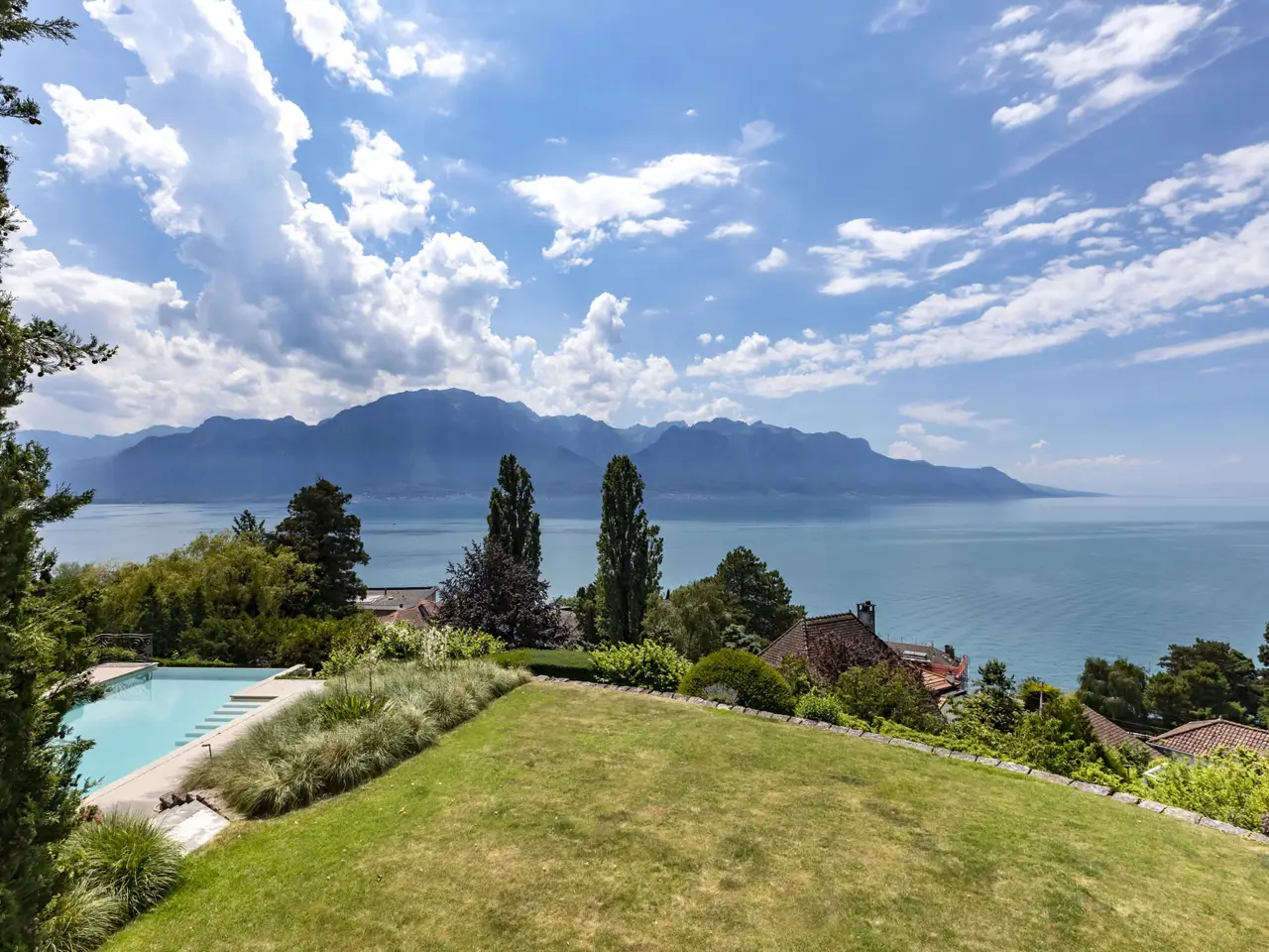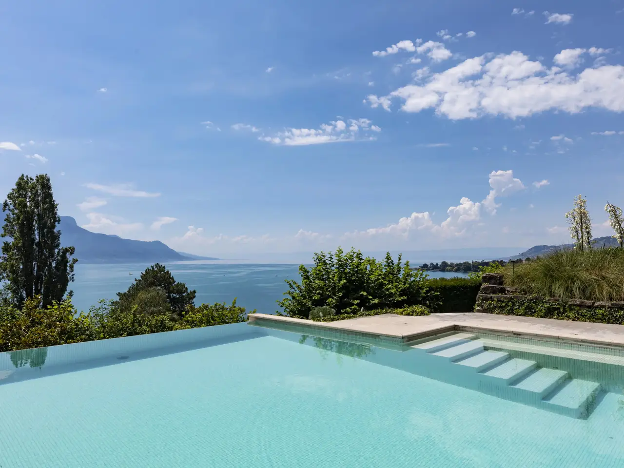 Beautiful property located on a panoramic point, with an outdoor swimming pool, situated in the most residential and tranquil neighborhood of the Riviera, free from train disturbances, offering panoramic views of the lake and mountains. Close to the St-Georges School International, the Clinique de la Prairie, and in proximity to the port of Clarens and Lake Geneva. Surrounded by a magnificent garden with large trees, a pond, shrubs, and rare plants, creating an exceptional environment that ensures a unique atmosphere and complete privacy. Perched on a hill, the villa enjoys exceptional sunlight, including the last rays of the setting sun. High-quality finishes and in a like-new condition. All bedrooms and living spaces overlook the lake to the West.