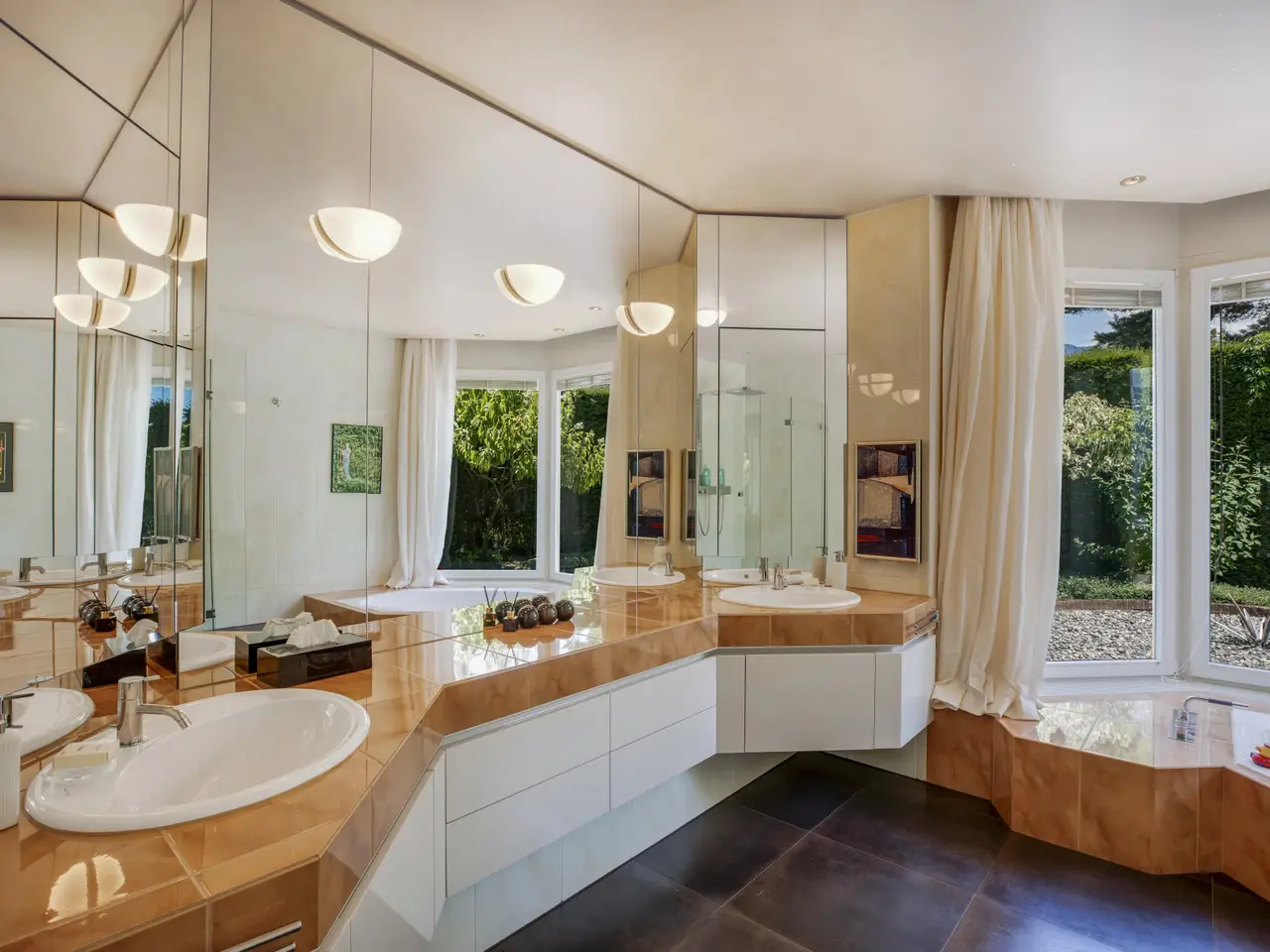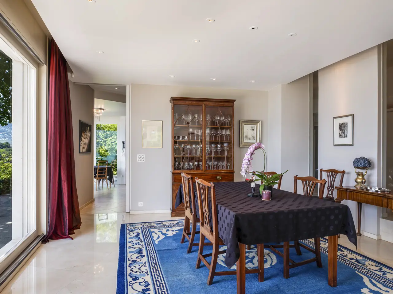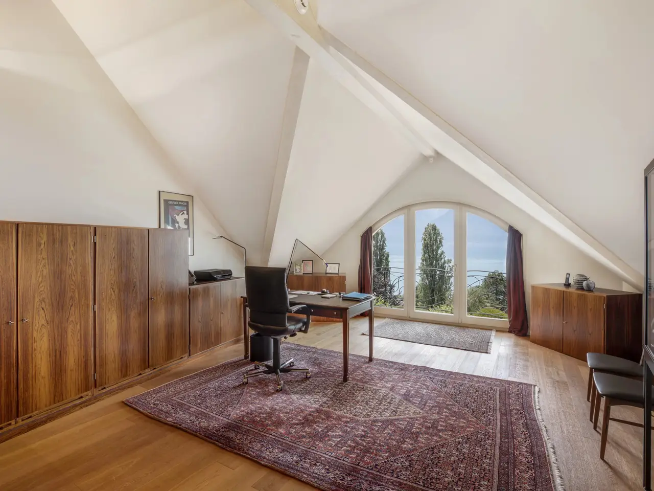 Beautiful property located on a panoramic point, with an outdoor swimming pool, situated in the most residential and tranquil neighborhood of the Riviera, free from train disturbances, offering panoramic views of the lake and mountains. Close to the St-Georges School International, the Clinique de la Prairie, and in proximity to the port of Clarens and Lake Geneva. Surrounded by a magnificent garden with large trees, a pond, shrubs, and rare plants, creating an exceptional environment that ensures a unique atmosphere and complete privacy. Perched on a hill, the villa enjoys exceptional sunlight, including the last rays of the setting sun. High-quality finishes and in a like-new condition. All bedrooms and living spaces overlook the lake to the West.