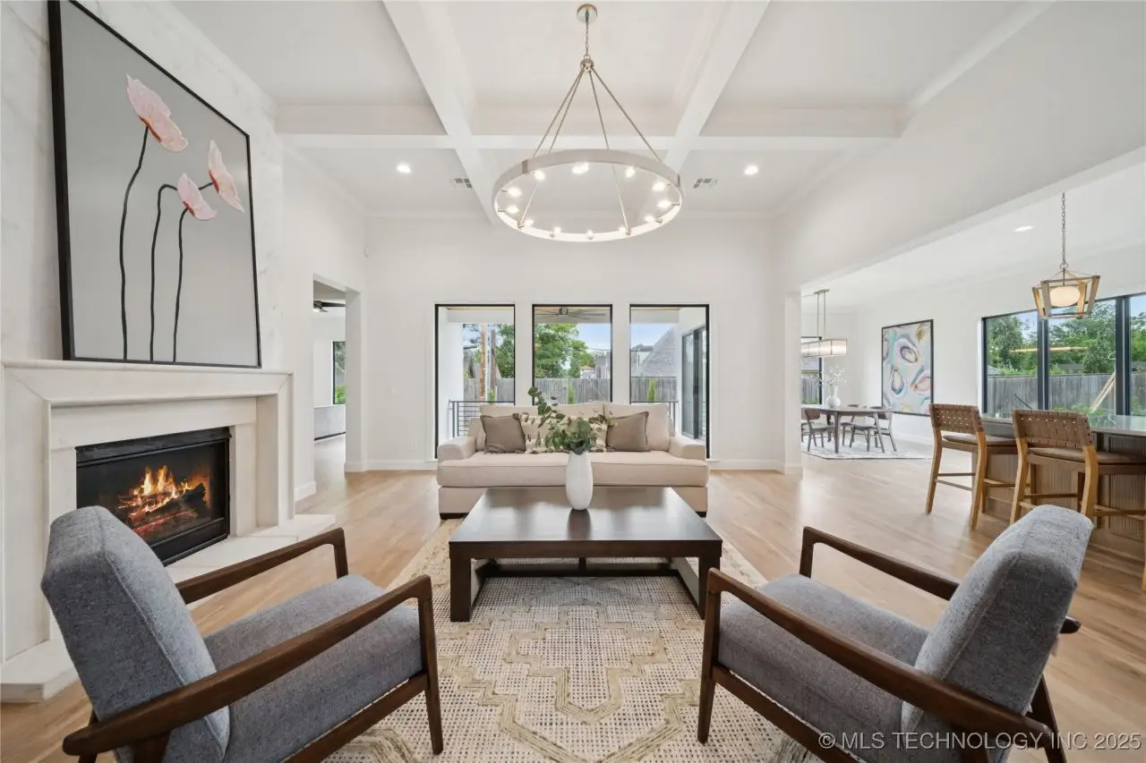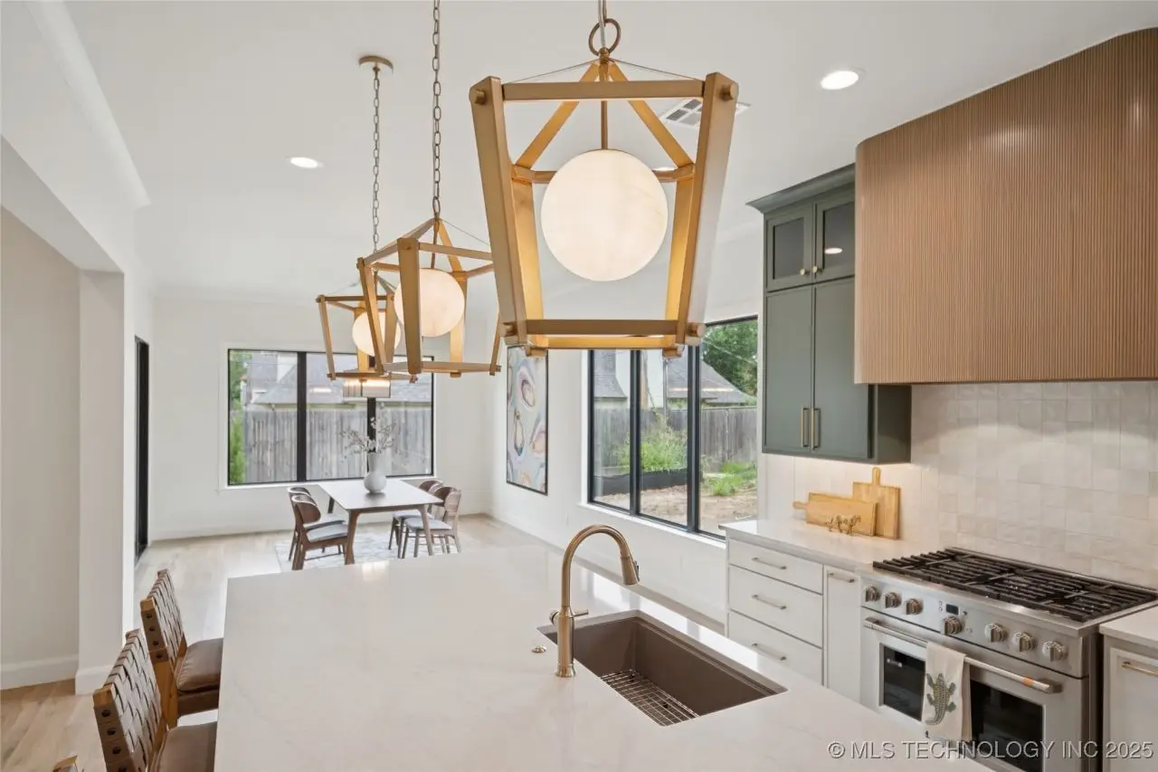 Welcome to this stunning new construction home nestled in the heart of Midtown Tulsa. Thoughtfully designed to maximize both style and functionality, this custom-built residence offers a seamless blend of modern elegance and timeless craftsmanship. Step inside to be greeted by a floating staircase in the entry, a striking architectural feature that sets the tone for the home's contemporary design. Throughout the home, you'll find real hardwood floors, adding warmth and sophistication to every space. The main floor boasts a luxurious primary suite with a spa-like bath, along with a private guest suite, providing convenience and privacy for visitors. Upstairs, three additional bedrooms and two full bathrooms accompany a flex space, ready to be tailored to your needs - whether it's a home office, a playroom, or a media lounge. The gourmet kitchen is a chef's dream, featuring custom cabinetry with soft-close drawers, high-end appliances, and designer finishes that elevate the space. Built with energy efficiency in mind, the home includes spray foam insulation and a tankless hot water system for optimal comfort and sustainability. Agent related to Seller.
