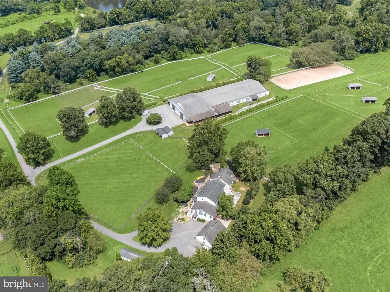 Welcome to 1955 Valhalla Drive, a breathtaking 25-acre horse farm tucked away at the end of a long private driveway in a peaceful, secluded setting. This exceptional property offers the perfect blend of equestrian functionality and refined residential living. The farm features a gorgeous 10-stall barn with attached individual runs for each stall and infrastructure in place to expand to 13 stalls as three stalls are oversized. The thoughtful equestrian amenities include a wash stall with hot and cold water, a heated lounge and tack room, ample loft storage, and custom lockers. The indoor arena features a custom blend of rubber and sand footing, LED lighting, mirrors, and viewing stands perfect for hosting clinics or teaching lessons. The climate-controlled lounge in the barn offers a warm gathering space with oak cabinetry, a kitchenette, and vinyl flooring. Additionally, there is a separate feed room with custom cabinetry and shelving and multiple equipment and hay storage nooks carefully placed in the barn for ease of care of the horses on a daily basis. Additionally, there is a bathroom with full laundry in the barn perfect for clients and guests, and an incredible amount of storage for barn equipment, tractors, and hay as well . Need extra stalls? There is plenty of room to expand either by converting the three oversized stalls or adding stalls in the storage area attached to the main barn. See the included floor plans for measurements and possibilities. The barn operates on a separate electric meter and is served by its own well and septic system. The property also includes multiple storage sheds and safely fenced pastures each with run-in sheds surrounded by a combination of wood and vinyl fencing and a full size 20 x 60 meter sand outdoor riding arena, making it ideal for both casual and competitive equestrian pursuits. The custom-built 5 bedroom, 3 full and 2 half bath home offers nearly 5,000 square feet of living space with fresh neutral paint throughout. The kitchen is designed for everyday living and entertaining, offering ample cabinetry, dual wall ovens, a large five-burner Kenmore range, and stunning views of the pastures. A spacious great room with vaulted wood ceilings sits just off the kitchen and offers access to the mud room, while a separate large living room with vaulted wood ceilings and a wood-burning fireplace provides a warm and welcoming gathering space. The first-floor primary suite features a large custom dressing room and a spa-like en suite bath with dual vanities and a custom tile shower. The first-floor laundry room with storage adds everyday convenience. The unfinished basement includes a powder room and several additional rooms that can easily be converted into a home office, gym, or home theater. Upstairs, you'll find four additional bedrooms, including a junior suite with an en suite bath and walk-in closet. A secondary full bath is located off the hall and serves the other three bedrooms. One of the upstairs bedrooms includes a built-in sink, and was previously an art studio, offering flexible space that can be repurposed to suit your needs. Outside, the home is flanked by gorgeous perennial gardens, a large two story detached three car garage, a charming wooden bridge to the barn, and manicured lawns as well as a large rear deck and patio with a grilling station. Xfinity internet serves the home and barn ensuring connectivity. This is a rare opportunity to own a fully appointed, private equestrian estate with such attention to detail and meticulous care. Whether you're a professional equestrian seeking a permanent base of operations, a discerning competitor looking for top tier accommodations for you and your show horses, or someone simply looking for peaceful country living with luxurious farm amenities, 1955 Valhalla Drive has so much to offer. Shown by private appointment only. Please no drive bys. Sale includes two parcels and totals 25.38 acres.