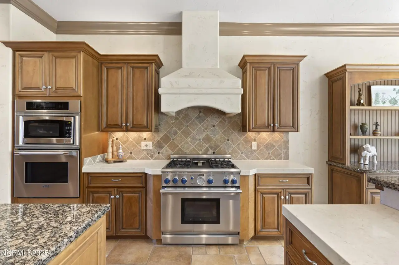 A Sanctuary in Saddlehorn. This exceptional custom estate blends timeless elegance witheveryday comfort, nestled on a meticulously landscaped .72-acre lot in one of Reno's mostcoveted communities. Behind a private custom gate, a serene courtyard sets the tone for thetranquil experience that lies within.Step inside to a light-filled great room with soaring ceilings and a wall of windows that frame thelush, park-like backyard, your own private retreat. The open-concept kitchen features a breakfastbar, bright dining nook, and effortless flow for entertaining. Inviting sitting area and separate dining room flank both sides of the entry foyer. The expansive primary suite offers a private sitting area to relax creating a peacefulescape, while the spa-inspired bath boasts a soaking tub and separate shower. Two additionaloversized bedrooms include one en-suite and one connected by a Jack-and-Jill bath, ideal forguests or multi-generational living.For the automotive or outdoor enthusiast, the garage space is unmatched including a dedicatedRV garage large enough for a Diesel Pusher, boat, or collection of vehicles.A rare offering in Saddlehorn, this home is a statement of refined living.Welcome to 14275 Black Eagle Court, where luxury meets serenity.
