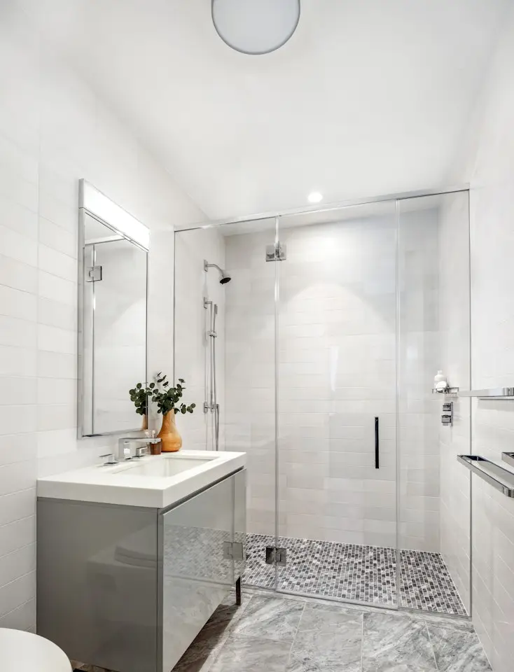 • Bianco Dolomite and Grigio Carnico marble bath