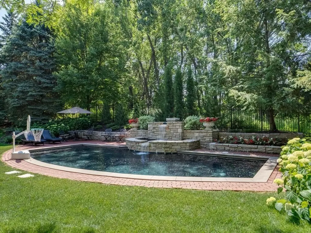 Welcome to this impeccably maintained grand red brick Colonial, offering timeless elegance and modern luxury in a truly spectacular setting. Nestled among lush gardens, this home boasts an inviting in-ground pool, expansive patio space—perfect for entertaining—and a layout designed for both comfort and sophistication. Step inside the grand foyer with its sweeping staircase and discover a spacious open floor plan featuring gleaming hardwood floors, a stunning center island kitchen with high-end finishes, and a cozy stone fireplace anchoring the main living area. A dedicated main-floor office and formal dining room add function and elegance. Upstairs, you’ll find four generously sized bedrooms, including a luxurious primary suite with a walk-in closet and conveniently located laundry. The lower level offers incredible bonus living space with a built-in media center, wet bar, billiards room, exercise area, and abundant storage. This home blends classic Colonial charm with top-tier amenities, making it an exceptional opportunity for refined living and entertaining.