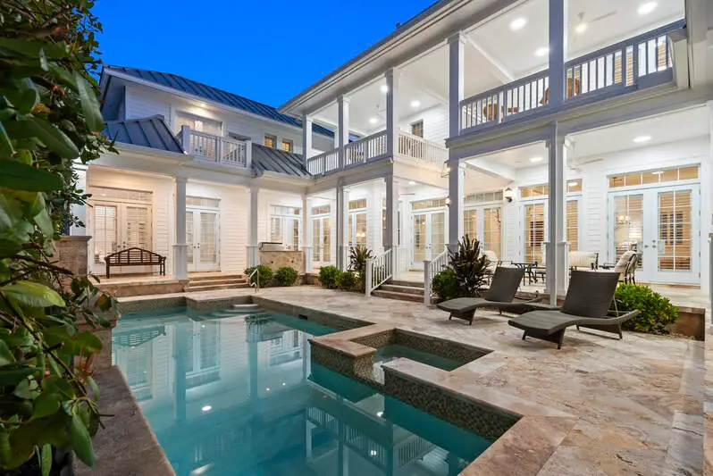 Discover an extraordinary opportunity, a Grand Family Retreat in the Heart of Naples with an unmatched location and irreplaceable corner, oversized lot! Seamlessly blending elegance with the comfort of modern living, this five bedroom plus den residence is a warm and welcoming haven, that exudes both timeless charm and contemporary luxury. From the moment you step into the impressive foyer, you'll sense the home's inviting spirit. Rich wood flooring, a coastal fireplace, and bright natural lighting all set the tone for refined yet relaxed living, perfect for both quiet family evenings and lively gatherings with friends. At the heart of the home lies an elegant family room and kitchen with its vaulted ceiling, abundance of cabinetry and integrated appliances with gas range, making family breakfasts or weekend entertaining a delight. This airy oasis invites you to linger over meals while enjoying soothing views of the private outdoor swimming pool surrounded by lush greenery. Meticulously maintained throughout, and a brand-new roof, skylights and gutters installed as of the end of 2024 as well as freshly painted. Whether you are looking to relax, work, study or more, a comfortable study/TV room offers a peaceful retreat, ideal for balancing productivity and relaxation. Additional amenities like the front porch to watch the sunsets elevate everyday living and roof top to watch the world go by. Ground floor primary suite features a fully fitted dressing room and large ensuite bathroom, a soothing sanctuary at day's end. A further generous first floor guest suite overlooks an enchanting garden courtyard. Venture upstairs to discover three further double bedrooms, all with ensuite bathrooms and balconies. This remarkable home, steps from the beach and a short walk to Third Street Shops and Dining is an invitation to create cherished memories in a setting that embodies Naples most appealing qualities: heritage, community, and effortless access to both the Gulf Coast and the city. Embrace a lifestyle that celebrates the best of Naples charm and urban sophistication-all in one exceptional family residence.
