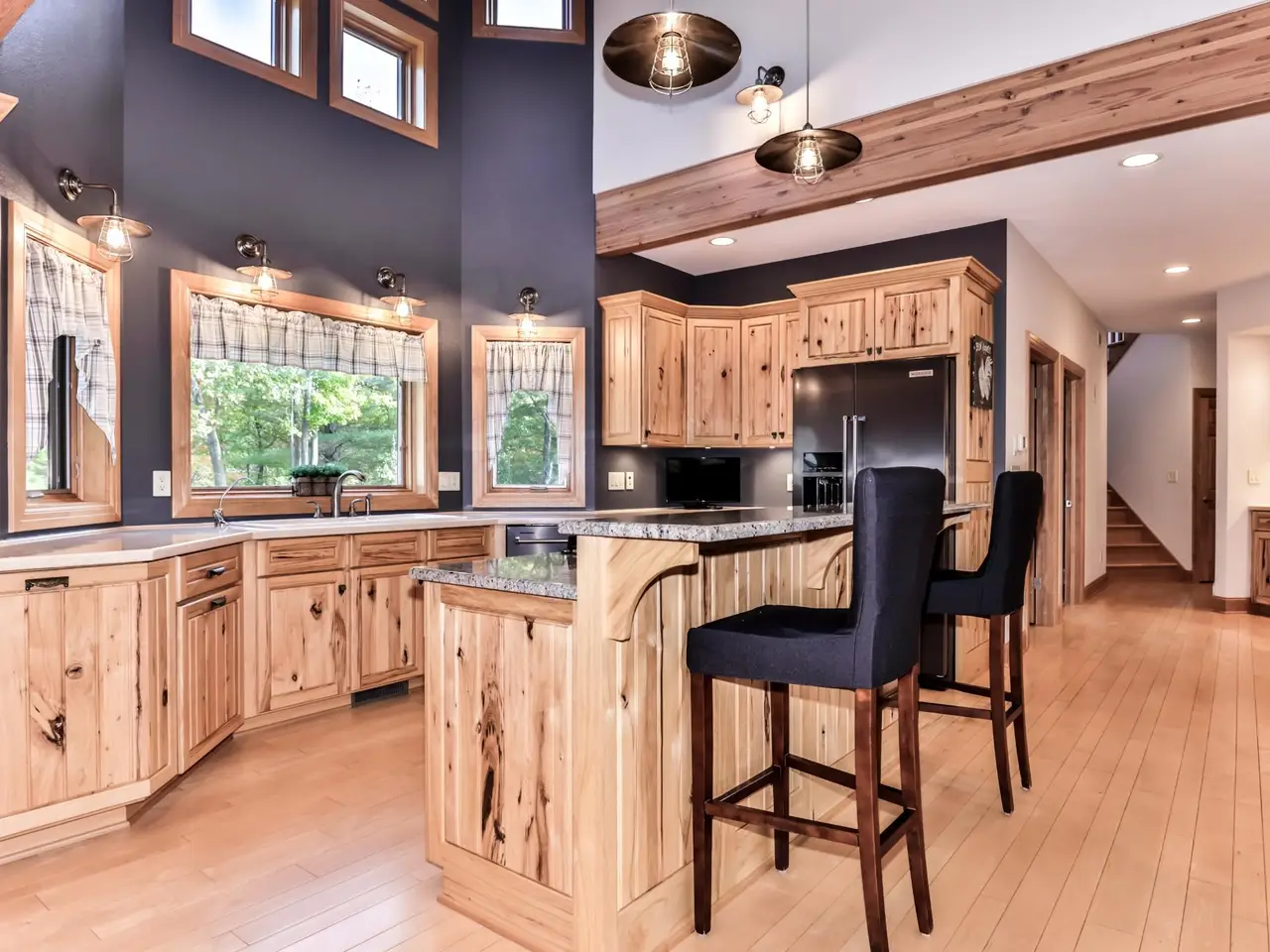 This stunning 3-bedroom, 3.5-bath craftsman-style home and hobby farm estate sits on over 11 acres of rolling, wooded terrain just minutes from Rhinelander, offering a rare blend of privacy, functionality, and charm. The property features fenced pastures, outdoor arenas, multiple wells with irrigation, open meadows, wooded trails, and a classic barnperfect for equestrian or recreational use. Built by VanStrydonk, the home showcases Scan-Log siding & natural fieldstone, multiple porches, extensive landscaping, flower beds, a fire pit, and a blacktop driveway leading to a 2-car attached garage with a finished hobby room above. A custom 52' x 36' auxiliary building echoes the homes architecture, adding versatility and style. Inside, you'll find a gourmet kitchen with solid surface counters and high-end appliances, a dining area with a gas parlor stove, a main floor office, and a soaring two-story living room anchored by a massive fieldstone gas fireplace. The layout includes two primary suitesone on the main level and one upstairsplus a lofted office, main floor half bath, and laundry hookups on both the main and lower levels. The lower level offers a spacious family room with built-in theater, an exercise room with included gym equipment, a third bedroom, full bath, and utility room. With its thoughtful design and natural beauty, this property is a peaceful retreat with all the amenities of modern livingyour own little piece of heaven. Photos, aerial views, and a full inclusion list are available.