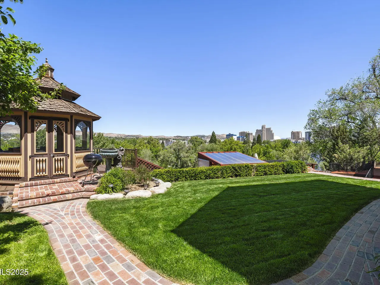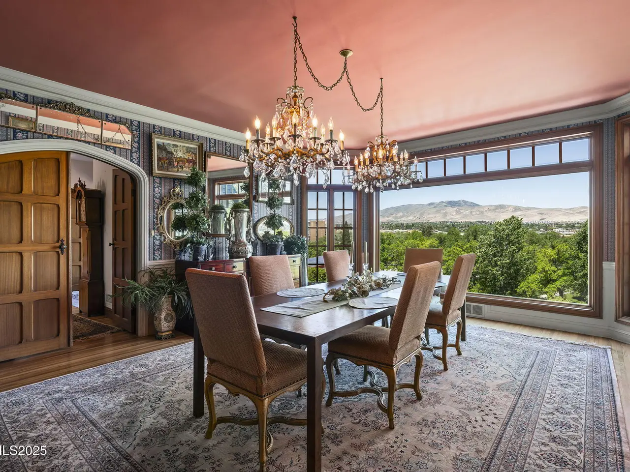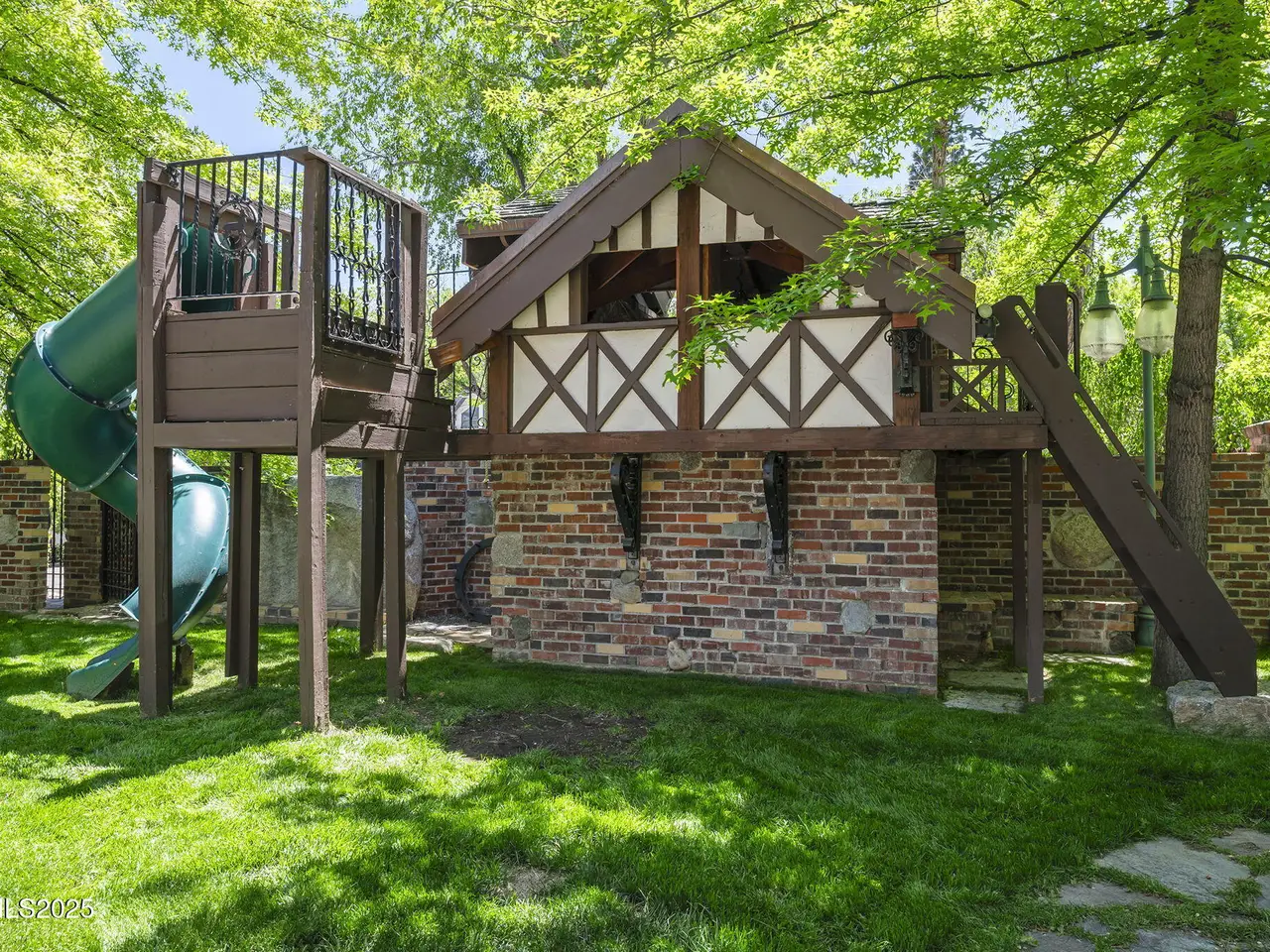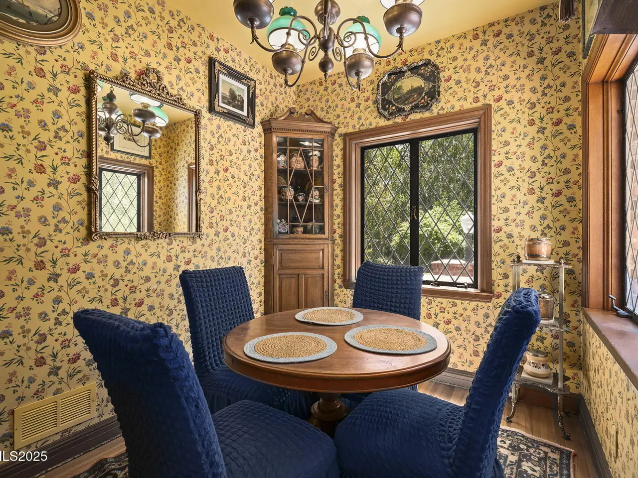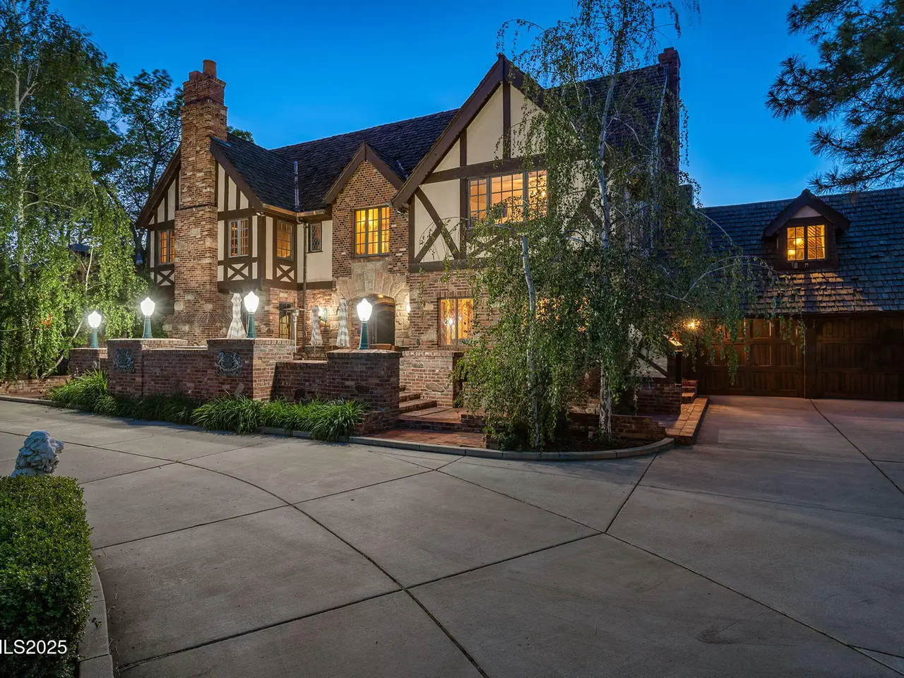 Make Reno's history into your future at 745 California Avenue, a 7,722 sq ft, 6 bd/5.5 bath English Tudor Revival home. Known as the Payne House and designed in the late 1930s, it features a 20-foot circular entry hall connecting formal and cozy living areas. Its prime location offers stunning views of the Truckee River and downtown Reno through expansive windows, a terraced yard, and a gazebo. With its rich history, detailed restoration, and modern amenities, this house is ready for its next era and owner. Discover a distinctive property that blends architecture and history on Reno's iconic bluff overlooking the Truckee River at 745 California Avenue. This 7,722 sq ft English Tudor Revival estate was designed in the late 1930s by famed Nevada architect Edward Parsons, who called it "rather a thrill." The home makes a lasting impression with decorative brickwork, half-timbering, steeply pitched symmetrical gables, leaded glass windows, and massive chimneys. Its form is most striking from above, where terraced gardens and mature trees blend seamlessly into the home's architecture, offering privacy, beauty, and a deep sense of permanence. More than 50 years after its construction, the Payne House's current owner undertook a thoughtful restoration. Key original features—hardwood flooring, hand-finished brickwork, and bespoke architectural details—were preserved. Modern upgrades include central air conditioning, forced-air gas heating, updated plumbing and electrical systems, and security. A restored vintage elevator provides convenient access across all levels of the home. The home includes 6 bedrooms and 5.5 bathrooms. The primary suite features a vintage fireplace, mountain views, dual vanities, a jetted soaking tub, a walk-in shower, and a spacious closet. The kitchen pairs classic charm with modern function, with built-in appliances and a garden-view breakfast nook. The formal dining room features oversized windows that frame panoramic views of the Truckee River and Sierra foothills. A painted ceiling mural floats above the living and game room. Wood-burning and freestanding fireplaces add warmth and character throughout the home. Additional rooms include a library, office, bonus space, and a fully finished walk-out basement with its own recreation area and workshop. The finished basement opens to the yard and adds flexible space for hobbies, guests, or extra living. The 0.79-acre lot includes a custom stone wall along California Avenue, a private driveway, a detached two-car garage, and a playhouse designed to echo the main residence. A tranquil pond anchors the front yard, while the terraced backyard unfolds to a deck, patio, and a gazebo perched above the river—perfect for gatherings, balloon watching, or quiet river moments. Located about a mile from downtown Reno, the home offers convenient access to parks, schools, and cultural venues. The Newlands Historic District is known for its concentration of other historic homes, tree-lined streets, and a landscape shaped by the City Beautiful movement. The Payne House offers more than architectural beauty—it holds a story. From its distinguished origins to its careful restoration, this home reflects vision, character, and legacy. It's ready for its next era—and for someone who values history, design, and the timeless experience of living in a truly remarkable place.