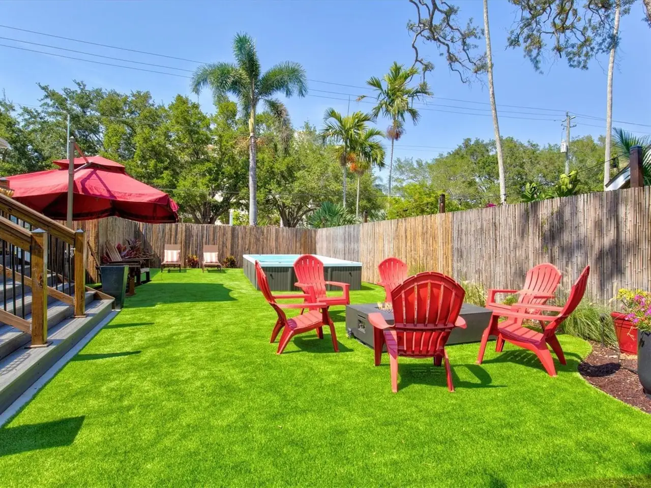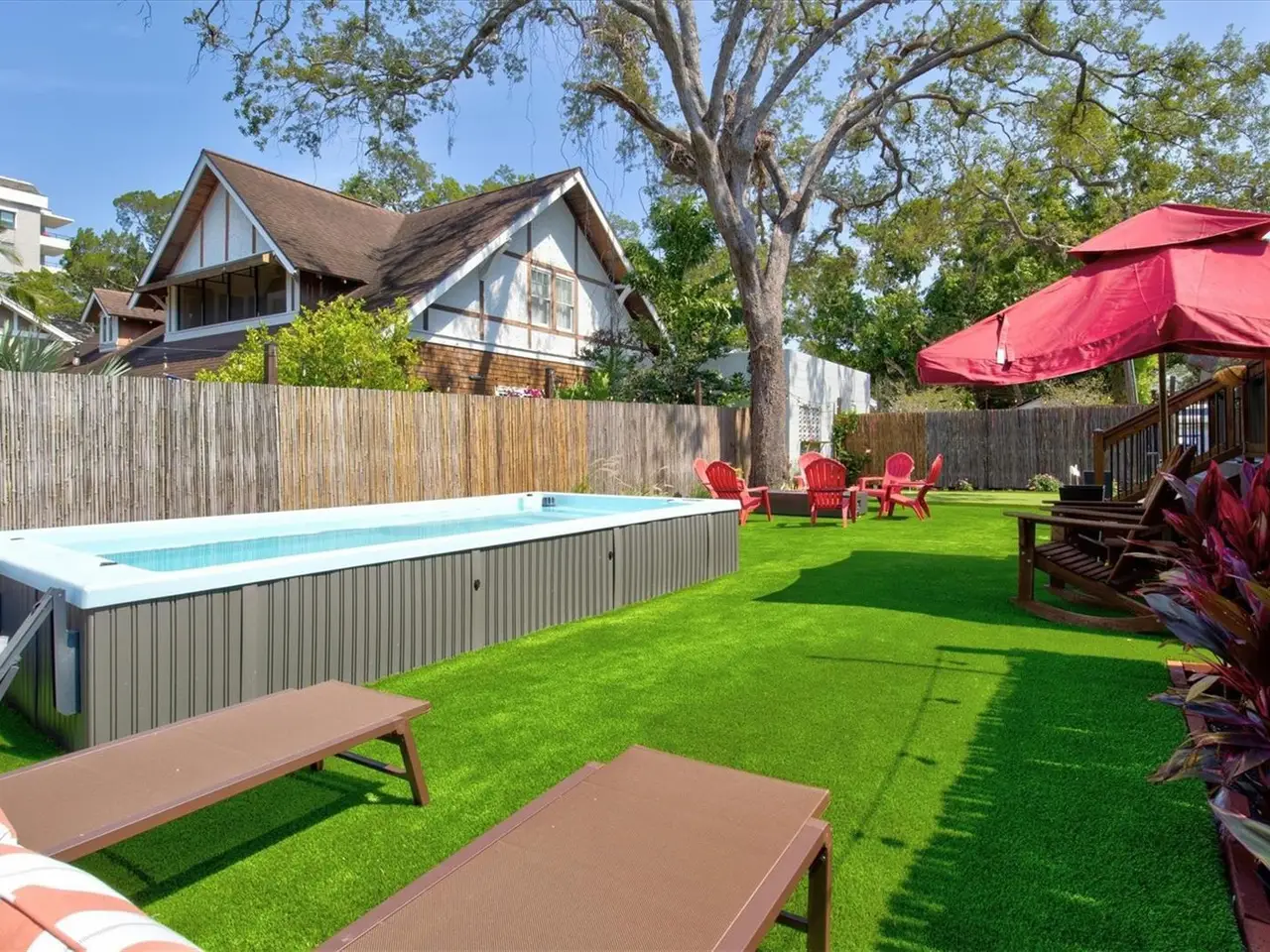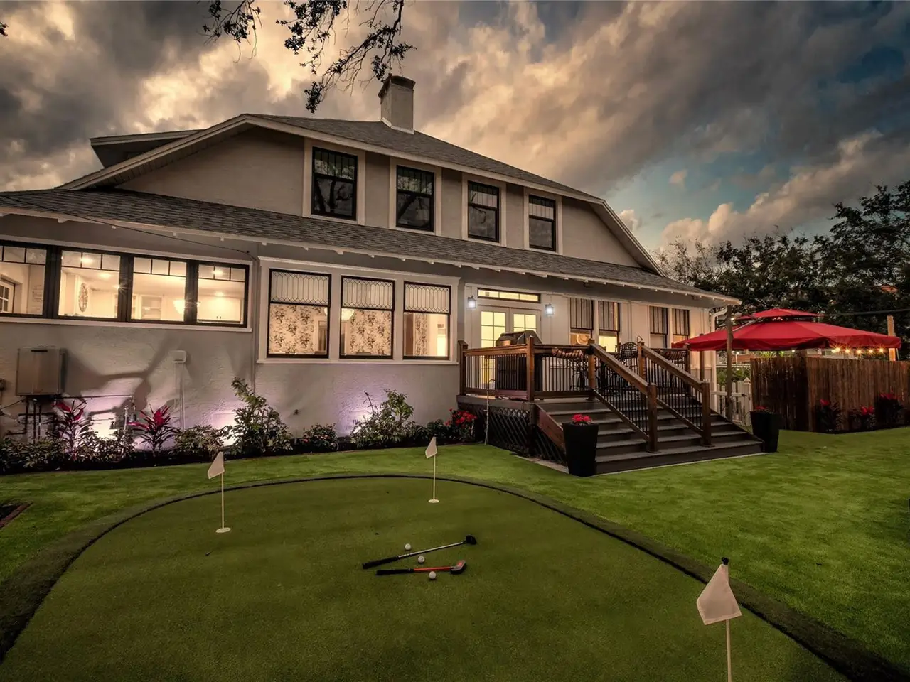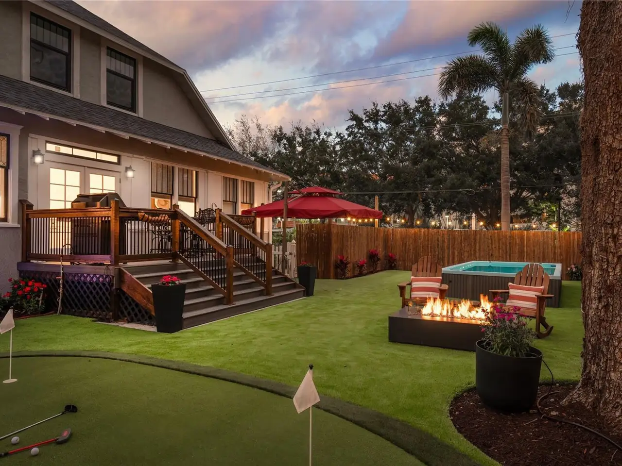 Immerse yourself in the rich history and timeless elegance of this meticulously renovated historic home located in the heart of Point Pleasant in downtown Bradenton. This distinguished two-story, 4-bedroom, 5-bathroom American Four Square home offers a harmonious blend of classic architectural charm and contemporary luxury. Originally built in 1913, the Betts House stands as a testament to Bradenton's storied past, with every detail meticulously preserved and enhanced for modern living. The newly landscaped front yard leads to the inviting, large wrap-around porch evoking a sense of nostalgia, reminiscent of days gone by. The grand living area has the original leaded windows with a fireplace and leads to both the family room and kitchen. The spacious family room has impact windows and a convenient full bath with the stairway leading to the four bedrooms and four additional baths. The remodeled kitchen and dining area is an open and inviting space overlooking the side yard. Crafted with care, the kitchen features impact windows, KraftMaid cabinetry, new LG appliances, a Bosch paneled dishwasher, exquisite butcher block counters, and complemented by an island topped with Dekton Entzo quartz. The large dining area still has the vintage leaded windows and leads to the impressive added butler's pantry that was formerly a side porch. It offers a wine refrigerator, two refrigerated drink drawers, a sink, and additional cabinetry also with Dekton Entzo quart. This area offers a seamless transition between indoor and outdoor entertaining. Once upstairs, you will find three bedrooms with three remodeled ensuite baths and a fourth bedroom serviced by an updated hall bath. The added primary bath has a spacious walk-in shower, dual vanities, and a private water closet. Step outside and discover a private oasis, complete with a composite side deck, rebuilt back porch, and a partially submerged 15'x8'x5' dual swim jet lighted Swim Spa. Practice your putting skills on the professionally installed 4-hole putting green, surrounded by lush artificial turf and expertly landscaped gardens. After a busy day, relax by the gas fire pit or rinse off in the outdoor shower before your resistance swim. Enjoy privacy with new bamboo fencing and landscape lighting, while the addition of string lighting illuminates the side yard for enchanting evenings under the stars. Thoughtful updates include a new roof in 2022, a replacement of the upstairs HVAC unit in 2023, 16 new impact windows, and a complete refinished and staining of wood floors, stairway, and handrails. In addition, the interior has been freshly painted and has new light fixtures and new window treatments throughout. Perfectly situated a very short distance from historic Old Main Street with its charming shops, bars, and restaurants as well as the marina, Manatee River, and the Riverwalk. The Betts House offers unparalleled access to the best of Bradenton's waterfront living. Experience the perfect harmony of history and modern comforts by discovering the timeless allure of this exceptional residence.