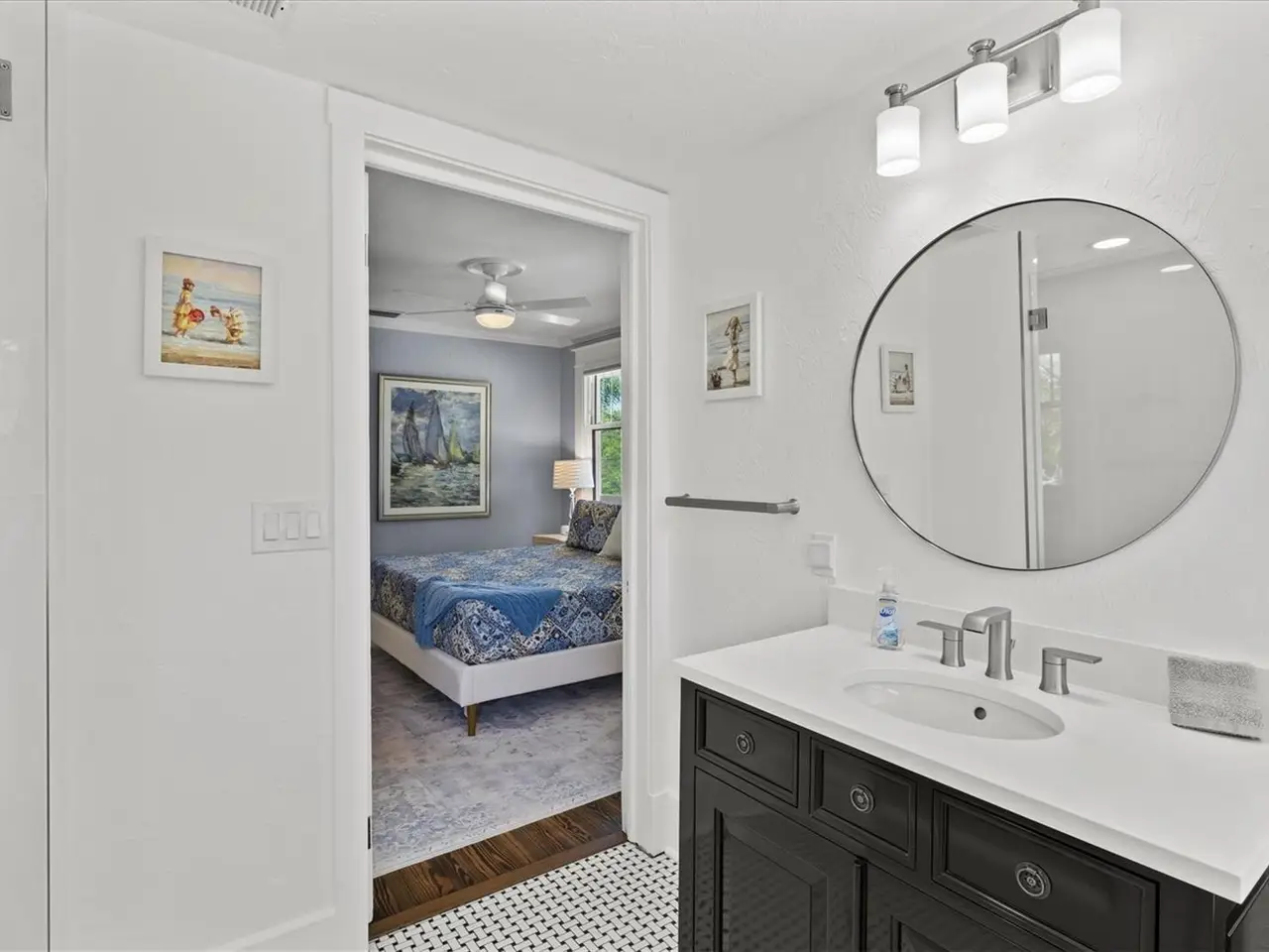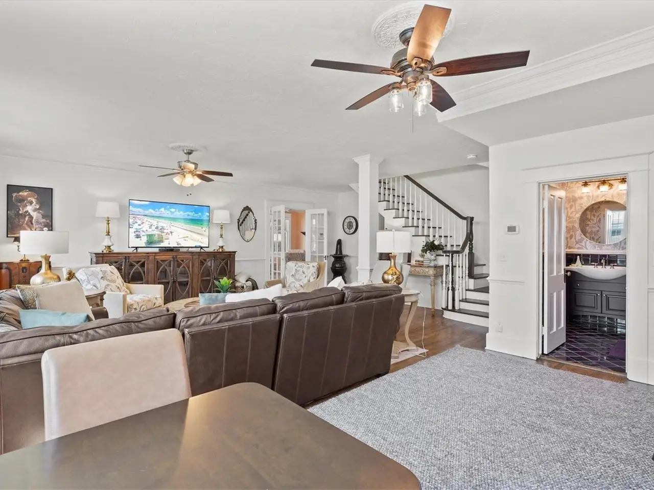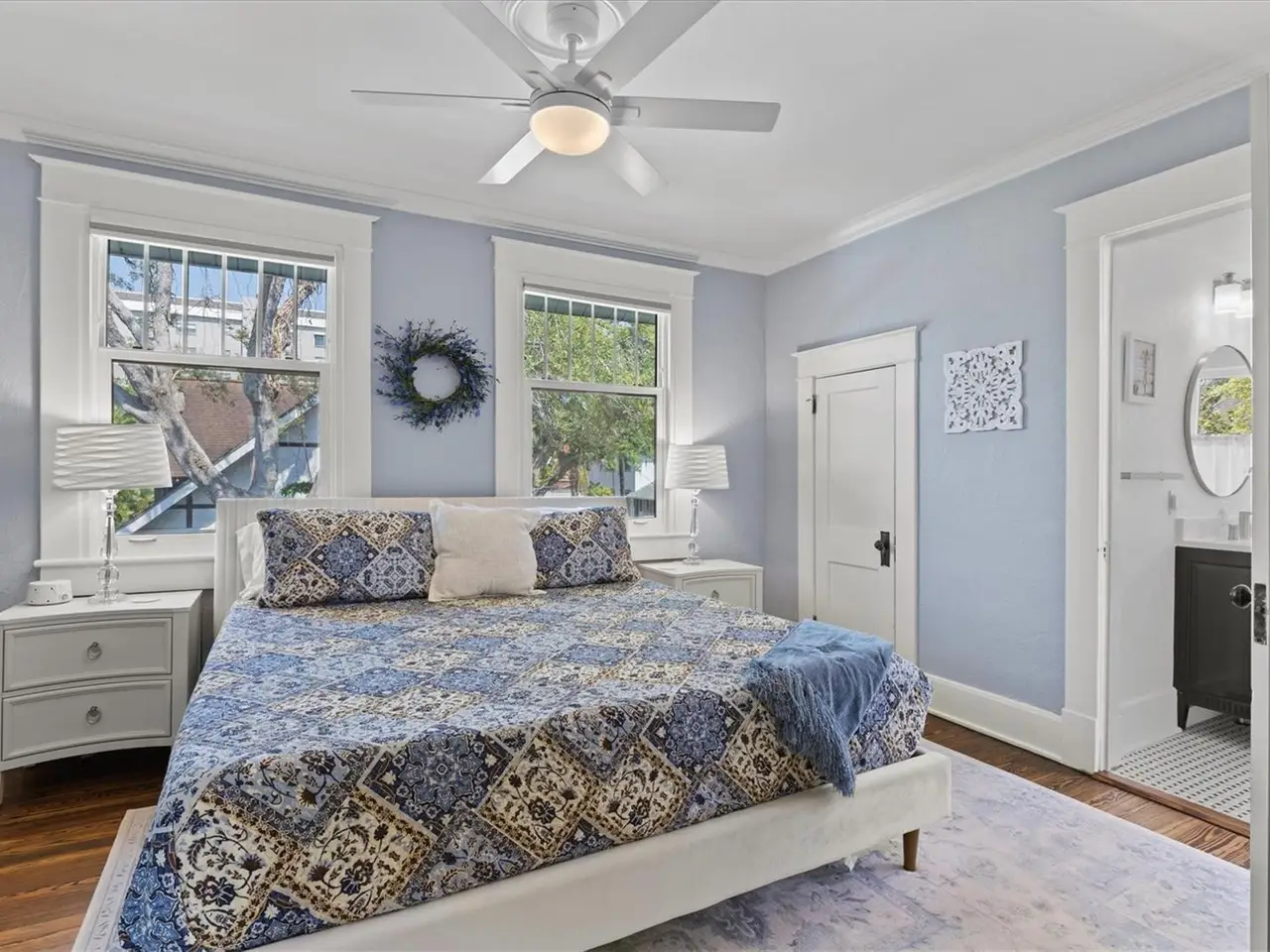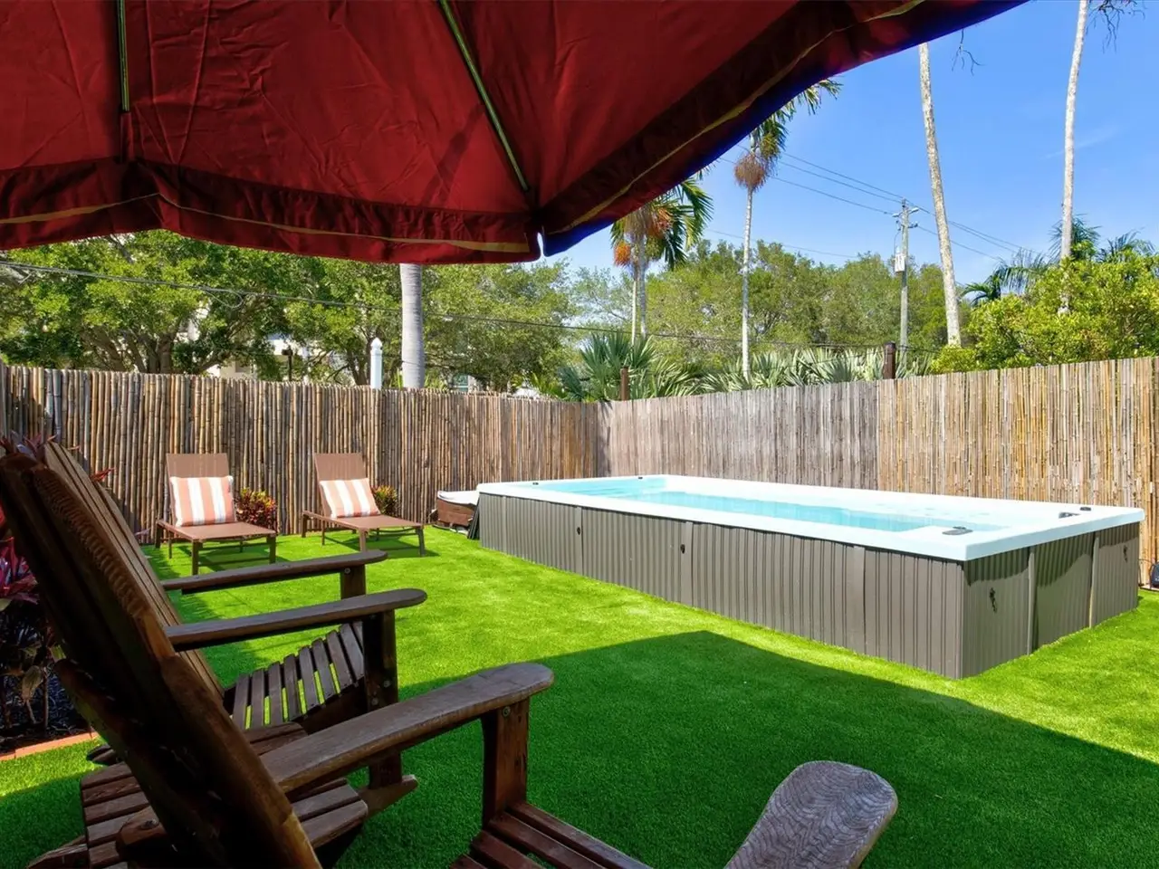 Immerse yourself in the rich history and timeless elegance of this meticulously renovated historic home located in the heart of Point Pleasant in downtown Bradenton. This distinguished two-story, 4-bedroom, 5-bathroom American Four Square home offers a harmonious blend of classic architectural charm and contemporary luxury. Originally built in 1913, the Betts House stands as a testament to Bradenton's storied past, with every detail meticulously preserved and enhanced for modern living. The newly landscaped front yard leads to the inviting, large wrap-around porch evoking a sense of nostalgia, reminiscent of days gone by. The grand living area has the original leaded windows with a fireplace and leads to both the family room and kitchen. The spacious family room has impact windows and a convenient full bath with the stairway leading to the four bedrooms and four additional baths. The remodeled kitchen and dining area is an open and inviting space overlooking the side yard. Crafted with care, the kitchen features impact windows, KraftMaid cabinetry, new LG appliances, a Bosch paneled dishwasher, exquisite butcher block counters, and complemented by an island topped with Dekton Entzo quartz. The large dining area still has the vintage leaded windows and leads to the impressive added butler's pantry that was formerly a side porch. It offers a wine refrigerator, two refrigerated drink drawers, a sink, and additional cabinetry also with Dekton Entzo quart. This area offers a seamless transition between indoor and outdoor entertaining. Once upstairs, you will find three bedrooms with three remodeled ensuite baths and a fourth bedroom serviced by an updated hall bath. The added primary bath has a spacious walk-in shower, dual vanities, and a private water closet. Step outside and discover a private oasis, complete with a composite side deck, rebuilt back porch, and a partially submerged 15'x8'x5' dual swim jet lighted Swim Spa. Practice your putting skills on the professionally installed 4-hole putting green, surrounded by lush artificial turf and expertly landscaped gardens. After a busy day, relax by the gas fire pit or rinse off in the outdoor shower before your resistance swim. Enjoy privacy with new bamboo fencing and landscape lighting, while the addition of string lighting illuminates the side yard for enchanting evenings under the stars. Thoughtful updates include a new roof in 2022, a replacement of the upstairs HVAC unit in 2023, 16 new impact windows, and a complete refinished and staining of wood floors, stairway, and handrails. In addition, the interior has been freshly painted and has new light fixtures and new window treatments throughout. Perfectly situated a very short distance from historic Old Main Street with its charming shops, bars, and restaurants as well as the marina, Manatee River, and the Riverwalk. The Betts House offers unparalleled access to the best of Bradenton's waterfront living. Experience the perfect harmony of history and modern comforts by discovering the timeless allure of this exceptional residence.