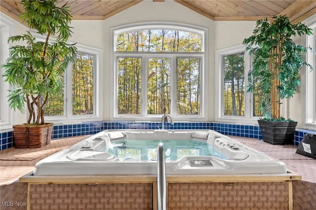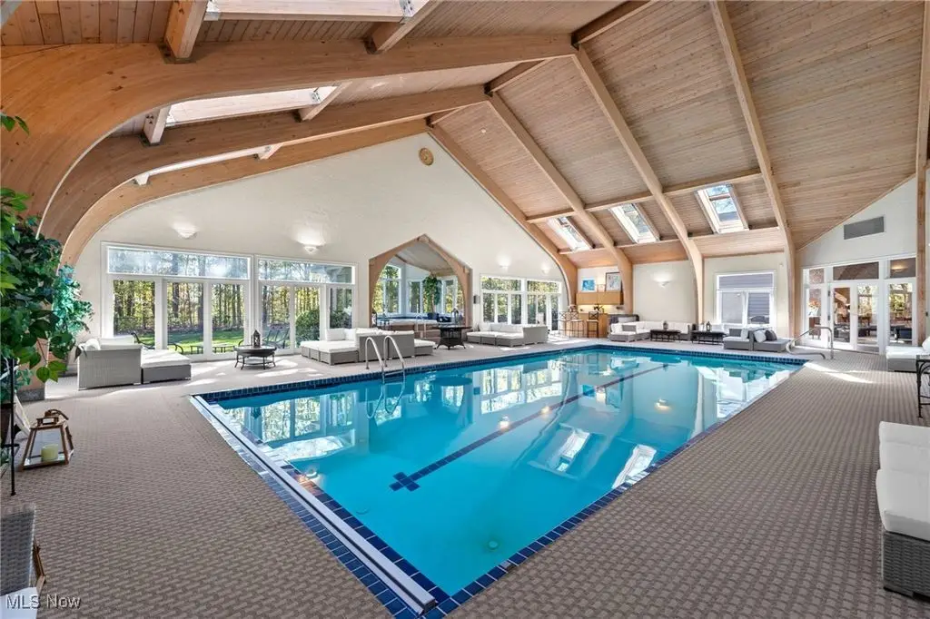 You can feel like you're on vacation 365 days a year in this one of a kind home which was designed for the recreational sports lover! Sited on the most breathtaking wooded lot with a fabulous pond in the front yard, this unique structure is designed for grand scale entertaining and exercising! What makes this special is the one of a kind attached indoor pool complex and the fabulous indoor tennis court/basketball court (and pickleball too!). The living areas in this home are incredible featuring an open floor plan highlighted by a truly spectacular great room area which overlooks both the pool and tennis court. Open to the great room is the fabulous kitchen and dining room area. Here you can entertain in style and ease! There are two huge bedroom suites both with private bathrooms. There is even a finished lower level with additional entertaining and living space. Here you can have a family room, exercise room, hobby room, and more! The unique structure has a 3+ car attached garage, first floor laundry room, and incredible storage throughout. Surrounding the pool area is additional entertainment space, a glass-walled hot tub, and a fabulous built-in wet bar area. There is even an additional full bathroom with a gym-sized sauna. Summers will be enjoyed on the fabulous outdoor patio area which overlooks a wooded wonderland. Truly a one-of-a-kind property!!