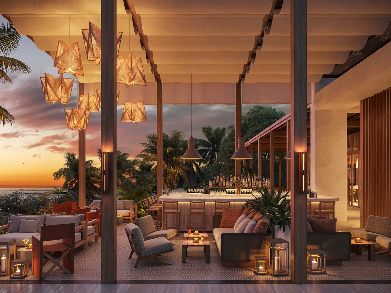 Oceanfront terrace with stunning sunset views