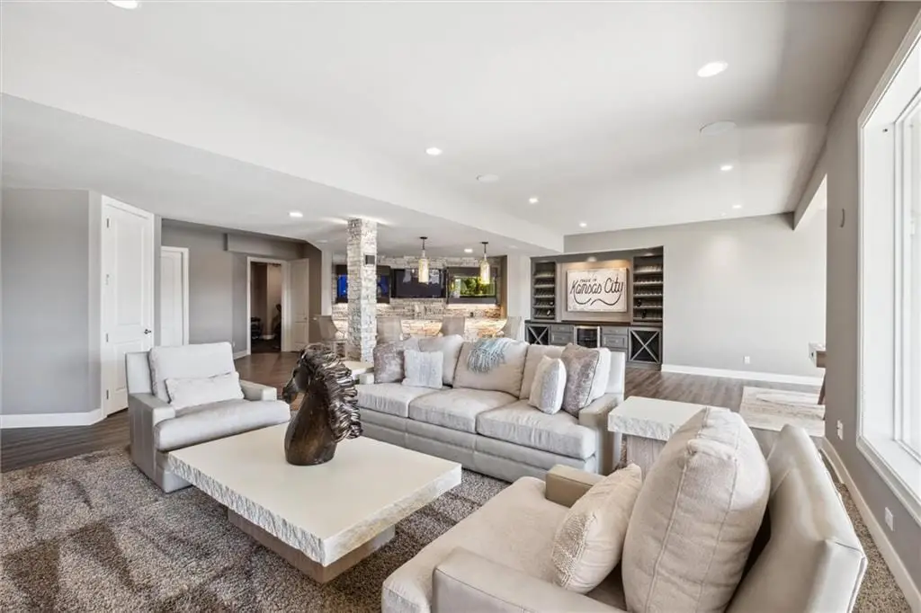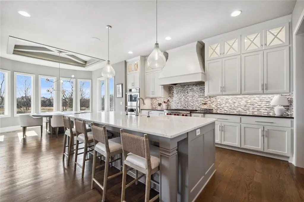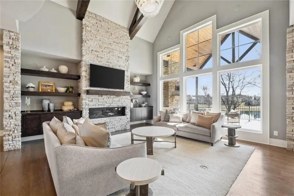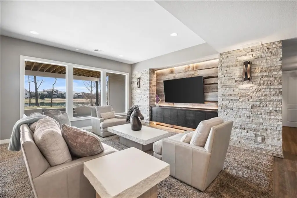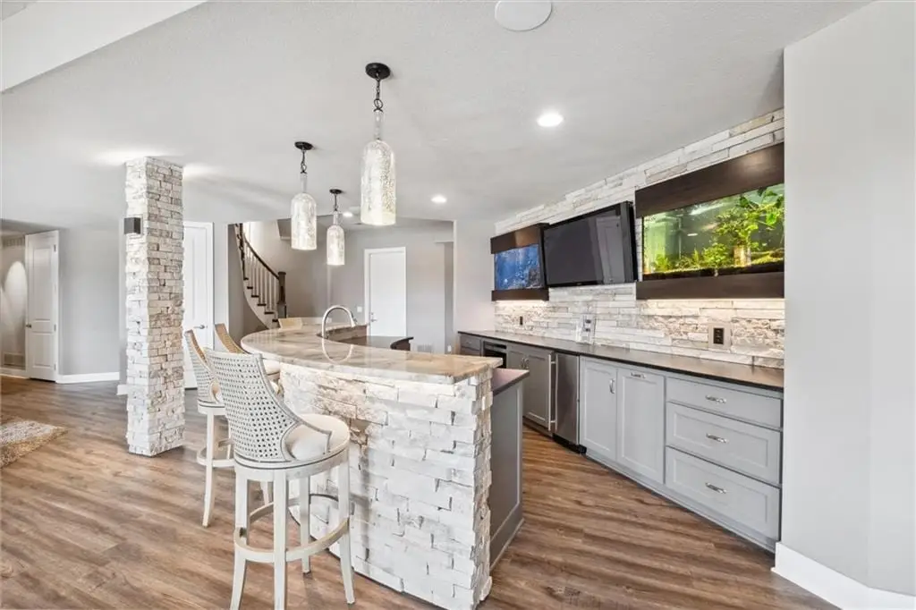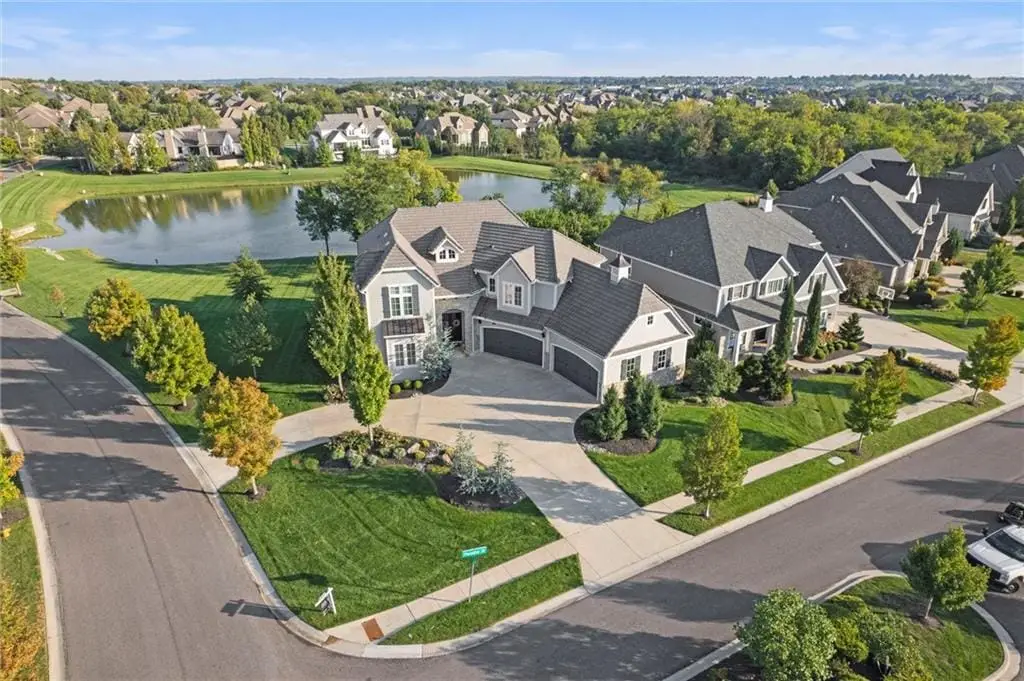 Paradise Found! Where Every Day Feels Like a Private Retreat. Welcome to 16121 Paradise Street, a waterfront sanctuary nestled in the heart of Overland Park's prestigious Mills Farm community. From the moment you step inside, you’re greeted by sweeping views of the tranquil pond and a layout designed for both grand entertaining and intimate moments. This 1.5-story masterpiece offers over 7,000 square feet of curated luxury: A chefs kitchen with double islands and hidden pantry Hearth room with fireplace and water views Main-level primary suite with spa bath Lower-level theater, game room, and full bar -your personal entertainment wing Custom aquariums that double as living art Outdoor living spaces that rival resort settings, complete with fire features and lush landscaping. Whether you're hosting sunset soirees or enjoying quiet mornings with coffee by the water, this home delivers a lifestyle that’s as elevated as its design.
