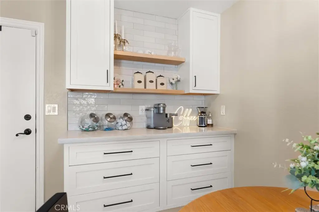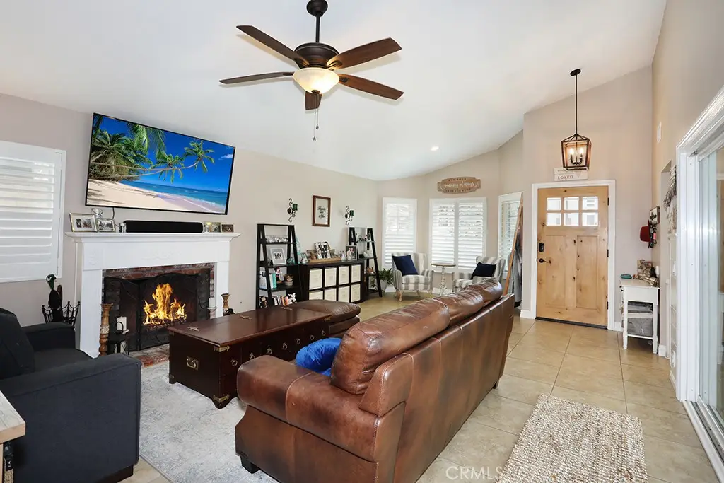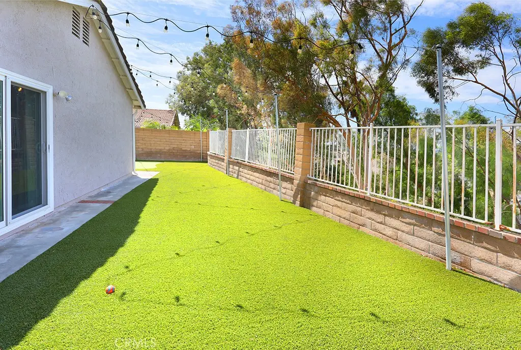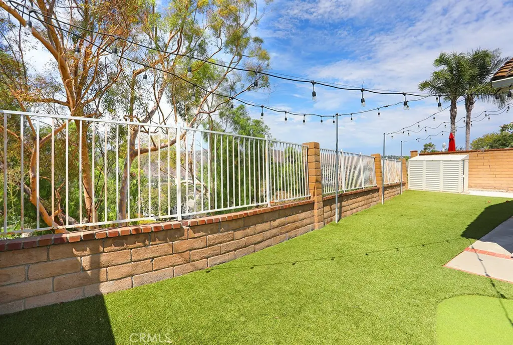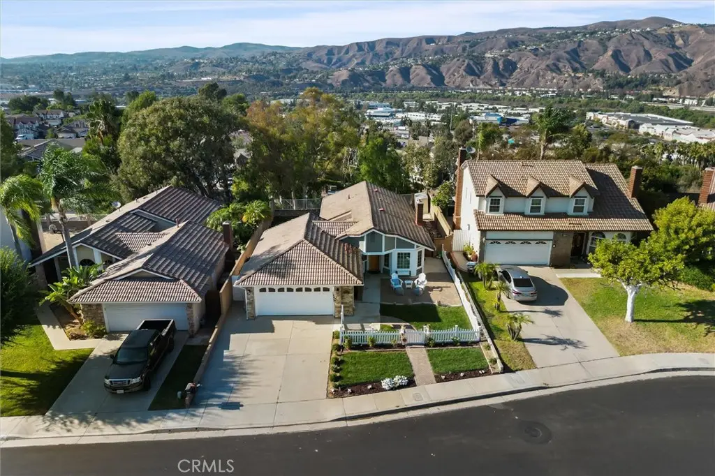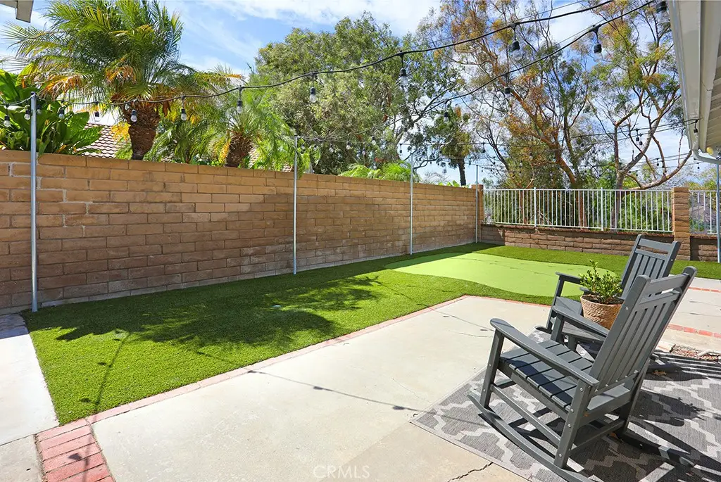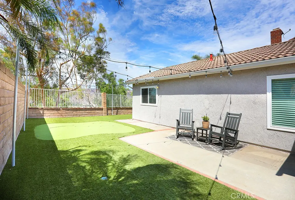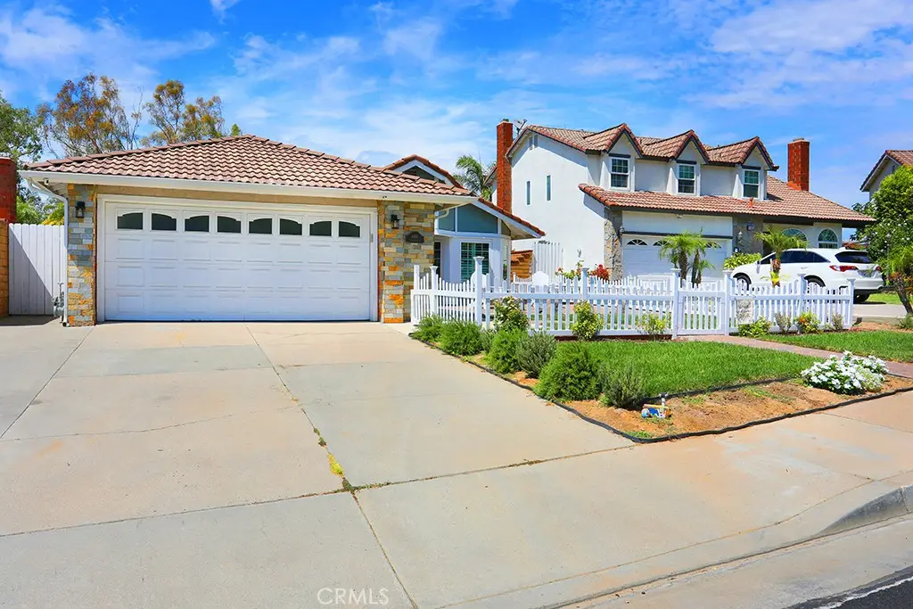 Dreaming of the perfect home with a white picket fence? Here it is! Delivering charm and sweeping city light and mountain VIEWS, this SINGLE STORY 3 bed 2 bath home tucked away in the Bel Air neighborhood of Anaheim Hills offers a a sense of tranquility and vibrant energy all at once. Delightful curb appeal welcomes you up a newly paved and enclosed front patio for extra outdoor entertaining. Inside discover a cozy family room with vaulted ceilings, rich brick fireplace with custom mantel and a picture perfect bay window trimmed in classic plantation shutters. The newly remodeled farmhouse kitchen is accented with crisp white shaker cabinetry, quartz counters, glazed subway tile backsplash, stainless steel appliances, a deep single basin sink, recessed lighting and features a light-filled window box. Head down the halls trimmed in wainscoting to the primary bedroom with vaulted ceilings and impressive views overlooking the rolling hills and direct access to the backyard. The enviable remodeled primary bath features a walk in shower with artful tile work and a custom glass enclosure and dual vanities with granite counters. Two ample sized guest bedrooms share a guest bath with single vanity and granite counter. Outdoor entertain under the covered patio outfitted with electrical lighting or perfect your golf game on the putting green while soaking in the incredible views. The garage features epoxy flooring, upgraded lighting, new cabinets, a custom entertainment center with TV and attic storage with pull down ladder. Other improvements include a newer water heater, HVAC system, gutter system, whole house fan, interior and exterior paint, low maintenance turf, exterior hardie plank concrete siding and new stone facade. This low HOA neighborhood offers convenient access to 91 and 241 freeways, shopping centers, dining, hiking trails, award-winning schools and more!