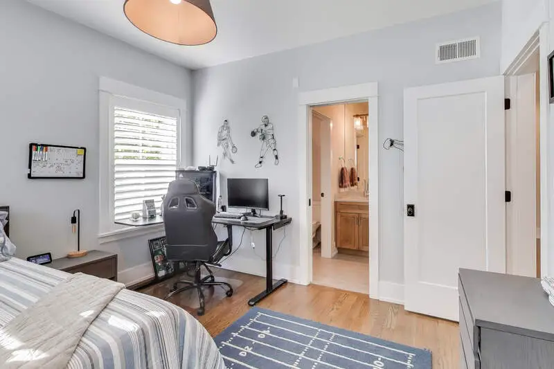 Fabulous 5+ bedroom, 5.1 bath, newer construction home in McKenzie on a great sized lot! Gorgeous home includes designer touches everywhere you look, including built-ins, custom mill work, cabinets & ceiling beams, plus unique light fixtures. The front porch with beautiful blue double doors welcomes you into this home with a dedicated first floor office overlooking the tree lined street. The formal dining room is big enough to feed a crowd. The chef's kitchen is perfectly appointed with top of the line Thermador appliances, gorgeous quartzite island, walk-in pantry and sun-filled breakfast area. You'll love the full size refrigerator and freezer, seperated by countertop space and extra cabinetry. The kitchen is open to the spacious family room, with a wood-burning fireplace with a gas starter and a coffered ceiling. A well-appointed mudroom with built-in cubbies and bench seating provides the perfect drop zone for daily essentials. The first floor also features a sophisticated powder room, plus a laundry room, including additional storage. Gorgeous hardwood floors run throughout the home. On the second floor, the spacious primary suite includes a custom-built closet and a spa-like bath with dual sinks, a separate soaking tub, and a walk-in shower. Three additional bedrooms, one with an ensuite and another full sized laundry area finish the floor. The third floor offers an additional bedroom, full bath, plus a bonus room. The fully finished basement is an entertainer's dream, with a large rec room, wet bar, exercise room, full bath, bedroom and ample storage. Outside, the backyard is perfect for entertaining and play, with a fabulous built in grill, blue stone sitting area and hot tub. Two car detached two-car garage with storage above. Located in the highly sought-after Maple and Gregory streets, walk to everything...school, town, train, library, Whole Foods and more!