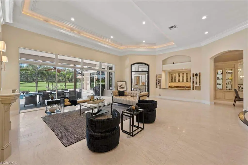 TRANSFERABLE GOLF MEMBERSHIP IMMEDIATELY AVAILABLE with this inviting estate home on almost an acre of land with sunny golf views. Upon entering the grand foyer you are immediately captured by the living room graced with a beautiful fireplace and adjacent formal dining room. The spacious home office offers custom built-ins to display your treasures and the floor plan invites at every turn. You are going to love entertaining in this home with a large kitchen offering stainless steel appliances, a large prep island and separate island with bar stool seating and a butler's pantry for even more storage and prep space. The family room with fireplace and zero corner sliders leading into the lanai is conveniently located just off the kitchen so for optimal entertaining. The three en suite bedrooms are tucked into a wing by themselves for privacy and the luxurious primary suite features a separate flex room surrounded by windows, double walk-in closets and an inviting wet bar/coffee bar. The spa-inspired primary bath features an oversized soaking tub, masterful shower and atmosphere of pure relaxation. The amazing lanai with expansive views of the 9th hole of the lakes course features a pool with waterfall, water slide and integrated spa. There is bathroom access directly from the pool area for maximum convenience. This home also features an enormous casita ready for your choice of uses be it a 5th guest suite, fitness area or media space. It is complete with a full kitchen and bath plus infrared sauna! The home features so many updates and upgrades including a full house generator, surround sound, 1000-gallon LP tank, 4 AC units (3 replaced in 2021), separate golf cart garage off the back of the casita with direct access to the golf course, pocket sliding doors to the lanai, two working chimneys but electric fireplaces now installed, 4 water heaters and gorgeous lighting throughout. Roof new in 2015 is equipped with comprehensive hurricane protection and lightning protection. The last 11 pictures are virtual renderings. Quail West offers an amenity rich lifestyle and is close to sandy gulf beaches, shopping, dining, arts destinations, nature and more.