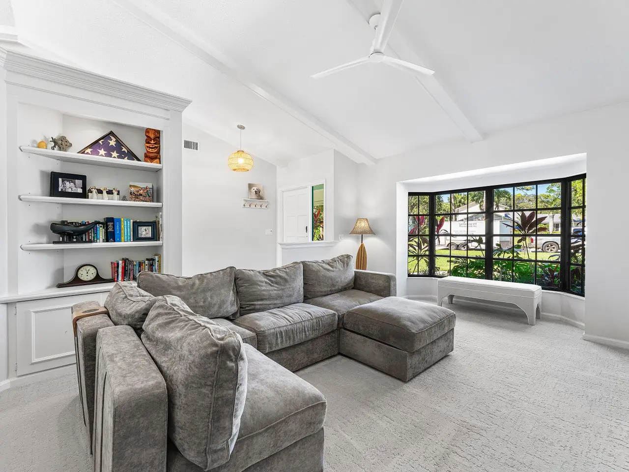 Charming 3-bedroom, 2-bathroom CBS home set on a sprawling half-acre lot with tranquil lake views and southern exposure! This home is surrounded by mature trees that have stood for decades, features an inviting pool, a two-car garage, an open floor plan, and a Springwell water softener and filtration system for pure, clean water throughout. Nestled in the picturesque Whispering Trails community, enveloped by vibrant landscaping. Highlights include an extended driveway, a spacious primary suite, soaring vaulted ceilings with exposed beams, a central vacuum system, dual water heaters, and expansive living and family rooms anchored by a cozy fireplace. The large covered patio overlooks a beautiful inviting pool and serene lake, creating an ideal setting for entertaining. Low HOA fees