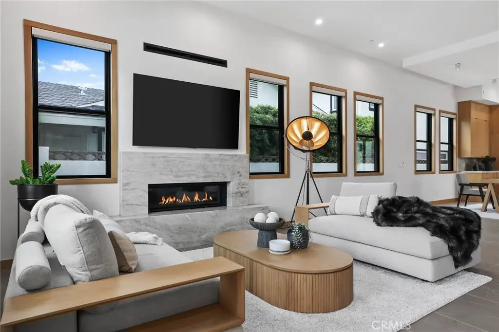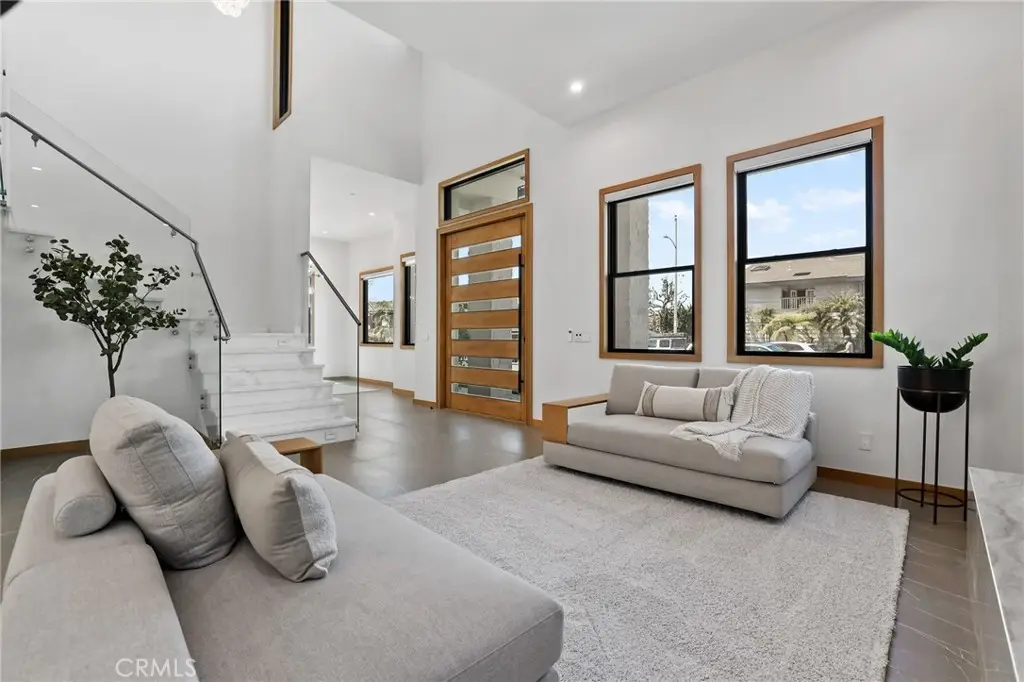 Newly built in 2025, this extraordinary modern residence is ideally located in the prestigious Lake Park neighborhood of Huntington Beach--affectionately known as "Surf City." Just moments from the sand, the iconic pier, Pacific City, and a vibrant selection of restaurants, shops, and events (including the world-famous air show), this home offers the ultimate coastal lifestyle. A dramatic 5' pivot entry door and soaring 12' volume ceilings set the tone for the elegant, light-filled interior. The floor plan features four bedrooms, all ensuite, including two primary suites--one conveniently located on the ground floor and a second upstairs. The upstairs primary suite is a luxurious retreat, showcasing a spa-inspired bathroom with an exquisite Italian marble shower, creating a serene and sophisticated escape. The gourmet kitchen is the heart of the home, equipped with a 6-burner Wolf stove, Sub-Zero refrigeration, a walk-in pantry, and a stunning Taj Mahal quartzite island perfect for gathering and entertaining. Designer finishes abound throughout, including Restoration Hardware lighting, Porcelanosa tile, Toto toilets, and Serena & Lily wallpaper. A striking marble staircase leads to a spacious upstairs family/bonus room. Additional features include dual air conditioners for year-round comfort, an inside laundry room, and a 3-car garage with room for lifts. Blending modern luxury with timeless coastal elegance, this Lake Park residence captures the very best of Surf City living.