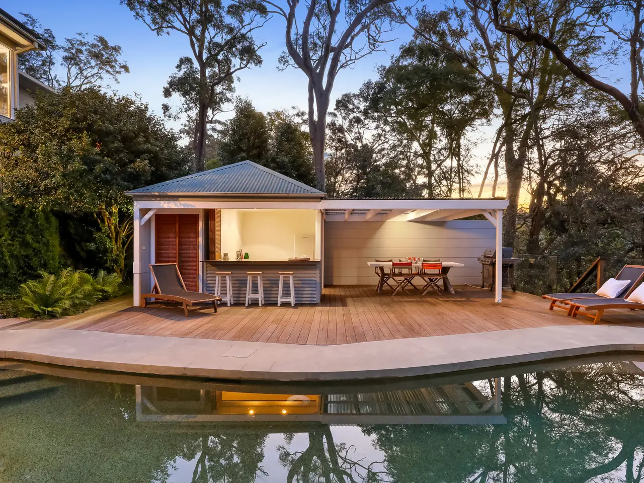 It's the rare find that brings all the essentials of Avalon living together: a smart design, the perfect north aspect, tropical surrounds and a five-minute stroll from the village. A home that actually nails the brief without a single trade off; 60 Palmgrove Road does just that. This is a family retreat where form and function strike just the right balance, where light-drenched interiors spill out to expansive decks, sunlit pool and a cabana that's fully equipped for poolside entertaining. The stylish layout boasts two generous living areas within an open plan design, deluxe kitchen and bathrooms, plus a beautiful, top-floor master suite. As to the location, it's absolutely unbeatable for a growing family – kids can walk just about everywhere – the village, primary school and the beach are all just a few steps from the door. - Perfect north aspect; lush green outlooks over a tropical canopy - Dual-level design with glass-wrapped interiors, open plan layout - Bifolds create an effortless connection with the sheltered deck - Resort-style saltwater pool + cabana with outdoor kitchen and bath - Living zones on both floors plus wood fireplace and oak flooring - Deluxe island kitchen features a suite of Bosch/Smeg appliances - Top floor master retreat with private deck, ensuite and lounge - Double bedrooms fitted with built-in robes and air conditioning - Stylish bathrooms, carport, off street parking - Village, school, buses and beach are all within steps of the door