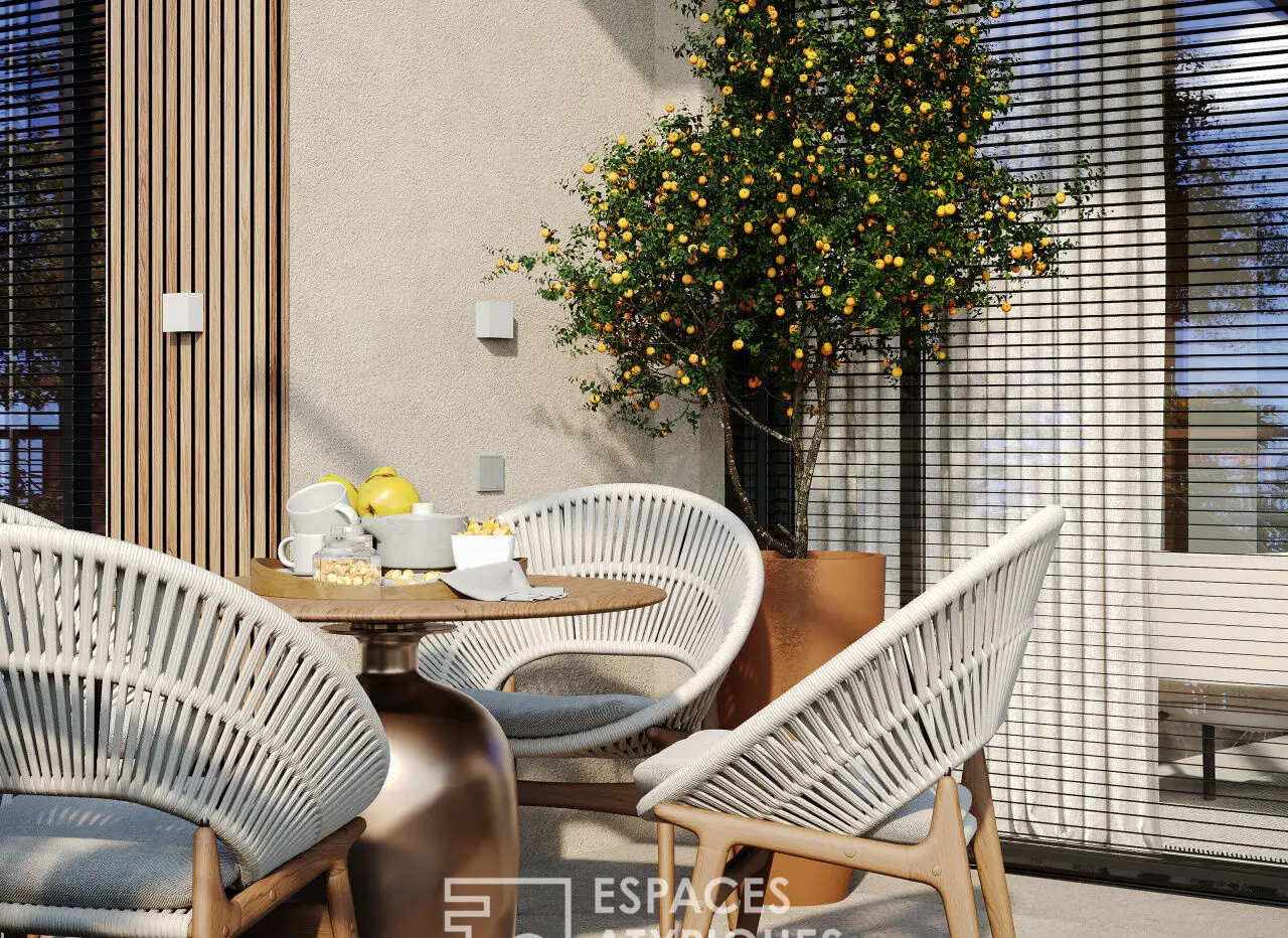 Hikari, an atypical architectural cocoon, a new sensitive and living art of living. We have created a residence which combines traditions and modernity, nature and technology, placing humans and their physical and psychological health at the heart of our concerns. The Sakura collection apartments are distinguished by a vast 35 m2 green terrace. Omnipresent in the home, this sensation of diffuse nature is illustrated in the wall work of Keisuke Noda, Japanese artist and master plasterer, a true living painting of striking beauty, revealing the aesthetic qualities of the earth. Scalable, you can adjust the rooms and furnish them to your liking, or let yourself be seduced by a living space designed for you, turnkey, with its excellent craftsmanship, its Italian interior architecture and its choice of manufacturers. high-end kitchen, storage and bathroom furniture. Household appliances worthy of a professional kitchen, heirs of German know-how in quality and durability, complete the whole. Hikari promotes a peaceful living environment, promoting health and well-being thanks to healthy and renewed air, pure and invigorating water, ideal natural and artificial lighting conditions, heating and cooling solutions inspired by nature. nature, protection against all forms of pollution including electromagnetic. Welcome to Hikari! REF. 6597-D Additional information * 4 rooms * 3 bedrooms * 1 bathroom * 1 bathroom * Floor : 1 * 3 floors in the building * Parking : 1 parking space * 11 co-ownership lots