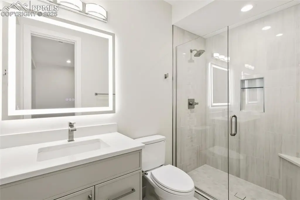 You cannot get a better view, MASSIVE Pikes Peak, Air Force Academy & Front Range Vistas await * Introducing an architectural masterpiece that blends striking Mountain Modern design & state of the art interior finishes * From the moment you drive up, this spectacular residence will not disappoint, curb appeal is a "10" * This luxury residence will captivate your senses & check all boxes * Featuring 4 spacious bedrooms, 4 luxurious baths & sleek oversized 3-car garage with custom, modern doors, perfectly positioned on a gently sloping lot to maximize privacy & sought after Rocky Mountain Views * With bold rooflines, soaring ceilings, expansive walls of glass, every space is flooded with natural light, designed to frame the massive views * The heart of the home is a chef’s dream kitchen featuring high-end "Cafe" appliances, custom cabinetry, oversized center island & the solid surface tops are gorgeous, ideal for both daily living & expert entertaining * Open-concept layout flows seamlessly into the great room featuring a modern gas fireplace with full wall tile accenting, custom folding slider doors invite you to a covered, outdoor living area, creating the perfect indoor-outdoor connection for enjoying Colorado’s four seasons, sunsets & majestic mountains * The primary suite is a true retreat, complete with a spa-inspired bath, oversized walk-in closet & private deck access. 2nd main level bedroom & separate office are a bonus * The lower level offers 10' ceiling heights, flexible living with 2 additional bedrooms including ensuite baths, family room, wet bar & billiard / media spaces with walk-out access to a private patio, yes with huge views * Multiple Decks & Patios * From refined materials to meticulous craftsmanship, every detail has been thoughtfully curated for luxury, comfort and stlish impact * One-of-a-kind modern sanctuary with privacy & views in every direction * Home is BRAND NEW and ready for immediate occupancy, act now - this home is a stunner, WOW!