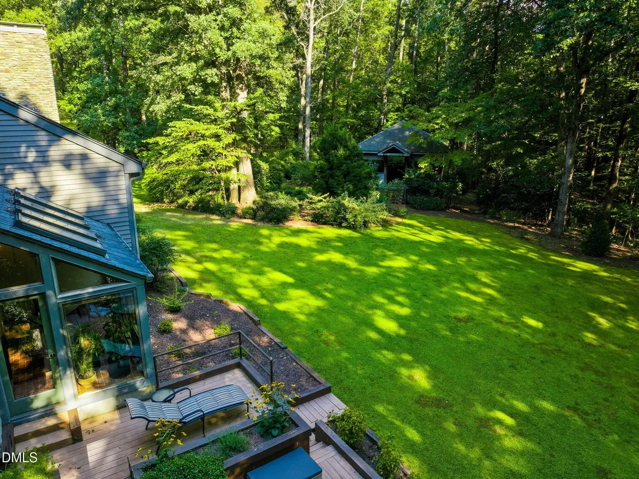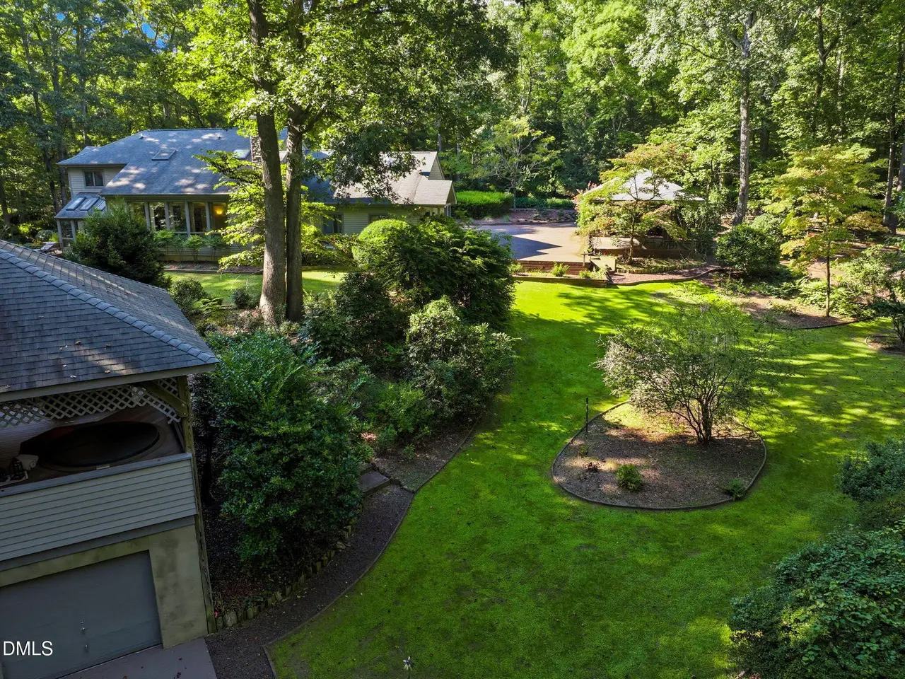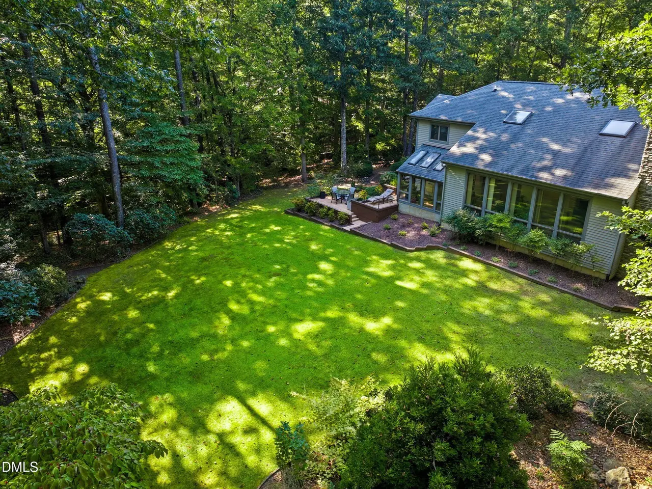 ****Last Chance before Nov 10th, Home coming off the Market, Act Now. Seller unexpectedly relocated to Spain. Dramatic price reduction, priced well below market estimates. One of a kind estate property, recently upgraded with all permits. Act Quickly! $25000 seller credit!**** Newly remodeled contemporary home on 3.39 spectacularly landscaped very private acres in Stoneycreek off New Hope Church Road. Minutes to Durham-Duke, Hillsborough, Chapel Hill-UNC, easy access to 85/40, near numerous nature preserves & walking trails. 3700+ square feet including new guest suite with full bath, kitchenette and private entrance. 10-15+ ft Vaulted Ceilings, spacious living-dining room with fireplace and large picture windows overlooking lush gardens. 3 bedrooms (all with ensuite full baths) plus additional bedroom-sitting room and 4th full bathroom. Large primary suite includes huge walk-through, cedar lined closet, spa-like bathroom, and separate open flex space for gym, office, nursery, etc. Stainless steel appliances in kitchen along with separate pantry and laundry room, 2- car attached garage with built in storage and shelves. Beautiful sunroom and separate screened porch frame large family room - office. Grounds include the 2-car attached garage, separate trellis-lined carport and huge custom screened and covered Gazebo with dining area, hot tub, wet bar and food prep space, with 1-car garage and workshop underneath. Separate irrigation well for watering gardens and lawn. Purposefully designed walking trails around perimeter and beautiful arched bridge across year round bubbling creek. Private entrance gate leads to brick paved circular driveway. Current owner just completed extensive remodel with architectural plans, engineering and full county permits in July 2025 including new guest suite, oak hardwood floors, solid wood doors, upgraded HVAC system, and numerous architectural upgrades. An unexpected move out of the country necessitates sale of dream home. Sale price includes plans for kitchen remodel with all specs, drawings, and pricing, ready to go. Almost impossible to find an estate quality home with this kind of land and privacy so close to everything. Truly a unique opportunity