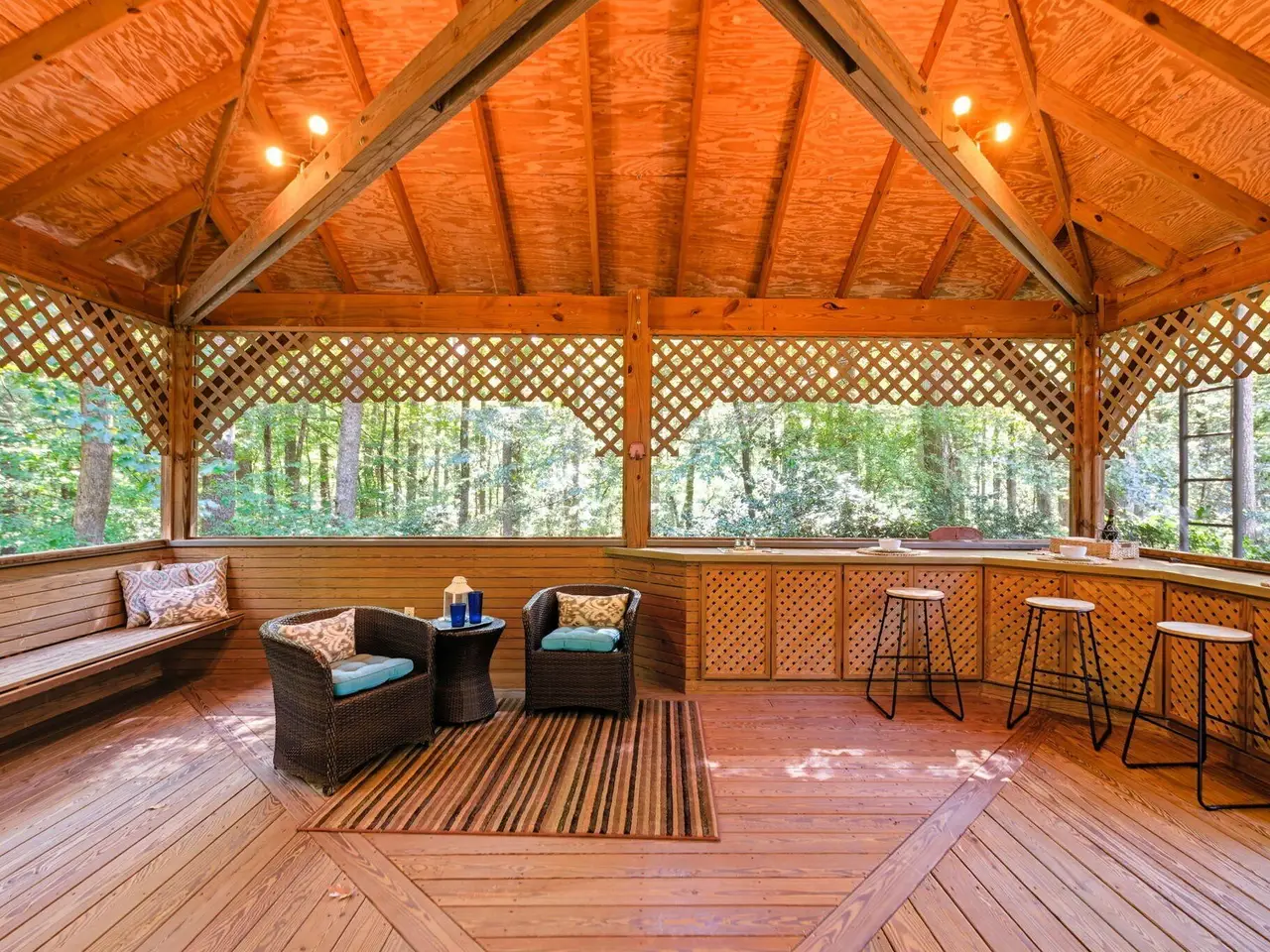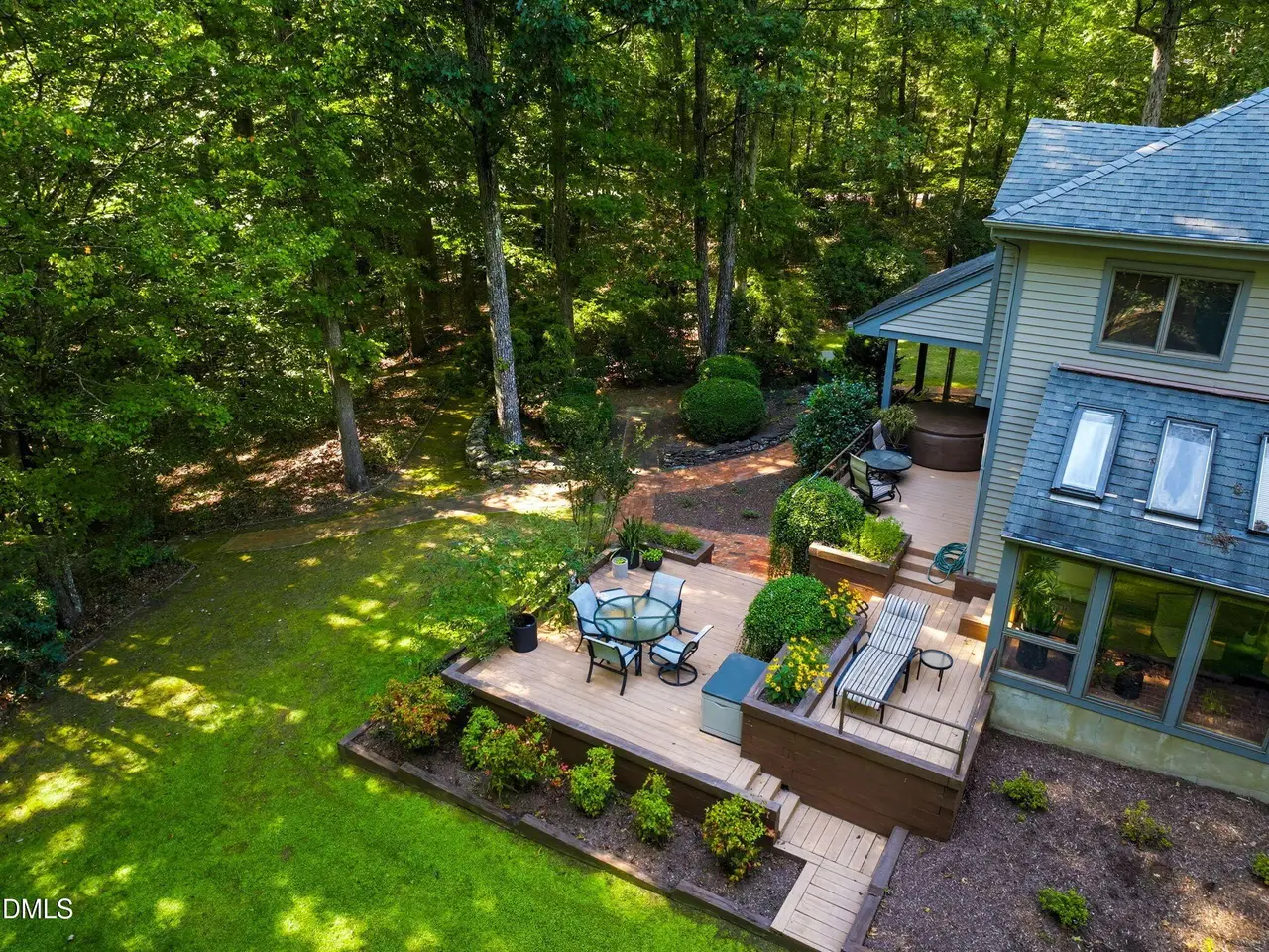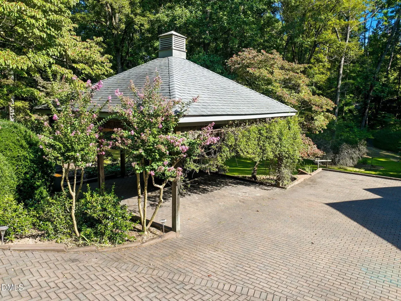 ****Last Chance before Nov 10th, Home coming off the Market, Act Now. Seller unexpectedly relocated to Spain. Dramatic price reduction, priced well below market estimates. One of a kind estate property, recently upgraded with all permits. Act Quickly! $25000 seller credit!**** Newly remodeled contemporary home on 3.39 spectacularly landscaped very private acres in Stoneycreek off New Hope Church Road. Minutes to Durham-Duke, Hillsborough, Chapel Hill-UNC, easy access to 85/40, near numerous nature preserves & walking trails. 3700+ square feet including new guest suite with full bath, kitchenette and private entrance. 10-15+ ft Vaulted Ceilings, spacious living-dining room with fireplace and large picture windows overlooking lush gardens. 3 bedrooms (all with ensuite full baths) plus additional bedroom-sitting room and 4th full bathroom. Large primary suite includes huge walk-through, cedar lined closet, spa-like bathroom, and separate open flex space for gym, office, nursery, etc. Stainless steel appliances in kitchen along with separate pantry and laundry room, 2- car attached garage with built in storage and shelves. Beautiful sunroom and separate screened porch frame large family room - office. Grounds include the 2-car attached garage, separate trellis-lined carport and huge custom screened and covered Gazebo with dining area, hot tub, wet bar and food prep space, with 1-car garage and workshop underneath. Separate irrigation well for watering gardens and lawn. Purposefully designed walking trails around perimeter and beautiful arched bridge across year round bubbling creek. Private entrance gate leads to brick paved circular driveway. Current owner just completed extensive remodel with architectural plans, engineering and full county permits in July 2025 including new guest suite, oak hardwood floors, solid wood doors, upgraded HVAC system, and numerous architectural upgrades. An unexpected move out of the country necessitates sale of dream home. Sale price includes plans for kitchen remodel with all specs, drawings, and pricing, ready to go. Almost impossible to find an estate quality home with this kind of land and privacy so close to everything. Truly a unique opportunity