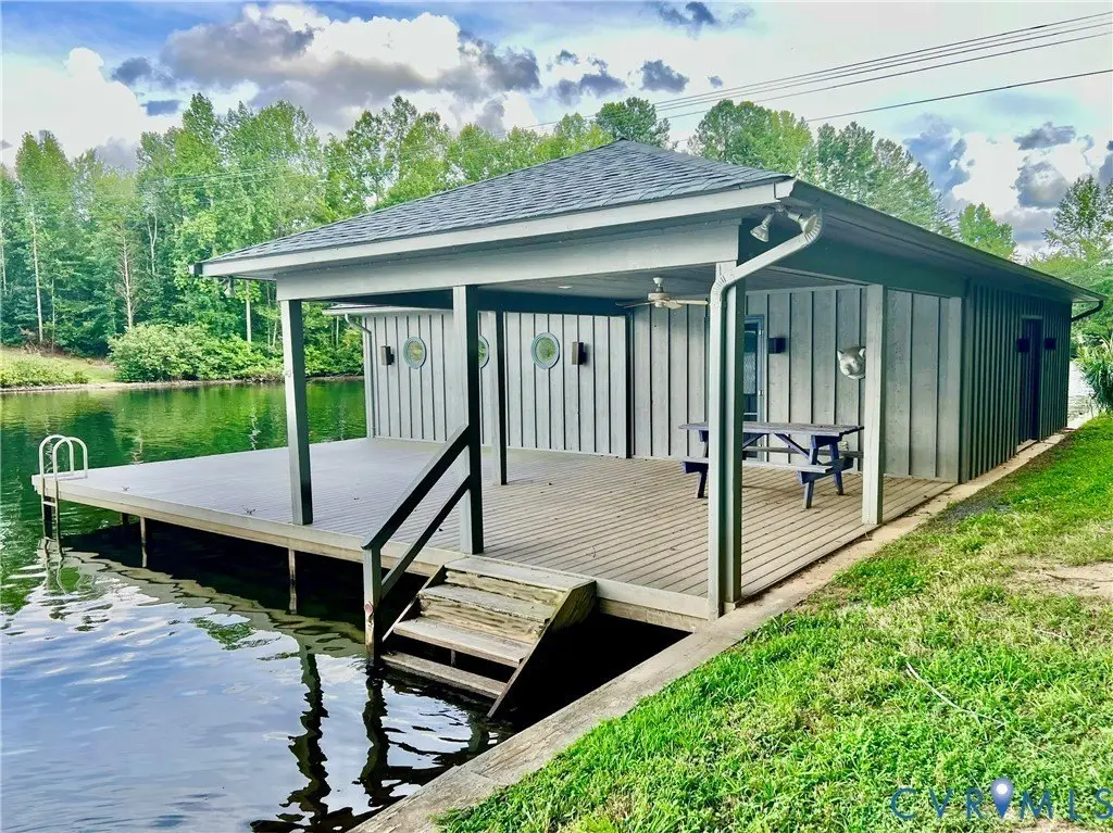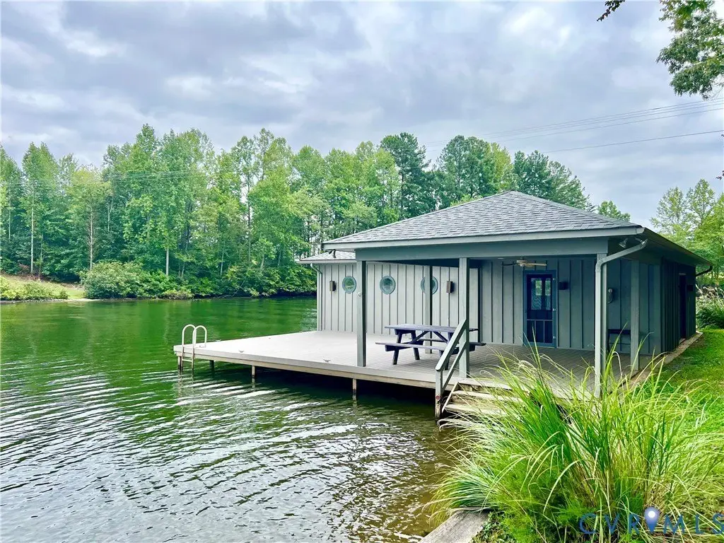 A rare jewel on Lake Anna - 3349 Elk Creek Road is a private peninsula offering over 2,000 feet of meticulously riprapped shoreline. Surrounded by water on three sides, this extraordinary point lot presents an unmatched opportunity to create your dream waterfront estate with unrivaled privacy, sweeping views, and a professionally graded homesite already prepared for your custom build. Enhancing the property's value and immediate enjoyment is a two-slip covered boathouse with Wolf decking, a newer roof, and a generous sunning deck - perfect for relaxing or entertaining on the water. A paved private boat ramp offers effortless lake access for boating, fishing, or watersports. While you design and build your forever home, the charming updated cottage, complete with a newer roof, provides a comfortable place to stay or host guests, allowing you to experience the property's beauty and recreation from day one. From this serene setting, watch bald eagles soar, great blue herons glide along the shore, and enjoy spectacular sunsets over the water. Located just minutes from a country store and within 15 minutes of a full-service grocery store, this is more than a piece of land - it's a legacy property and a rare opportunity to create a private waterfront sanctuary on one of Lake Anna's most coveted points.