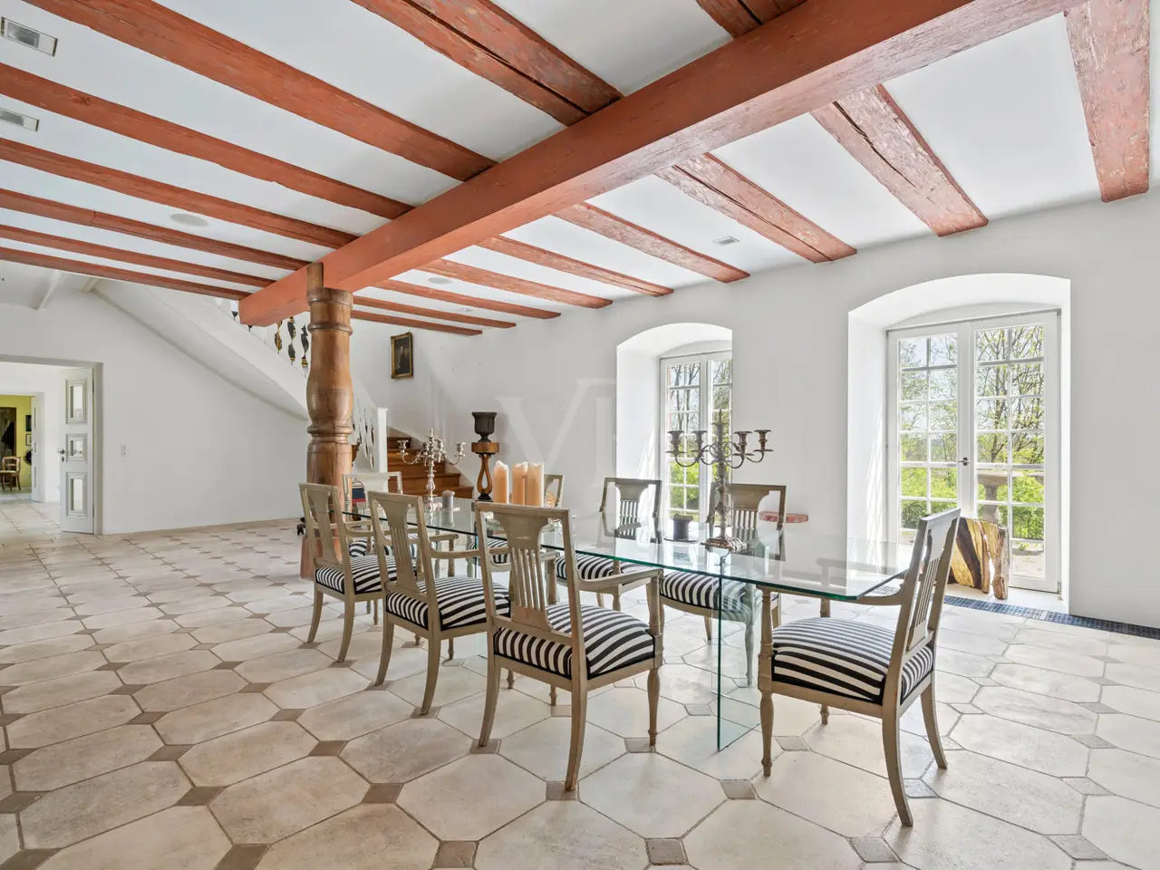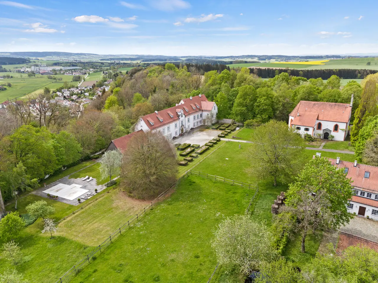 Welcome to an incomparable real estate offer that represents the pinnacle of luxury and exclusivity: a magnificent castle with an adjoining forester's house, surrounded by a variety of high-quality outbuildings and first-class equestrian facilities. The castle and forester's house At the heart of the property is the impressive castle from 1609, which is characterized by its majestic architecture and historical elegance. The main apartment extends over a generous approx. 850 square meters and offers the highest level of living comfort. A private wellness area with sauna, whirlpool and an outdoor pool (approx. 9.5 mx 4.5 m) invite you to relax. The connection to the underground car park, which offers space for 14 vehicles, ensures maximum convenience. In addition to the main apartment, there are two exquisite maisonette apartments in the castle, which offer ideal retreats with a living space of approx. 270 square meters and approx. 174 square meters. Manager's house The manager's house on the property combines functionality and living comfort. It includes an office, a workshop and a spacious apartment with around 140 square meters of living space, which provides stylish accommodation for the property manager. Semi-detached house for horse groomers A charming semi-detached house is available to accommodate the horse grooming staff. The two residential units offer enough space and comfort with around 123 square meters and around 75 square meters. Equestrian facilities A paradise for horse lovers: the extensive stables and paddocks, complemented by a riding hall in tournament dimensions, leave nothing to be desired. Here you can enjoy your passion for equestrian sports to the fullest. Other facilities The property also has various storage buildings and carports that offer additional functionality and storage space. A picturesque chapel from 1616 completes the picture of this unique property and offers a quiet place for reflection. Conclusion This extraordinary castle property offers a unique combination of luxurious living space, first-class equestrian facilities and extensive outbuildings. It is the perfect place for all those who are looking for something special and place the highest value on exclusivity and comfort. Be enchanted by the historic splendor and modern amenities of this property and discover your new home. Contact us today for more information and to arrange a viewing. Position The exclusive castle estate is located in one of the most sought-after regions in Germany, nestled between Stuttgart and Lake Constance. This picturesque area offers an ideal combination of natural idyll and excellent accessibility to urban centers. The region between Ulm and Ravensburg impresses with its scenic diversity and numerous leisure opportunities. Extensive forests, rolling hills and picturesque valleys stretch out here, inviting you to take long walks, hikes and bike tours. The nearby Lake Constance offers a wide range of water sports activities such as sailing, swimming and boat trips, while in winter the Swabian Alb and the Allgäu offer excellent conditions for winter sports enthusiasts. Golf lovers will get their money's worth in nearby Bad Waldsee. The renowned golf course offers challenging fairways and greens amidst a breathtaking natural backdrop. Here you can perfect your golf skills while enjoying the peace and beauty of the surroundings. Excellent transport links and helipad The property benefits from excellent transport links. The A7 and A8 motorways provide fast connections to Stuttgart, Ulm and towards Lake Constance. There is also a freely usable helipad right next to the property. This exclusive advantage ensures a quick and convenient arrival by helicopter, whether for private or business purposes. The region also has a lot to offer in terms of culture and cuisine: numerous historic towns such as Ulm and Ravensburg invite you to explore. Stroll through medieval alleys, visit museums and galleries or enjoy regional specialties in the numerous first-class restaurants and traditional inns. The location of this castle estate combines the best of nature, leisure and luxury. Whether you appreciate the tranquility of the rural surroundings, take advantage of the numerous leisure opportunities or make use of the excellent connections and the exclusive helipad - here you will find the perfect balance between relaxation and activity. Discover the diversity and quality of life of this unique region and make this exceptional property your new home. Furnishing Unique castle complex consisting of: 1) Main apartment in the castle - built around 1609; renovated in 1999 with representative living and dining rooms, seven bedrooms, three bathrooms (approx. 850 m²) Highlights: - Wellness area and outdoor pool approx. 9.5 mx 4.5 m - Passenger elevator - Dumbwaiter - Open-plan kitchen-living room - Three fireplaces - Direct access to the underground car park Forsthaus (side wing of the castle) 2) Maisonette apartment on the ground floor / ground floor - built around 1620; renovated in 1999 with representative living and dining rooms, three bedrooms, two bathrooms (approx. 270 m²) Highlights: - High-quality fitted kitchen - Additional kitchenette - Two fireplaces - Own vaulted cellar - Direct access to the underground car park 3) Maisonette apartment on the first and second top floor - built around 1620; Renovation in 1999 with representative living and dining rooms, two bedrooms, two bathrooms (approx. 174 m²) Highlights: - high-quality fitted kitchen - open gallery in the second attic floor - fireplace Manager's house office, workshop, garages, social rooms (approx. 137 m²) 4) Manager's maisonette on the first floor / top floor - built approx. 1960; Renovation in 1999 with high-quality and bright living and dining rooms, 2 bedrooms, 2 bathrooms (approx. 140 m²) - fireplace - fitted kitchen Horse groomer's semi-detached house 5) Semi-detached house (WE 1) - built around 1999 with high-quality