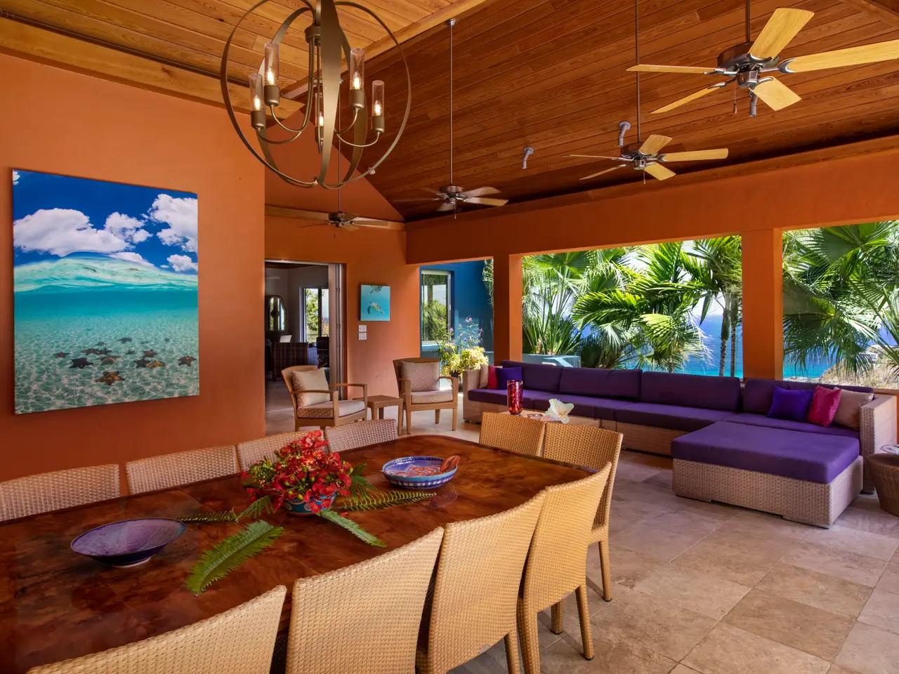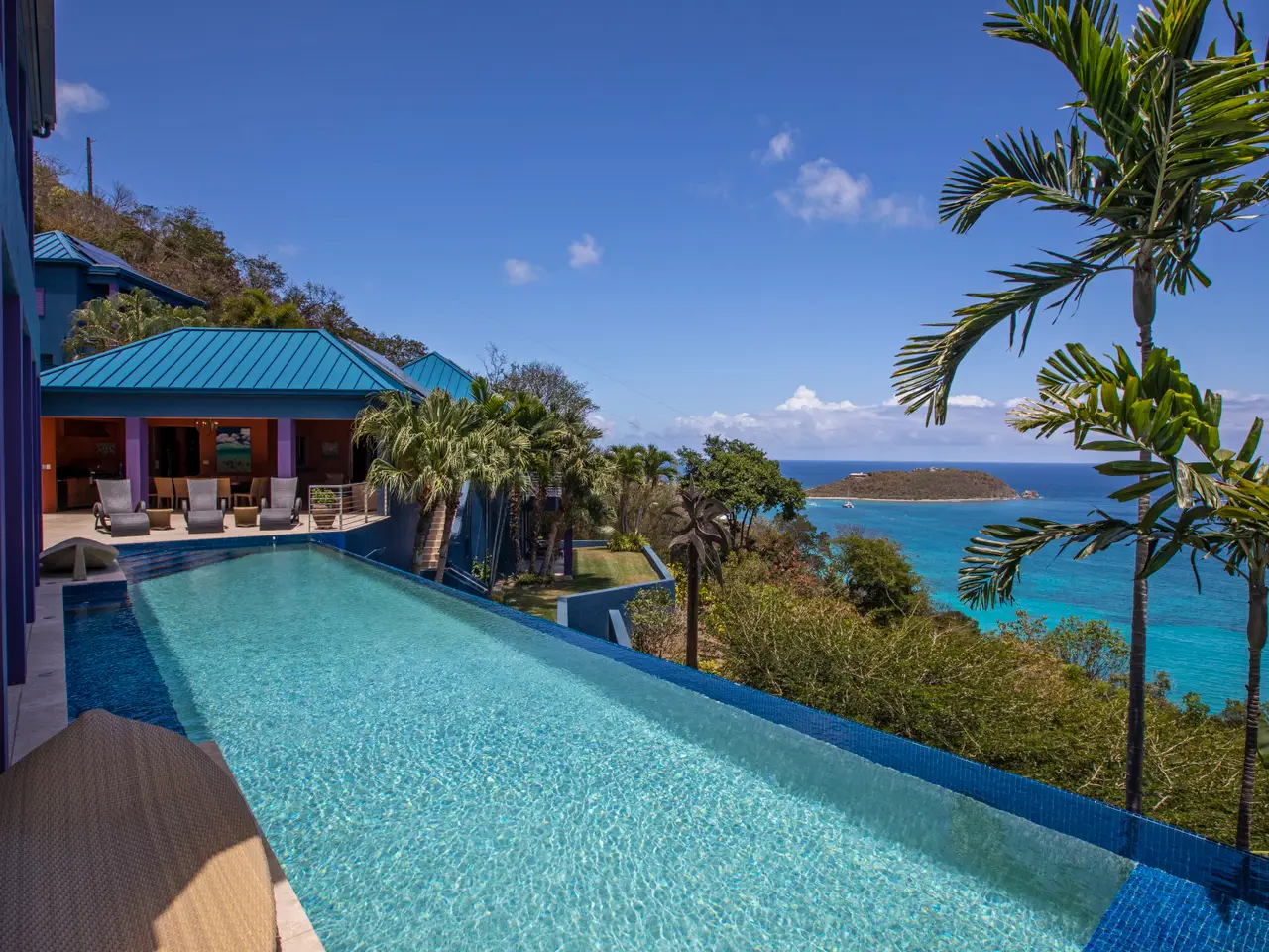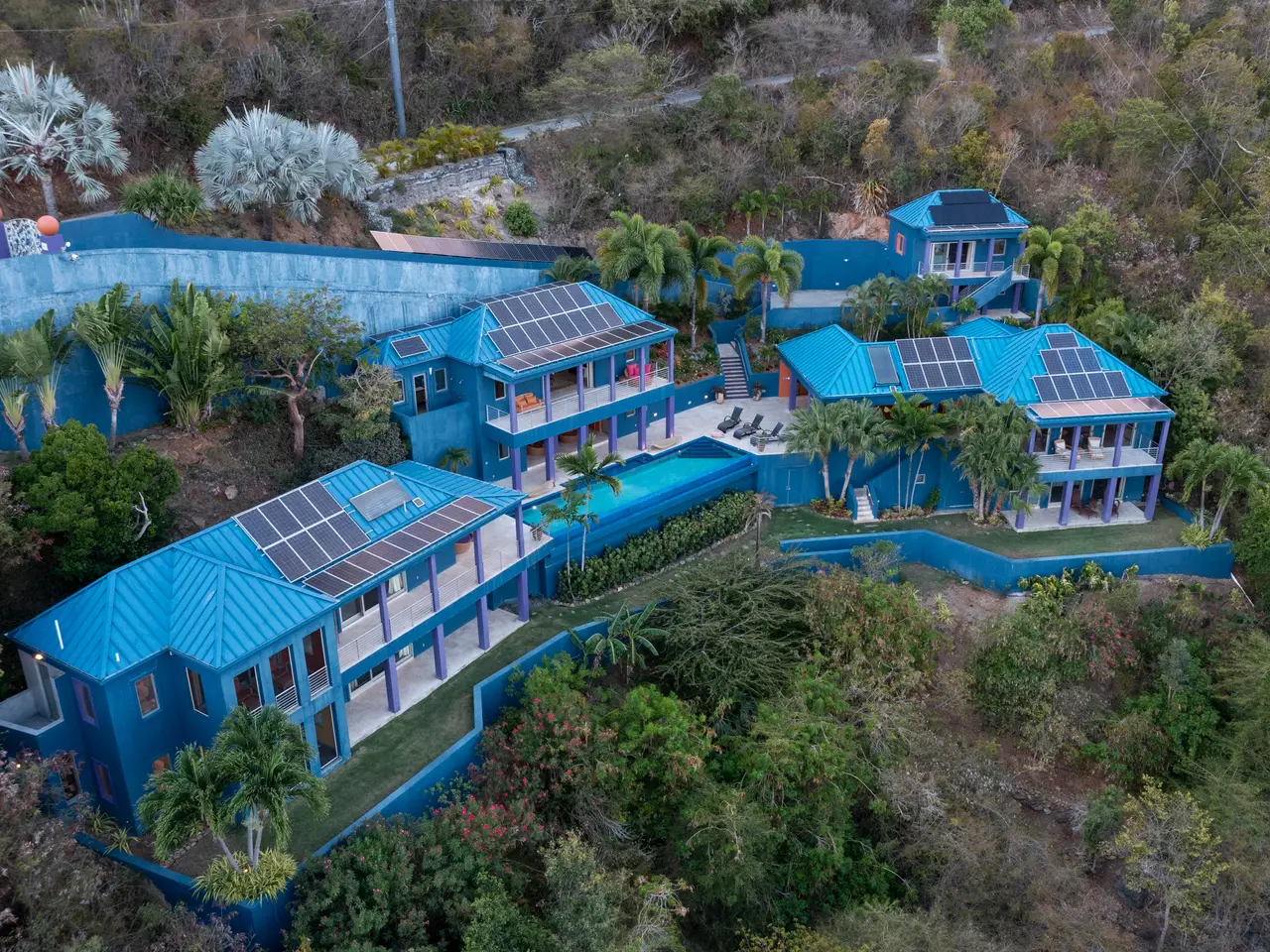 Picturesque views from every room is what you'll find at this magnificent home. Situated on an acre, the expansive property is a secluded oasis, while still holding the convenience of being in close proximity to Cruz Bay. Driving through the gates feels as though you are entering another world. Pocket doors throughout the house make for seamless indoor-outdoor living. While the interior amenities are impressive, the exterior amenities are unmatched. A 48-foot infinity pool, a pool lanai, outdoor kitchen, and covered dining and living area are just the beginning of the outdoor amenities. Seven immaculate bedroom suites make this home a versatile property, holding the capability of being an income producing rental property or a palatial family compound.