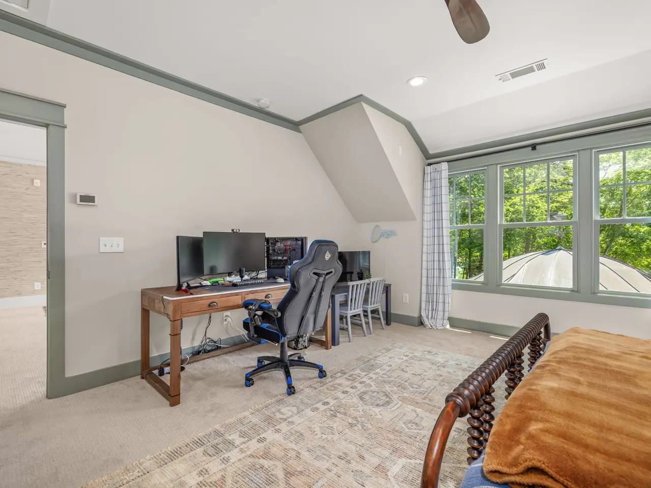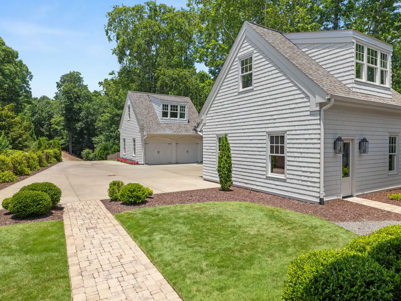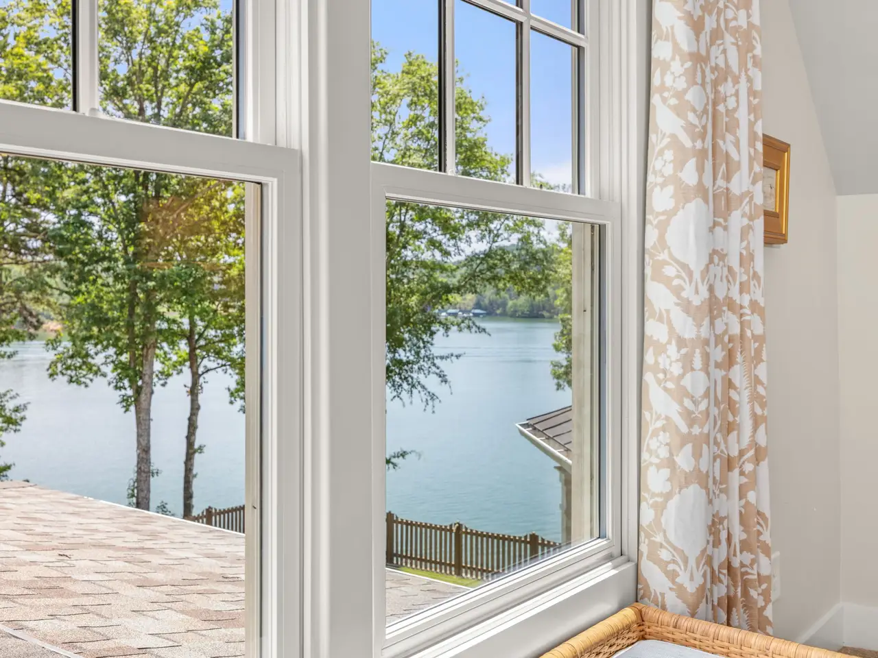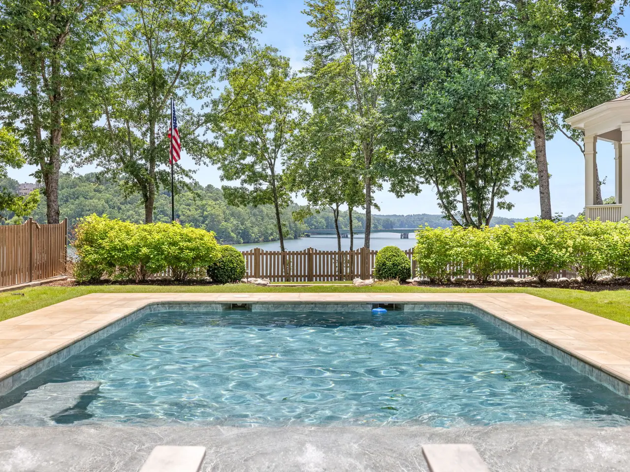 Southern coastal charm meets Lake Lanier luxury in this exceptional custom-designed estate, perfectly positioned on a private point lot surrounded by water and breathtaking lake views. Tucked away behind private gates and down a long, secluded driveway, this stunning home offers the ultimate in resort-style living, just minutes from the Chattahoochee Country Club and its private marina. Designed by renowned architect Stephen Fuller, this four-bedroom, four and a half bath residence blends timeless architecture with modern luxury. The home features a hardy shake and river rock exterior, beautifully landscaped shoreline with river rock detailing, and year-round views from nearly every room. A heated pool, level fenced backyard, covered back porch, and two detached two-car garages complete the outdoor oasis. Inside, the open-concept layout is filled with natural light and framed by walls of glass, maximizing the lake views. The two-story foyer opens into a vaulted great room with a stone fireplace and an elegant dining space. The gourmet kitchen is a chef's dream, with quartzite countertops, a large island, custom cabinetry, stainless steel appliances including a six-burner gas range, and a spacious prep pantry that doubles as a bar and entertaining space. The main-level primary suite is a serene retreat with views of the pool and lake, and a spa-inspired bath featuring a soaking tub, dual vanities, custom shower, and two walk-in closets. A second main-level bedroom and full bath offer flexibility for guests or a home office. Upstairs, a central gathering area leads to two generous en-suite bedrooms with custom closets. Additional highlights include a welcoming office area off the kitchen, a large laundry room, and an unfinished daylight terrace level with approximately 2168 square feet ready to be customized. Modern conveniences abound, with a whole-house generator, natural gas for cooking, fireplaces, heating, and pool, plus an irrigation system, professional landscaping, and outdoor lighting. This home is a rare opportunity to enjoy the best of lakefront living, thoughtfully designed for both everyday comfort and exceptional entertaining.