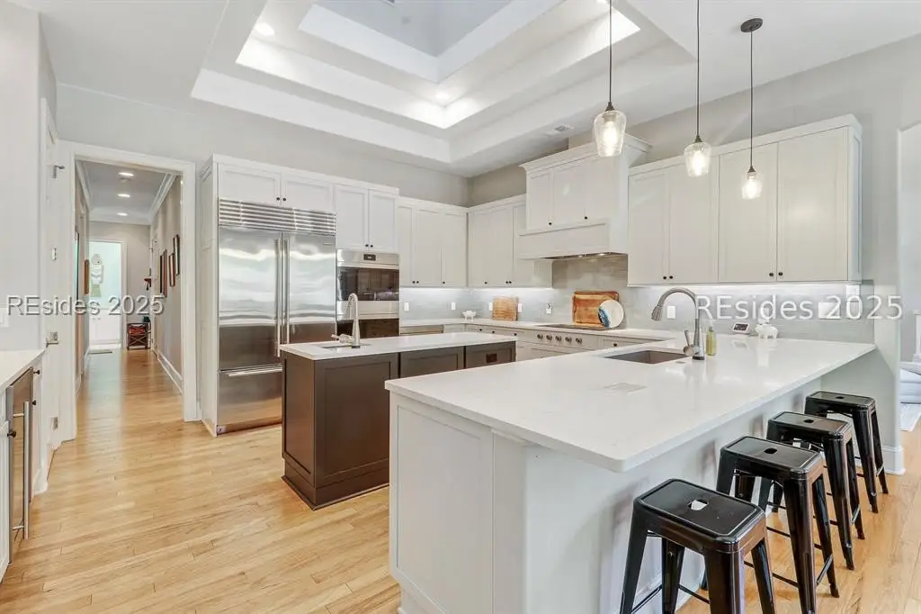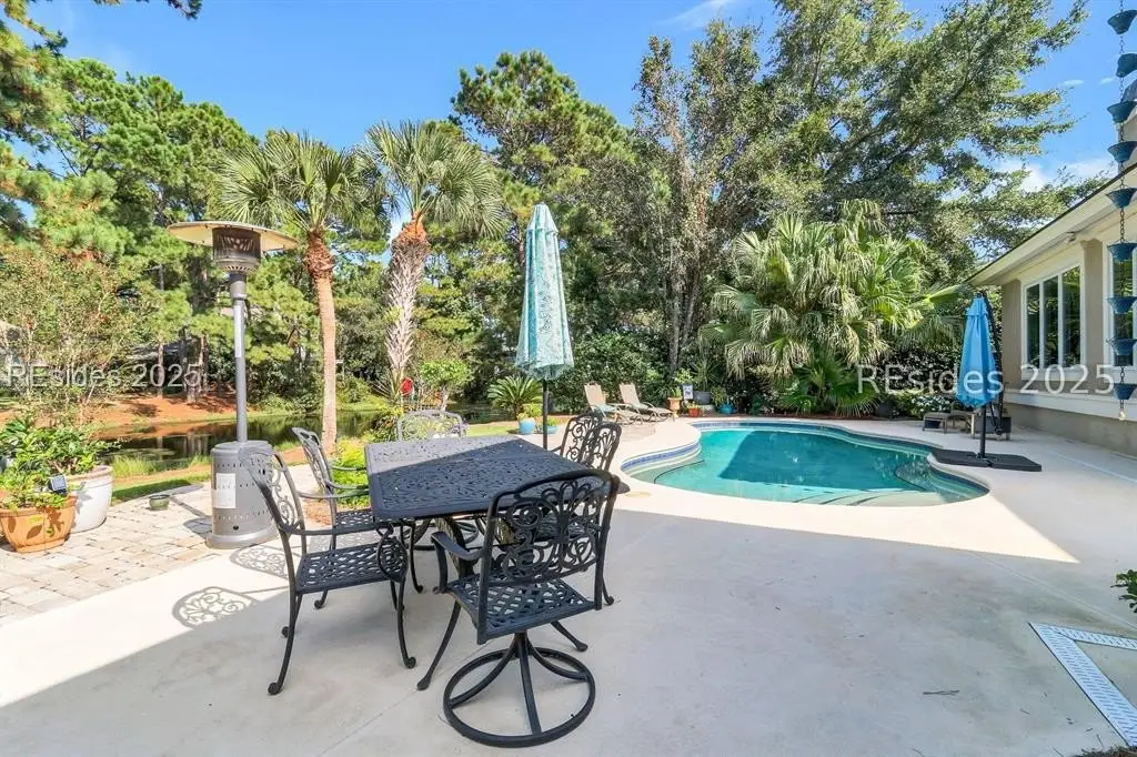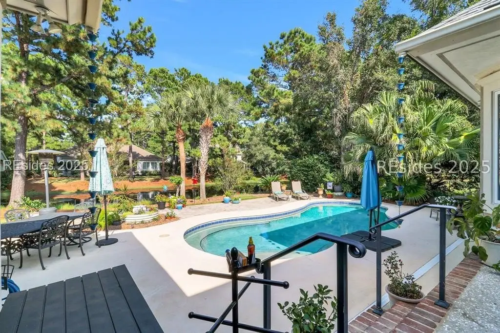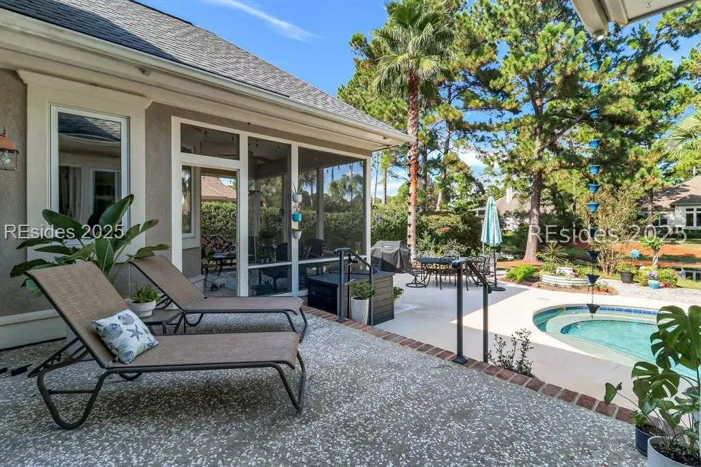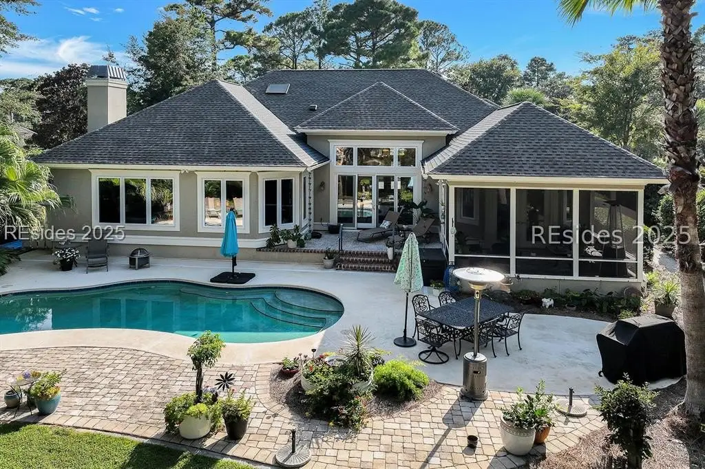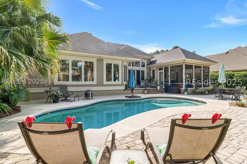 Nestled in the peaceful back section of Palmetto Hall, this exquisite 4-bedroom, 4.5-bathroom home offers the perfect blend of luxury and comfort. Situated on a tranquil lagoon, the property boasts a serene setting that is both private and picturesque. Inside, the home features a spacious and inviting layout with a large dining room, a formal living room, and a Main Bedroom suite complete with a private office for added convenience.With thoughtful bedroom separation and an open floor plan, the heart of the home is its stunning, completely renovated kitchen. Equipped with top-of-the-line Subzero and Wolf appliances, the kitchen seamlessly flows into the eat-in kitchen and family room, making it ideal for both everyday living and entertaining. The family room opens to a lovely outdoor patio, pool deck, and pool perfect for enjoying the natural surroundings and Hilton Heads mild climate.Additional updates include a new roof and one newly installed HVAC system for added peace of mind.