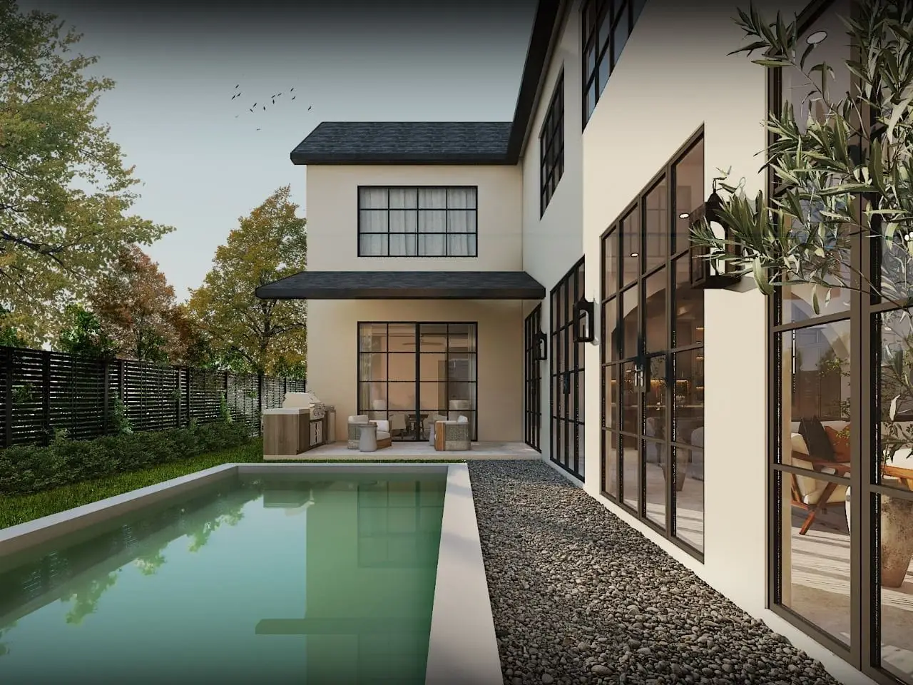 This custom home draws inspiration from the timeless linear homes of Mexico, where indoor and outdoor living blend seamlessly into one experience. Centered around a private courtyard, the design creates a peaceful sanctuary that celebrates light, air, and connection to nature. Floor-to-ceiling windows and sliding glass doors invite the outdoors in, while clean lines and natural textures ground the space in quiet elegance. This one-of-a-kind home has 4-bedrooms, 4.5 baths, which includes a media room, game loft, pool, 2 laundry rooms, dog shower, and 2 kitchens. Step inside to 12-foot ceilings on the main level, anchored by a stunning 24-foot-tall living room featuring a sleek gas fireplace and expansive Pella windows that bathe the home in natural light. The open-concept design flows seamlessly into a state-of-the-art kitchen, highlighted by a 60-inch Sub-Zero refrigerator, Wolf appliances, and a rich walnut island. A separate prep kitchen with a 48-inch Sub-Zero fridge and double ovens provides extra culinary convenience. Entertain in style with a hidden door leading to a climate-controlled space ideal for a wet bar, wine room, or cigar humidor. The luxurious first-floor primary suite is a private retreat, with a spa-inspired en-suite bathroom and a massive 10x17-foot walk-in closet with a center island. A secondary bedroom with ensuite bath downstairs offers flexibility as a secondary office or fitness room. Outdoors, enjoy resort-style living with a Pentair 20x12 heated pool featuring a sunning ledge, all visible from floor-to-ceiling windows. A covered patio with built-in grill completes the perfect entertainment space. Upstairs, you'll find a spacious loft and game area, a media room equipped with a golf simulator, a secondary primary suite, additional bedroom, and a second laundry room for added convenience. 2107 Madera is more than a home it's a retreat that honors heritage, modernity, and the beauty of living in harmony with your surroundings.