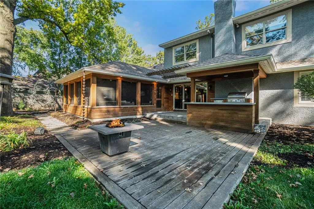 Discover this beautiful, spacious 5-bedroom, 4.5 bath home in the coveted Sagamore Hills neighborhood of Mission Hills, a true must-see. Nestled on a half-acre lot, it offers exceptional living and entertaining spaces inside and out. The main level features a freshly painted interior, hardwood floors and an expansive, open floor plan ideal for gatherings and daily living. The kitchen and great room feature sleek, custom Italian Pedini cabinets, providing incredible storage and a contemporary style. Sliding doors seamlessly connect to the deck and screened-in porch plus features like the fireplace, custom design elements and designated office space leave nothing else to want. The primary suite is conveniently located on the main level, offering a true private retreat and plenty of space for a sitting area or reading nook. The en-suite bath boasts a walk-in closet, an oversized soaking tub, an expansive double sink vanity, and a walk-in shower. Upstairs, you’ll find three additional generously sized bedrooms and two full baths - one of the bedrooms features its own private en-suite. You'll love the walk-in closets. Laundry facilities are thoughtfully located on the main level and lower level for added convenience. The lower level is designed for relaxation and entertainment, boasting an expansive rec room with fireplace, theater room, full wet bar, and wine room. A fifth bedroom and fourth bathroom are located on the opposite side of the lower level, providing a private guest suite or home office option. Step outside to a backyard oasis: a professionally designed screened-in porch and a fully equipped outdoor kitchen create the perfect setting for spring, summer, and fall evenings with family and friends. The sleek style and exceptional space make this Mission Hills stunner both functional and beautiful!