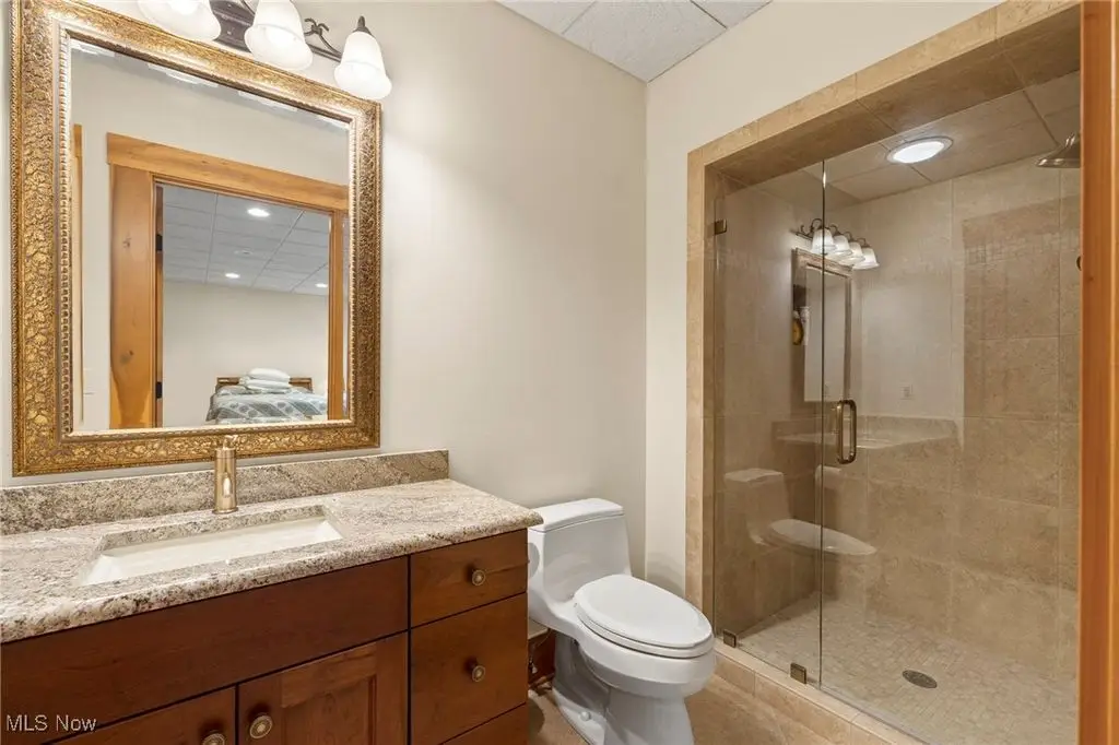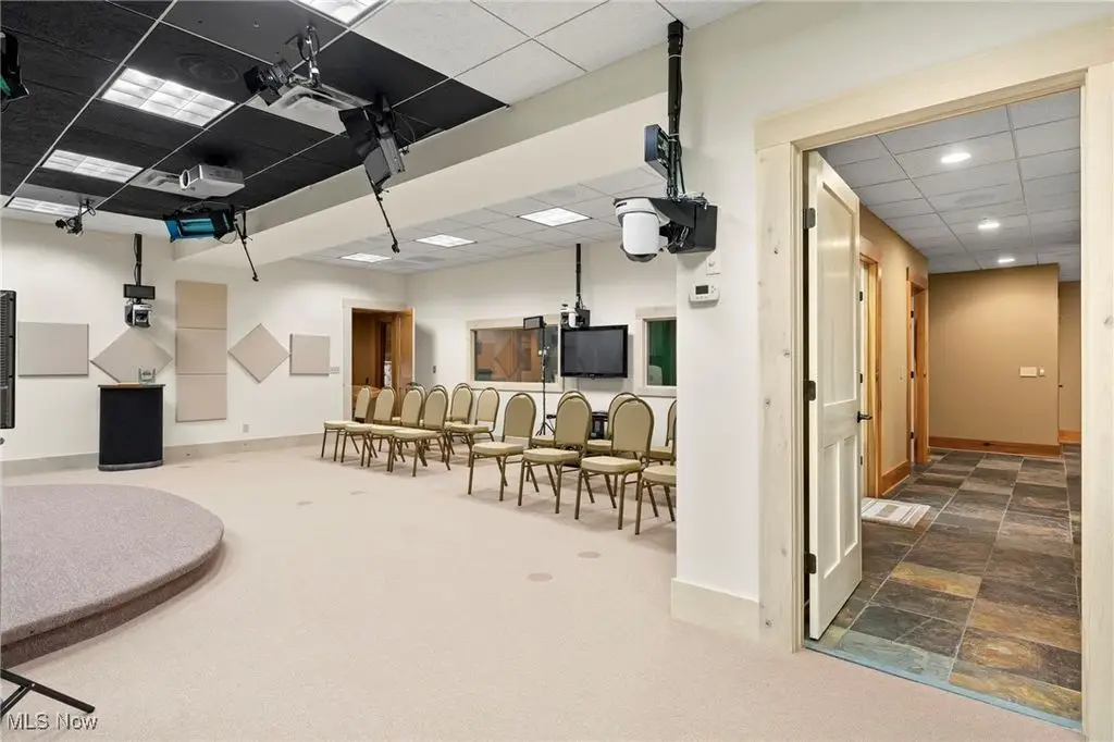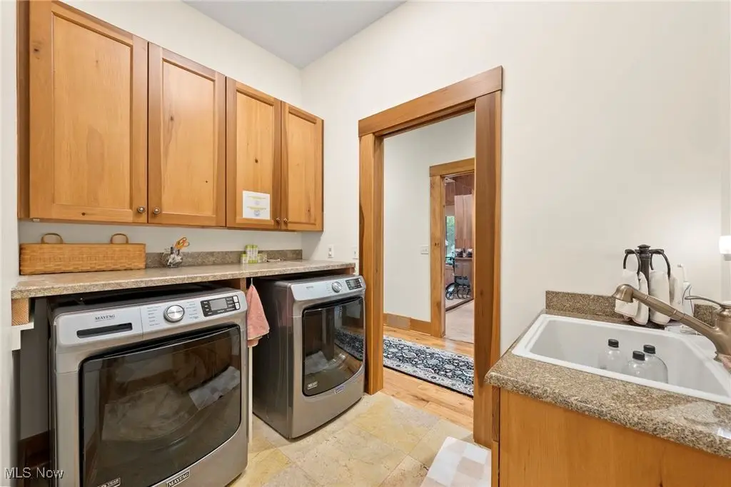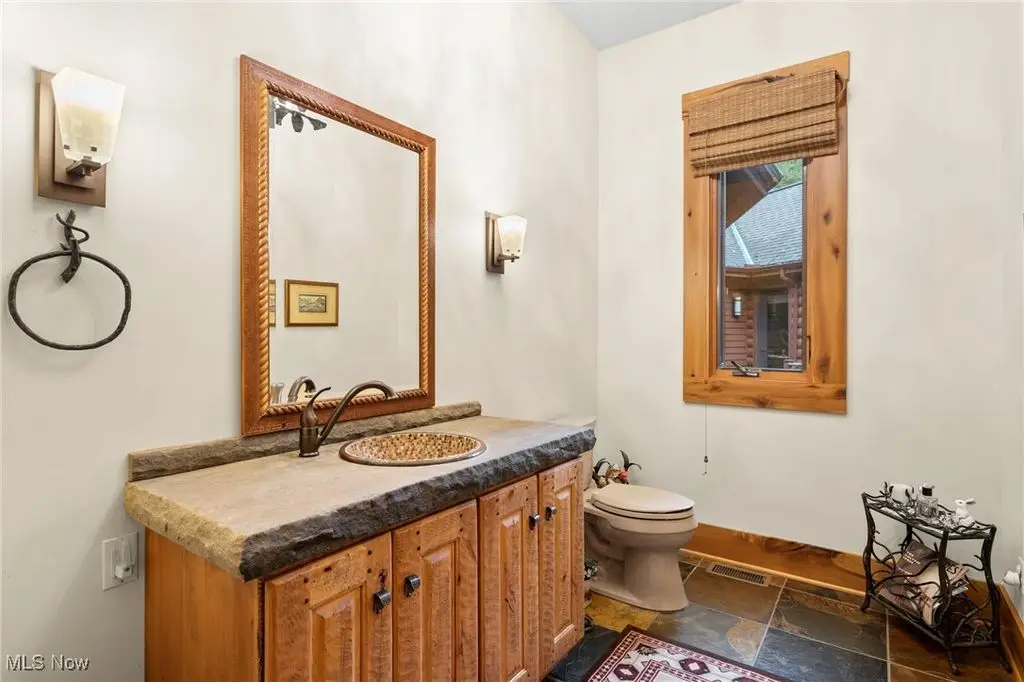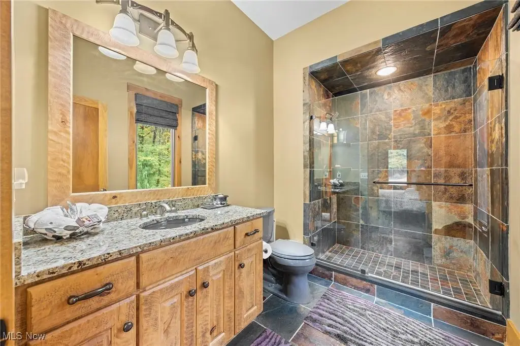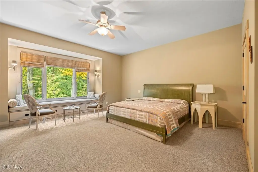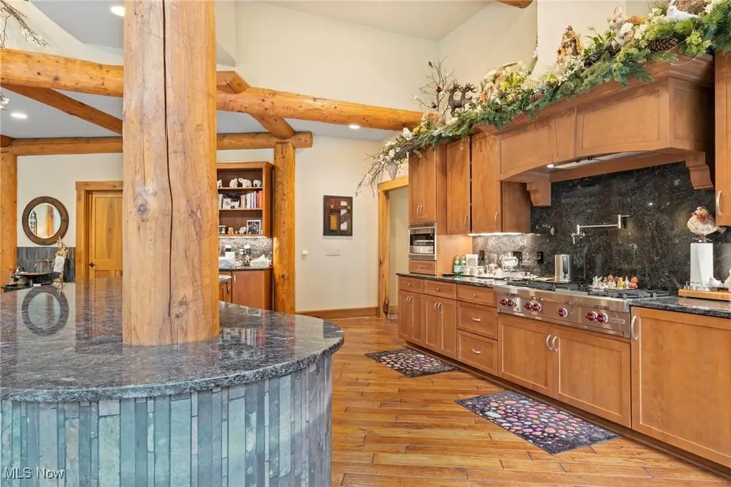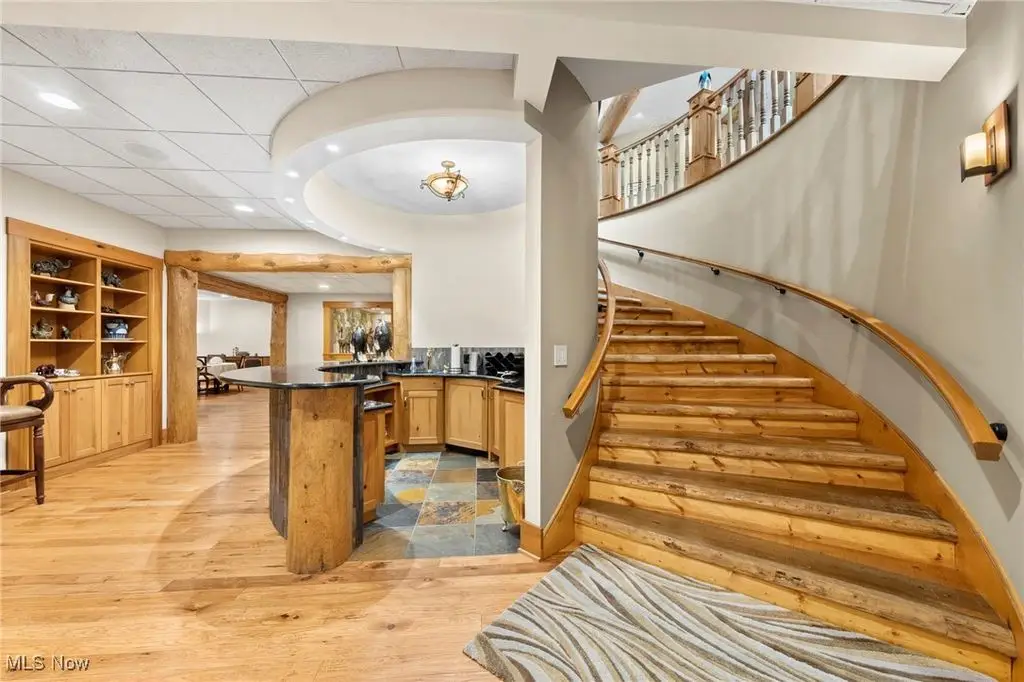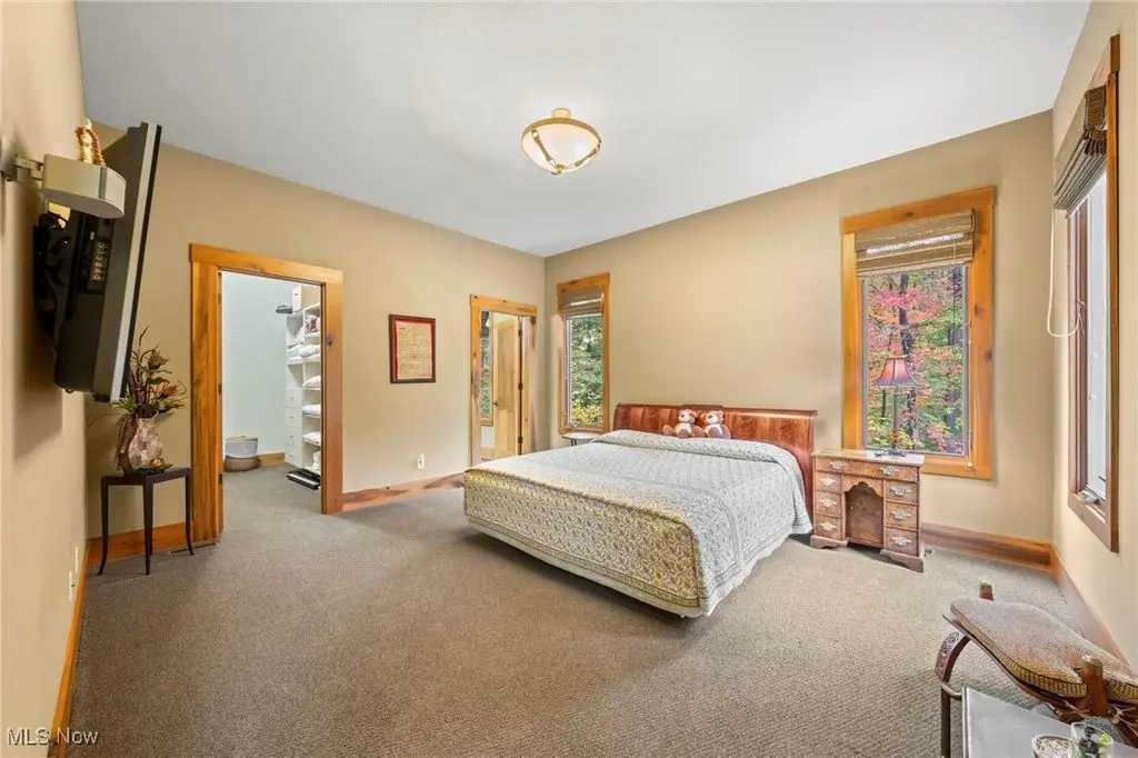 Nestled in the most spectacular almost 18 acre enclave, this private retreat unveils a breathtaking sanctuary, where nature's grandeur converges with the elegance of a stone and timber mountain modern home! The property with Chagrin River frontage sprawls over pristine wilderness and fabulously landscaped grounds, affording absolute seclusion and serenity. Enter through a spectacular gated entrance and travel down the meandering driveway unveiling the stunning residence! The home's exterior is a harmonious blend of stone and timber and integrates perfectly into its natural surrounding! Walking through the front door, one will immediately notice the soaring ceilings, walls of windows, and open design concept! This home is an exquisite balance of rugged and refined! The main great room boasts a cathedral ceiling adorned with exposed timber beams and a magnificent two story stone fireplace! Open to the great room is the incredible gourmet kitchen which is designed for entertaining and features a huge dining room area with fireplace, immense center island , and high end appliances! Each bedroom area on the main level is a private suite! The owner's wing is absolutely luxurious beyond compare offering a library, private kitchen, spectacular bedroom, sitting room, dual bathrooms, walk-in dressing rooms, and more! The walk out lower level is yet another incredible space with multiple entertaining rooms, bedroom suites, and even a television studio! 6+ car garage! One of a kind!!