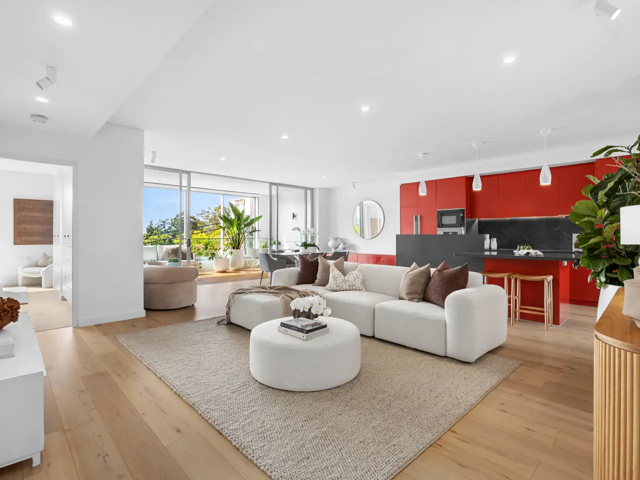 Expansive open plan living with bespoke cabinetry