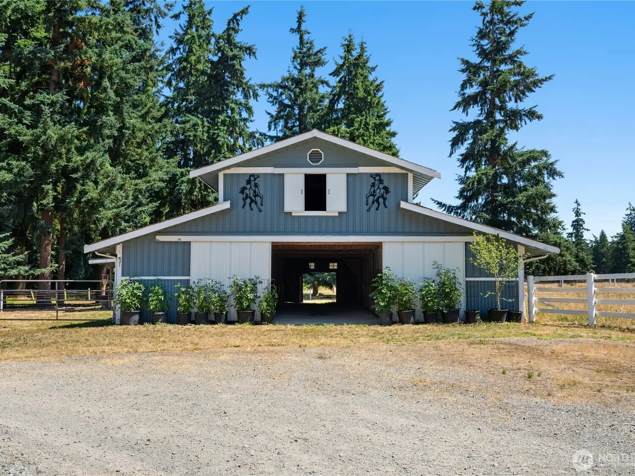 Exceptional 10-acre equestrian estate made up of two 5-acre parcels, perfect for horse enthusiasts or hobbyists. The main parcel features a 13-stall stable with water in each stall, 10 feeding stalls, a hay loft, and a wash area. Includes nine 12x12 stalls and two 16x14 stalls that can converted into four. 8 x 14's. A 4,300 sq ft detached garage/shop fully rebuilt in 2022 all electrical and components essentially brand new, with car lift ideal for collectors, storage, or business use. The second parcel, currently used as pasture, is build ready offering potential for development, a second home, or resale. Flat, usable land offers room for arenas, barns, or additional pasture. Peaceful country living just minutes from major commuting routes.
