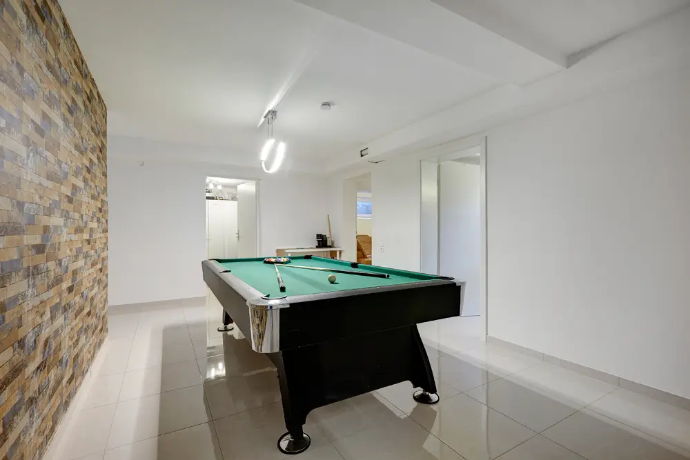 This attractive two-family house was built in 1972 on a plot of land measuring approximately 621 m² as a prefabricated house with precast concrete elements. With approximately 241 m² of living space and approximately 120 m² of usable space spread over 3 levels, the property offers you plenty of space for different uses. Whether you as a family need a separate area for work, older children, hobbies or guests - here you can meet the most diverse living needs! The house is currently divided into two residential units, but can be combined again into a separate residential unit with little effort. The ground floor apartment is bright and modern and welcomes you with a spacious living/dining area. The fireplace with a glass front ensures cozy hours. The window elements flood this area with plenty of light and provide a view of the mature garden. You also have access to the southwest-facing and covered terrace from the adjoining winter garden. Who wouldn't want to spend the next summer here? The high-quality, modern and open kitchen from 2020 offers plenty of storage space and short work processes. In addition to a hallway and a full bathroom with shower and free-standing bathtub, there are two further rooms available on the ground floor. You can use these individually as bedrooms, guest rooms or work rooms. The upper floor apartment was completely modernized in 2024. Here you will find a spacious living/dining area with access to two loggias, a bedroom, a shower room with toilet and another room that is used as a dressing room. The two-family house has a full basement. In the basement, in addition to the building services, you will find a utility room, a bathroom with shower, a kitchen and two other rooms that have been converted for residential purposes. The basement also has a separate outside entrance. This offer is rounded off by four parking spaces. This very attractive property is looking forward to a new owner in summer/autumn 2025 - come and see this property for yourself during a personal viewing!