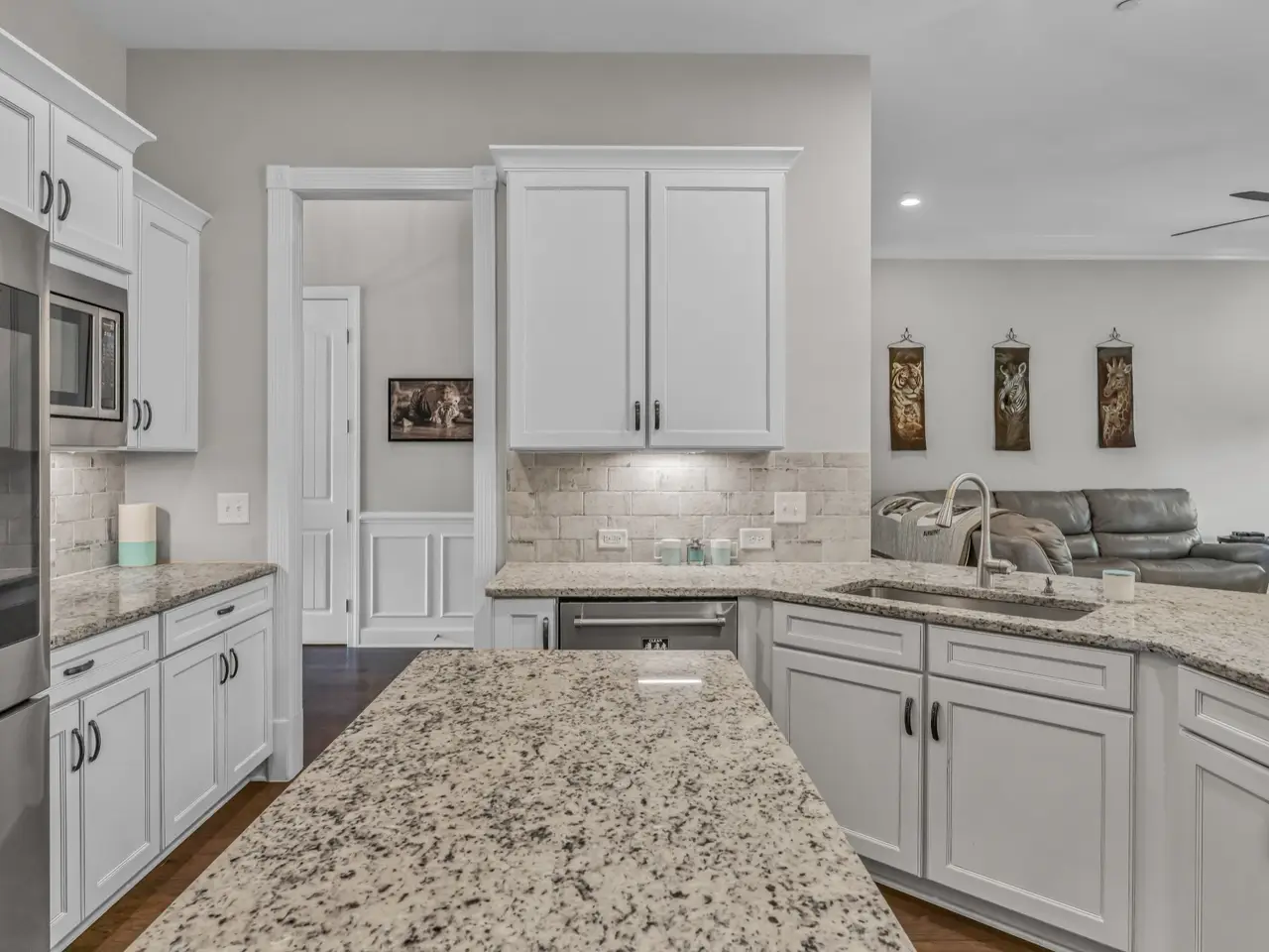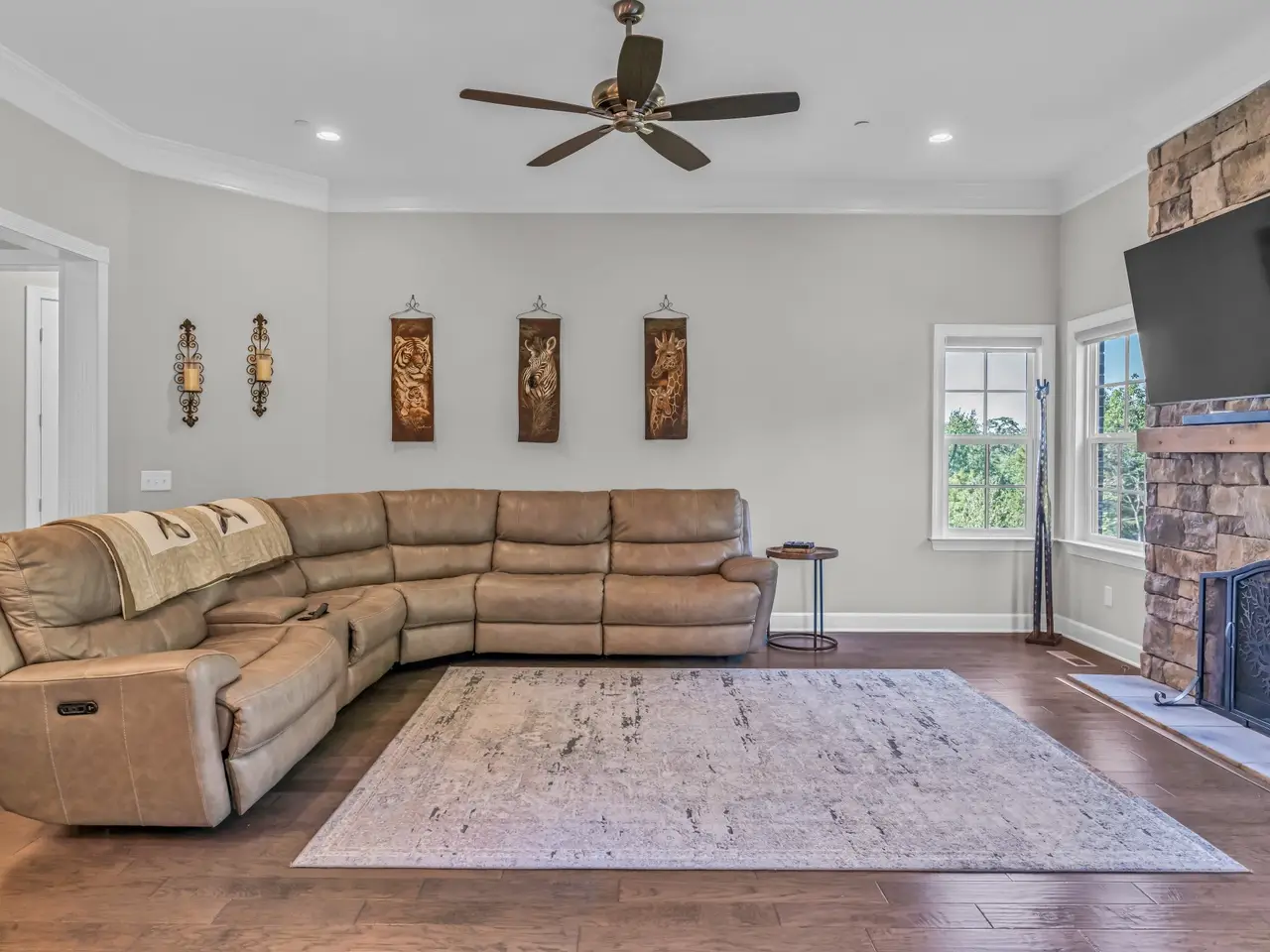 Like a scene from a storybook, this house on a hill features gorgeous mature landscaping with tasteful uplighting along the driveway. This Morgan Farms home is METICULOUSLY cared for and checks every box. The fully fenced backyard BACKS TO GREEN SPACE--offering privacy without giving up community. Zoned for Jordan Elementary, Sunset Middle, and Ravenwood High--three of Tennessee's TOP-PERFORMING SCHOOLS known for academic strength and strong student involvement. Inside, you'll find wide halls, tall ceilings, and tasteful finishes throughout. With over 4,600 square feet, 5 bedrooms (all with ensuite baths), and multiple flex spaces, there's room for everyone to spread out, work, gather, and recharge. 3-CAR GARAGE equipped with EV CHARGING. Nest cameras, a brand new water heater, HVAC updates, and new flooring in the primary bedroom are already in place. QUIET cul-de-sac location. ACTIVE community, enjoy the numerous neighborhood events, walking trails, a resort-style pool, and a true sense of connection with your neighbors. If you've been waiting for something that feels just right--low maintenance, high quality, and well-located--this is it.
