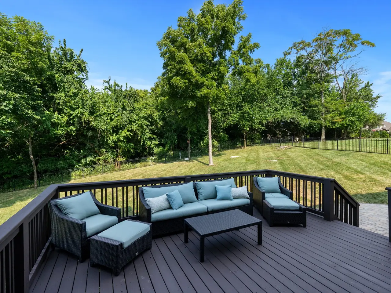 Fully fenced backyard backing to green space