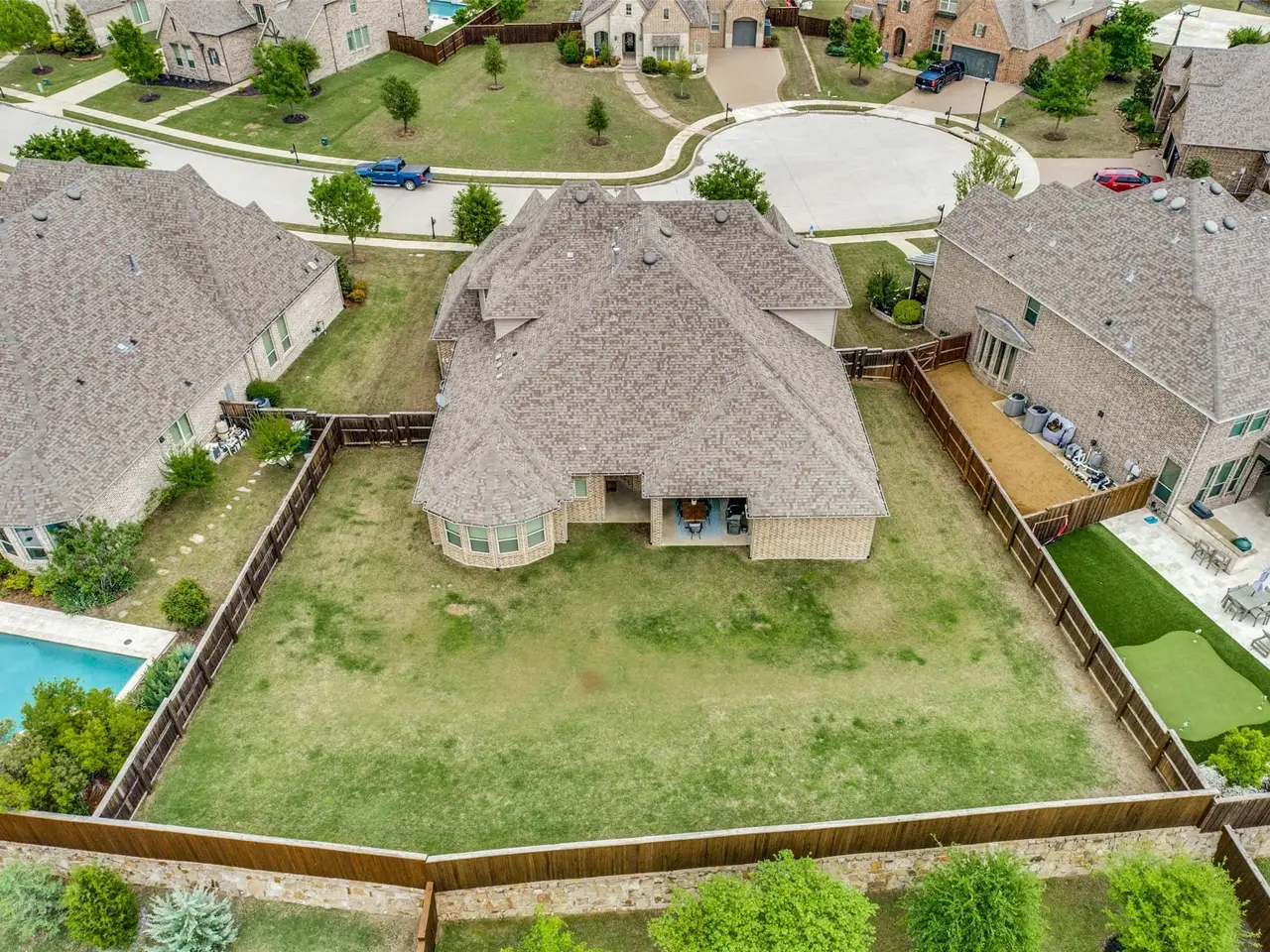 Experience the epitome of luxury living in Celina's prestigious Mustang Lakes community sitting on a third of an acre. This magnificent 4 bedroom Highland Home epitomizes opulence and comfort. As you step inside, you are greeted by the grandeur of vaulted ceilings that elevate the sense of space and airiness, creating an ambiance of sheer luxury. The home's extensive wood floors exude warmth and character, providing a rich backdrop for both everyday living and lavish entertaining. Whether hosting gatherings or enjoying quiet moments with loved ones, this home offers the perfect balance of intimacy and grandeur. The kitchen is a chef's dream, featuring granite ctops, sleek cabinetry, and SS appliances. In addition to the primary suite, three generously sized bedrooms offer ample accommodation for family and guests. Located within the highly acclaimed Prosper Independent School District, this home offers not only luxurious living but also access to exceptional education, making it the epitome of upscale suburban living. Mustang Lakes amenities include a resort-style swimming pool with cabanas, indoor and outdoor entertaining spaces, a state-of-the-art fitness center, amphitheater, seven lakes, a sprawling, 20-acre park with a private lake and island, fishing deck and bridges, and nearly 10 miles of trails.