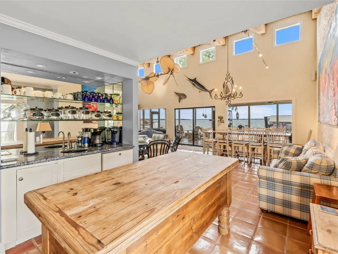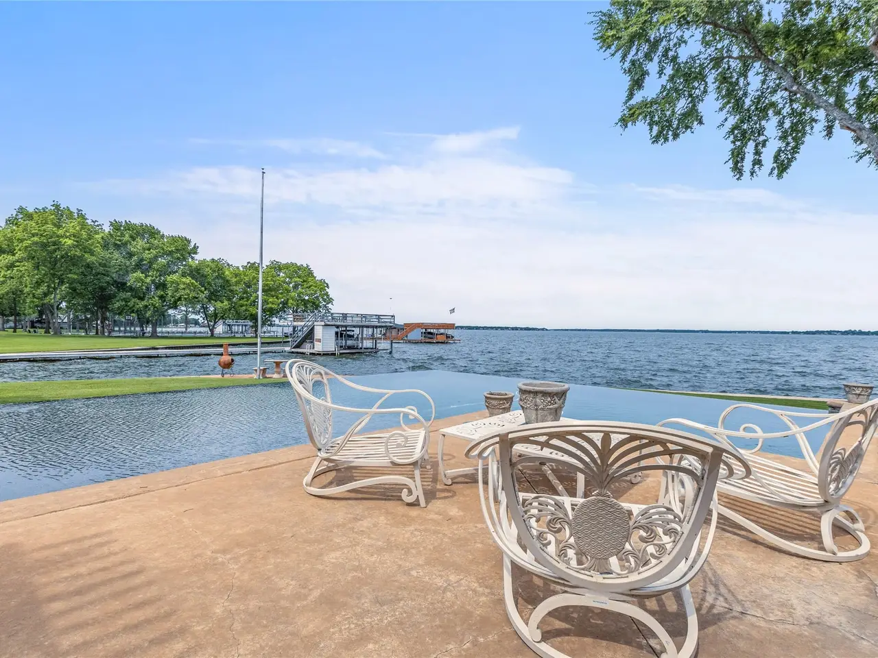 Spectacular resort home on two deep open water peninsula lots with 242 feet of waterfront, shared sandy beach and miles of view. Outdoor paradise with a heated infinity edge pool, cabana with a stone bar and a cook center, you will not want to miss cozying up to the large wood burning fireplace on chilly days. With eight bedrooms and two huge living areas this home offers room to spread out and entertain a crowd of family and friends. Living room with soaring ceiling, stone gas fireplace and two dining areas. Second living area with room for game tables and another TV. Cooks will love the gas cooktop and double ovens in the kitchen plus there is a separate wet bar. The huge screen porch is sure to be a favorite place to enjoy year round outdoor living and southern breezes coming in off the water. Boathouse with two full boatslips and slip for two PWCs. Commercial TPO metal roof 2022, water filtration system, two gas tankless water heaters, storage garage. Includes furnishings with some exclusions.
