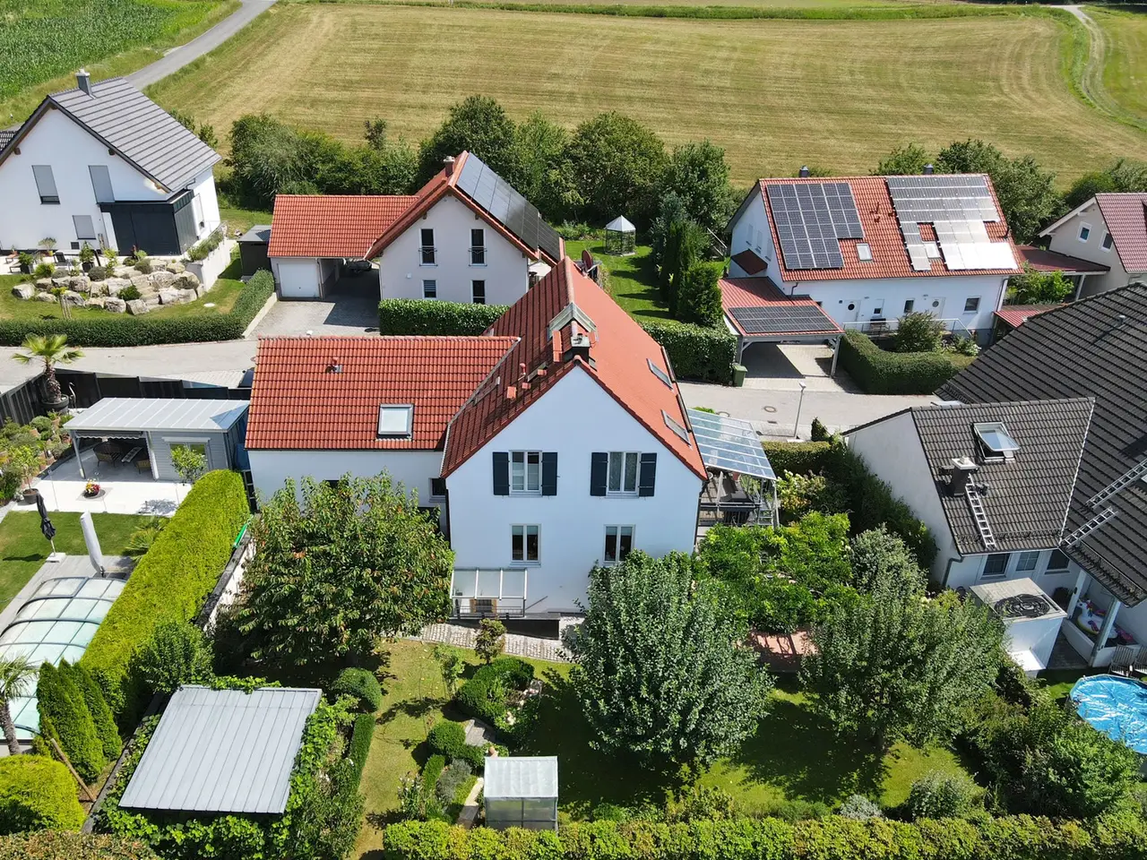 A country house that makes your dream home come true - in Tiefenbach/Zweikirchen near Landshut. Welcome to this charming and unique country house that offers you the best of both worlds: The proximity to the city of Landshut and the tranquillity of an idyllic, rural setting. Nestled in the family-friendly neighborhood of Tiefenbach Zweikirchen, you will enjoy a harmonious life here, surrounded by nature and yet within easy reach of the amenities of daily life. This spacious property offers 231 m² of living space spread over four floors, plenty of room for your personal dreams and ideas. An additional 55 m² granny apartment creates flexibility, whether for guests, family members or as a rental unit. The beautifully ingrown garden on the 632 m² plot invites you to linger and relax. Two spacious terraces offer plenty of room for cozy hours outdoors, while two raised beds challenge your green fingers. A garden shed, a 3000 liter garden water cistern and the picturesque design over several levels make this garden a true oasis. Built in 2000, the house impresses with traditional and modern elements. Plank floors, marble elements and antique doors meet a modern fitted kitchen, wood-burning stove and tiled stove, which provide cozy warmth. Three stylishly designed bathrooms, underfloor heating in the bathroom and a skylight in the converted attic round off the luxurious living experience. The double garage and four outdoor parking spaces offer plenty of room for your vehicles. The infrastructure is excellent thanks to the proximity to Kumhausen and Tiefenbach, so that you can reach all important facilities quickly. This well-kept and lovingly maintained property is waiting to be discovered by you. Experience the perfect balance of amenities close to the city and rural tranquillity - your new home in Tiefenbach/Zweikirchen near Landshut.